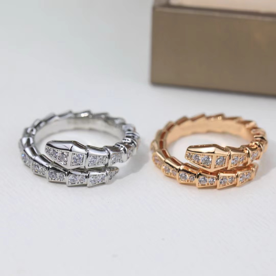 BVLGARI宝格丽蛇戒指 🐍以令人沉醉的绝妙设计捕捉Sernti的魅力、诱惑和迷人的性感,以此向其灵兽致敬。此款戒指鳞片密镶钻石,梨形明亮式切割钻石尽显极致光芒,呈现灵蛇独有的蔓延弯曲,在手部蔓延萦绕,魅惑动人。 Sernti高级珠宝 亚金材质电镀18k白金色,玫瑰金色!
