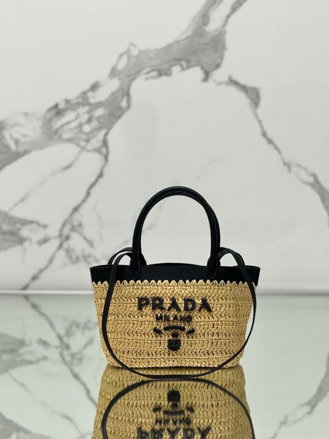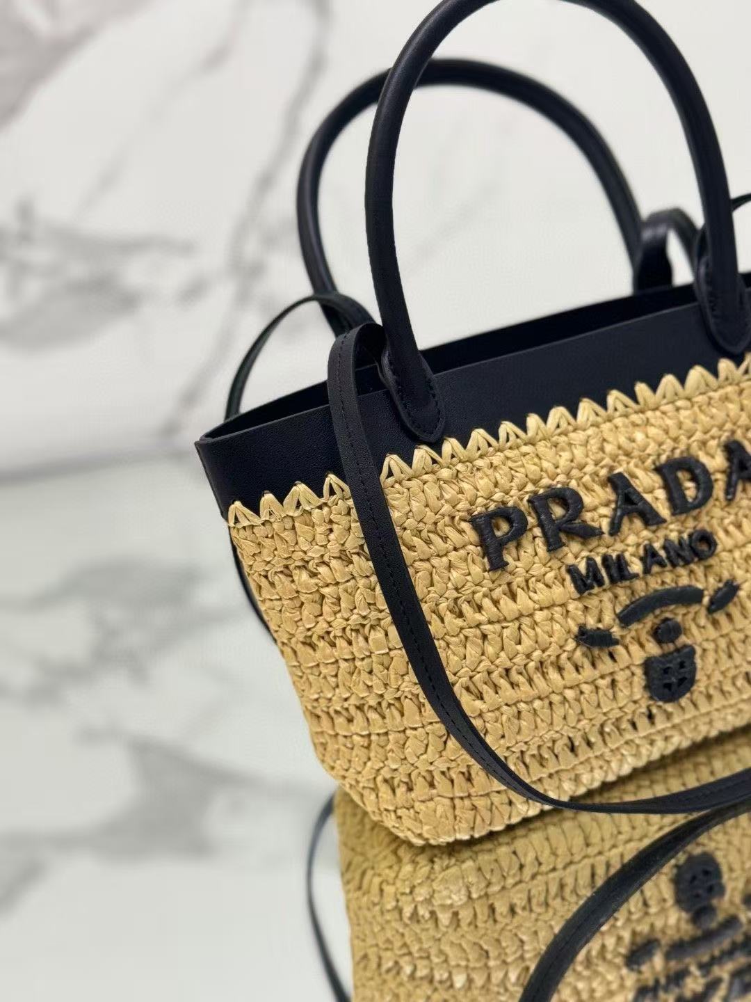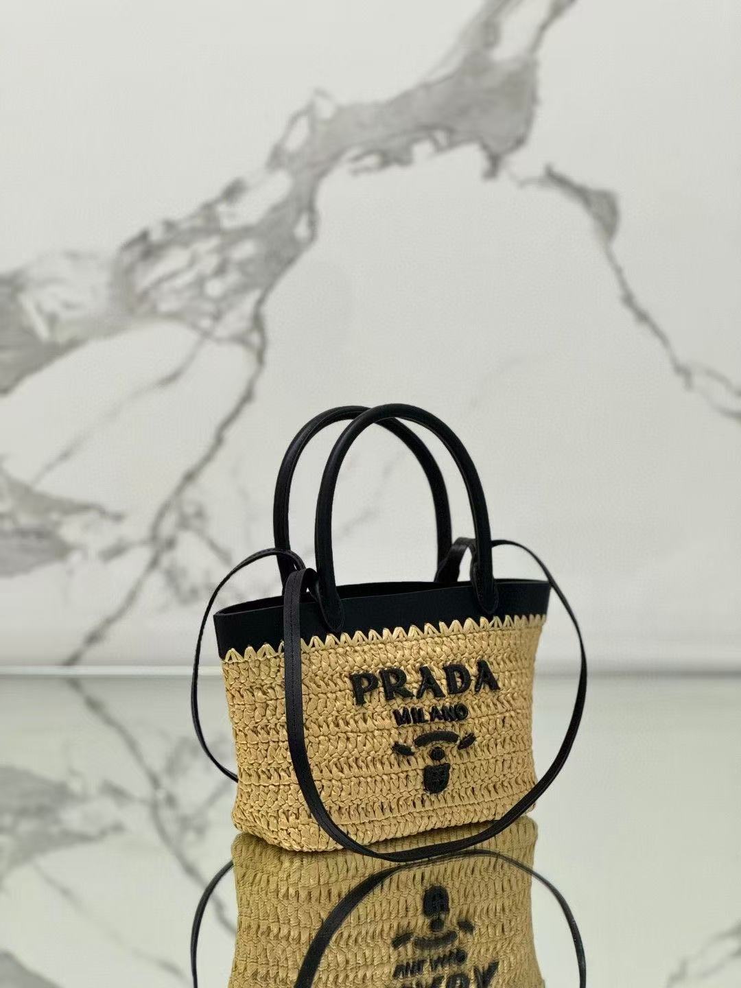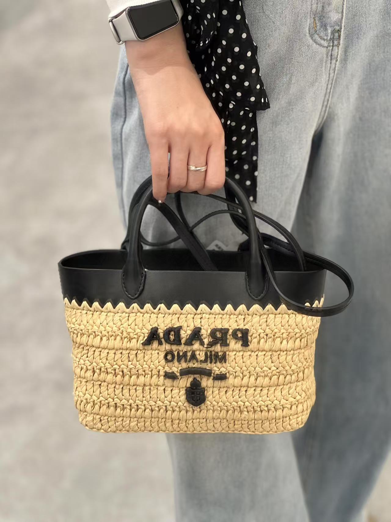 顶级原单 (小号) 新款草编迷你托特包,这款现代而精致的迷你托特包结合钩编工艺和皮革细节,营造出夏日氛围。牛皮双提手,可用作手提包或单肩包,正面饰以撞色刺绣字母徽标,增添辨识度。精致的编织包身散发出浓郁的春夏气息啦~简单背着就能赋予无与伦比的高级质感啦,空间容量大,又是一个经典爆款啦