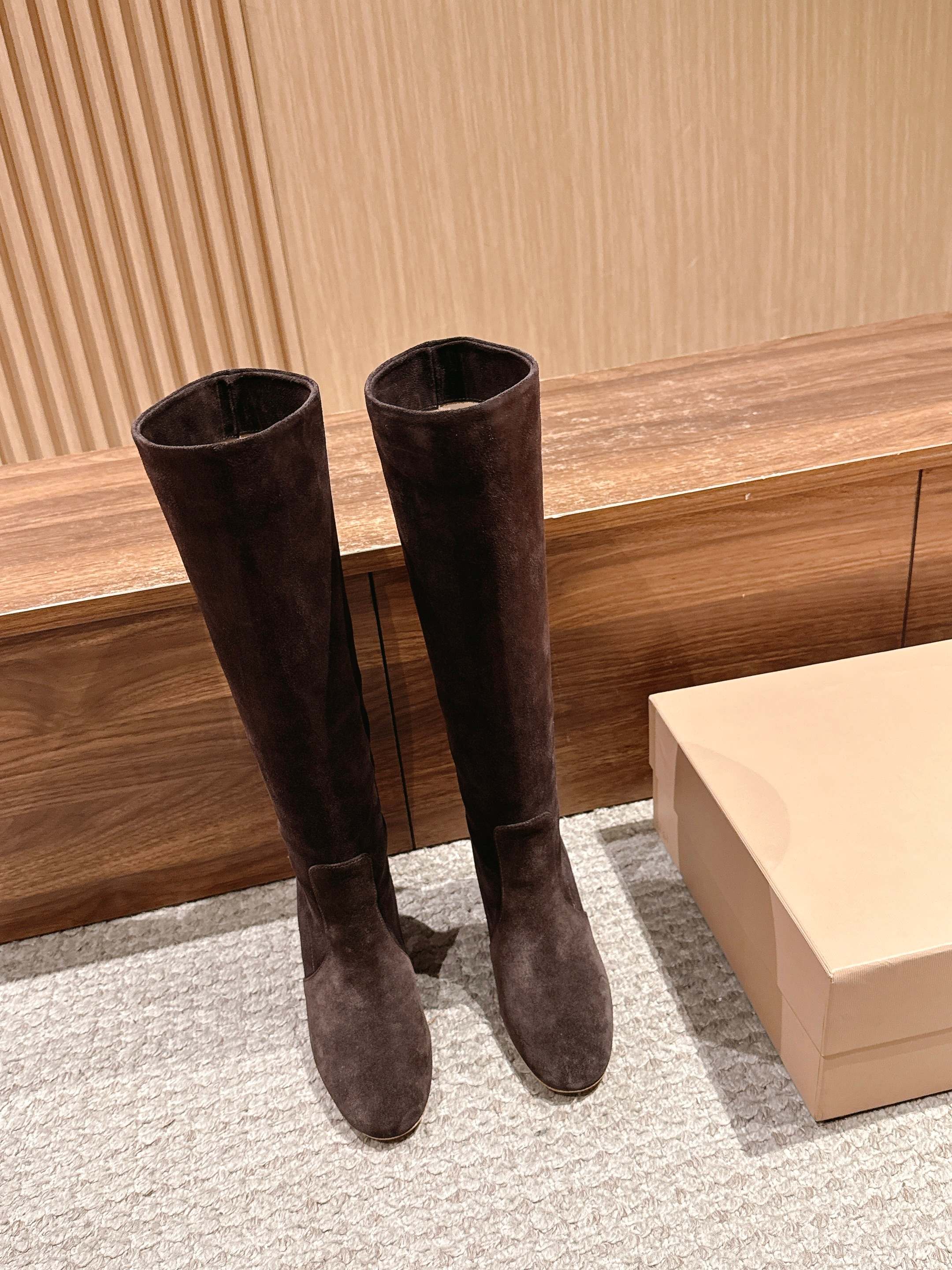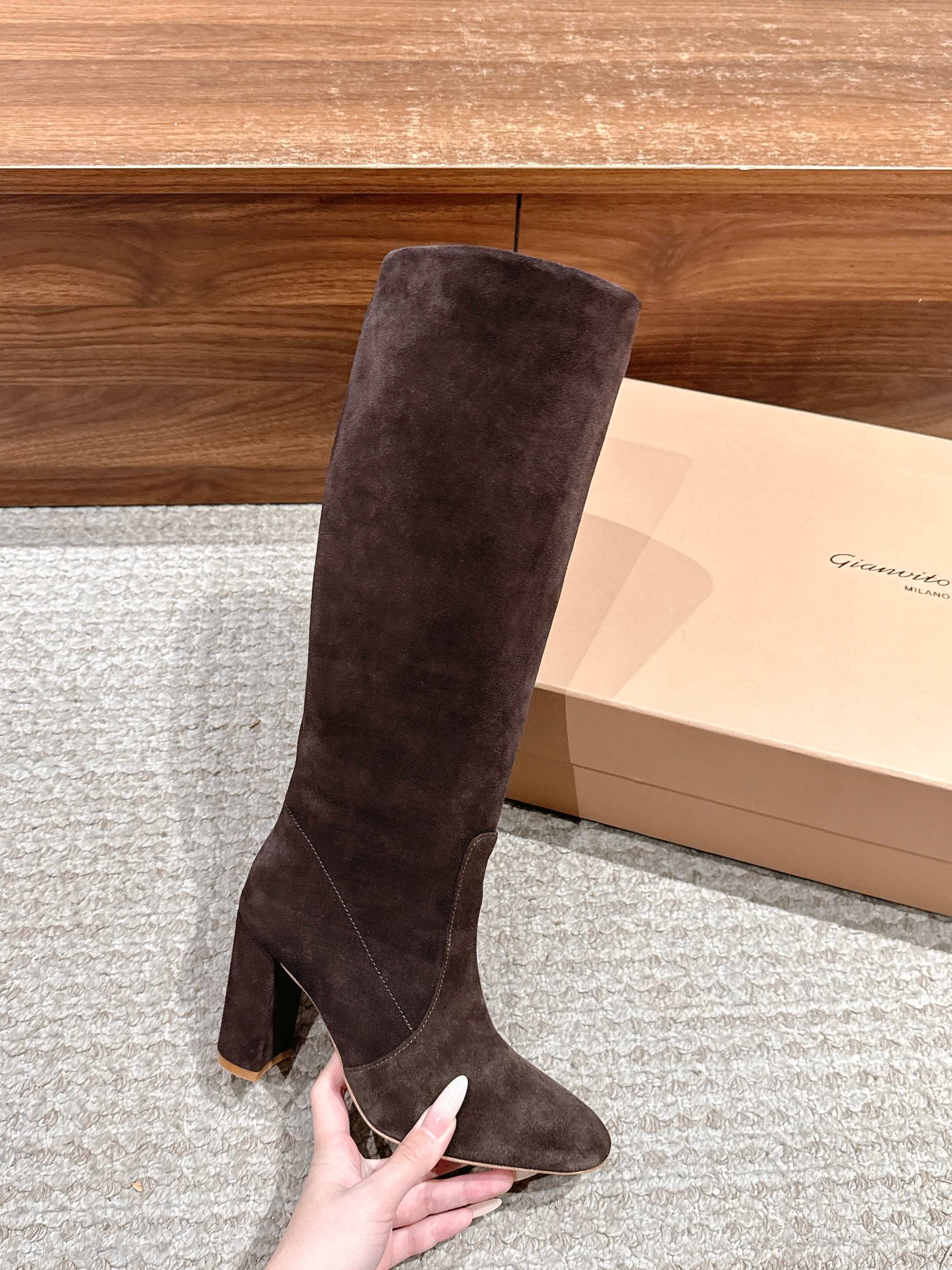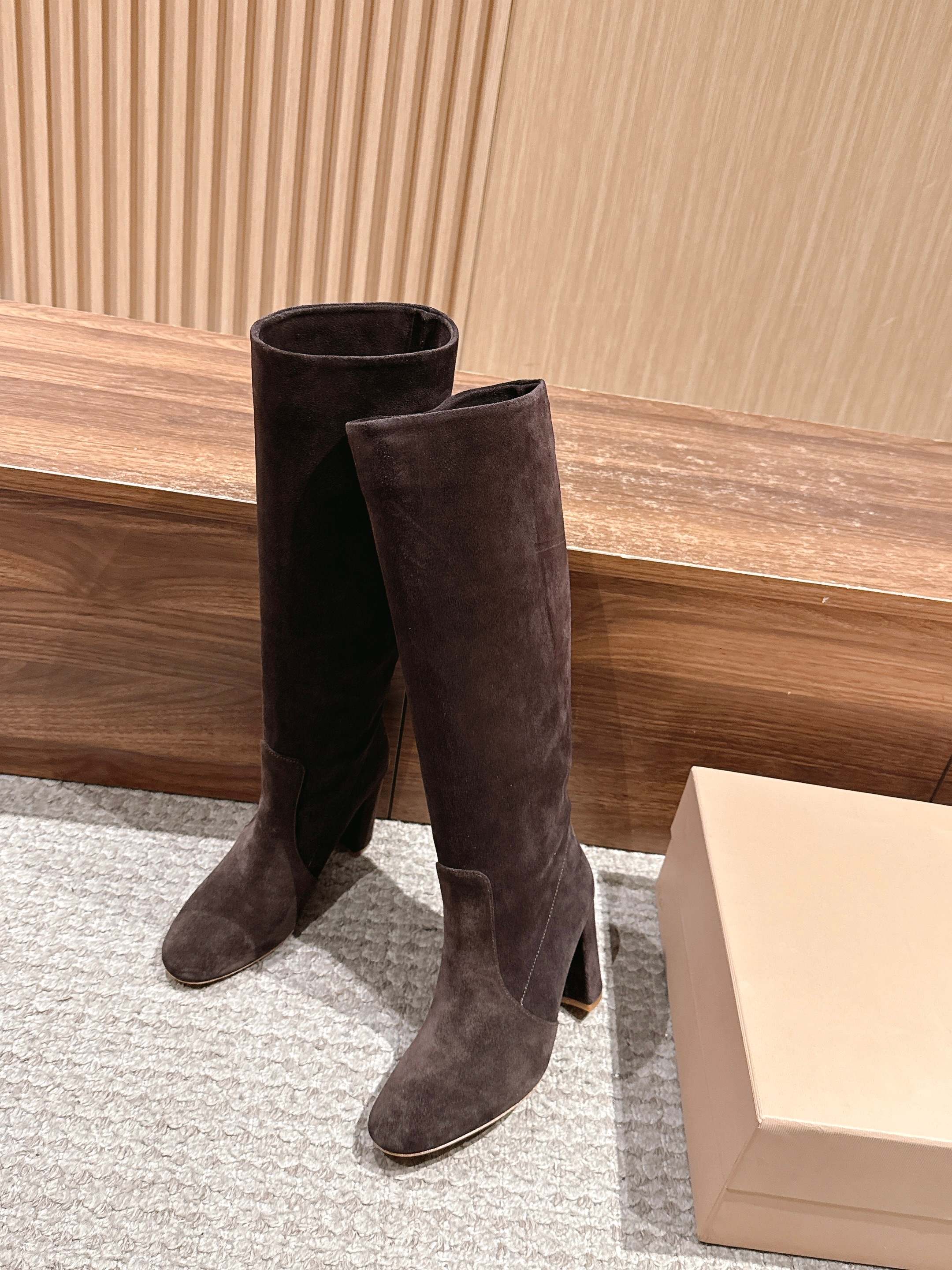Gianvito Rossi 复古麂皮高跟堆堆靴 长版(DBG)