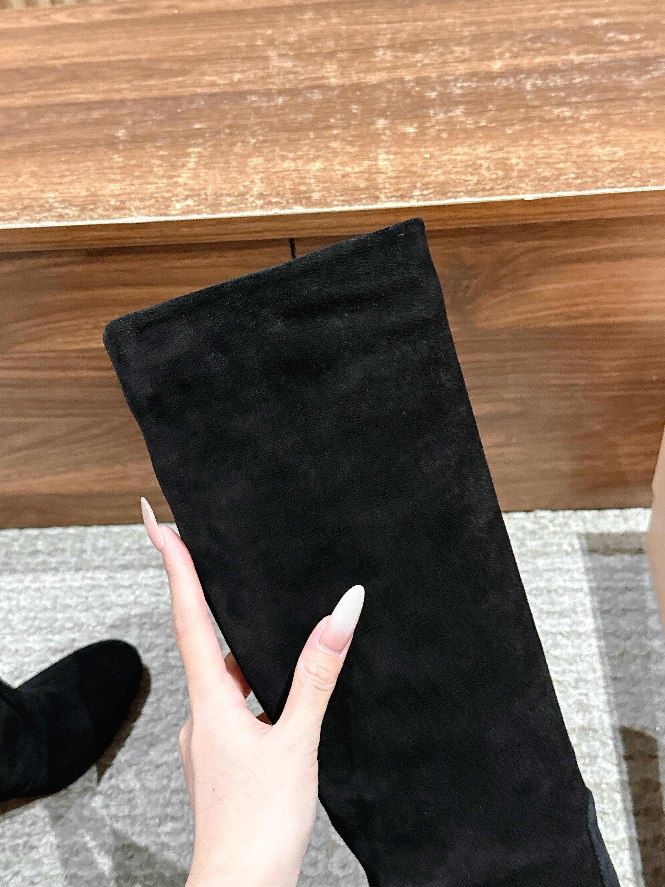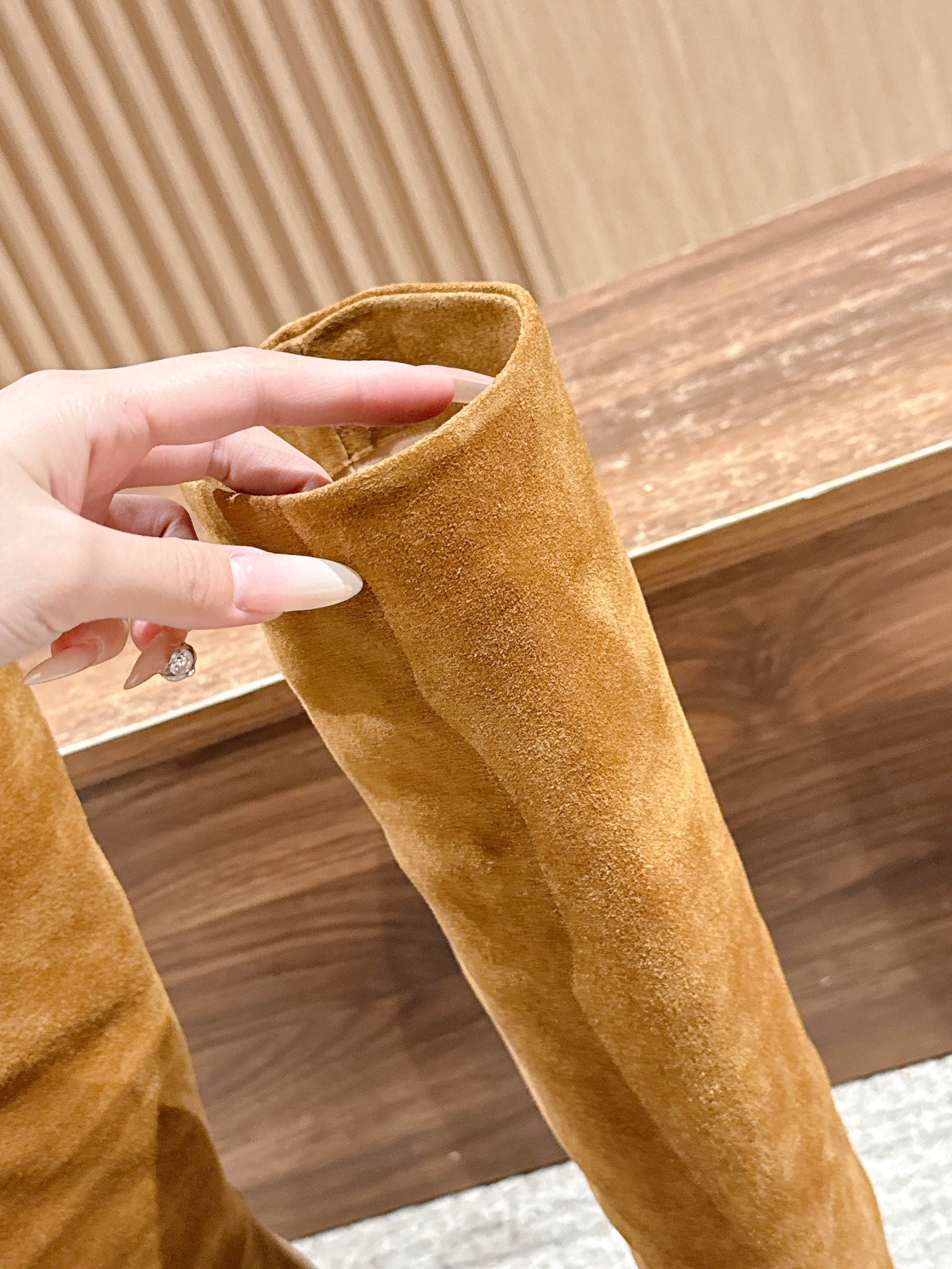 Gianvito Rossi 复古麂皮高跟堆堆靴 采用绒面革材质,质感细腻,呈现出高级的哑光效果,且不同颜色的绒面革在视觉和触觉上都极具质感。高跟长靴,靴筒较高,能够很好地修饰腿部线条;鞋跟为粗跟设计,兼具稳定性与时尚感,提升气场的同时也保证了行走的舒适度。 鞋头为方头设计,简约大气,符合当下的时尚潮流,同时也能容纳不同脚型;整体设计简约利落,没有过多繁杂的装饰,凸显出经典与优雅的风格,易于搭配各种服饰,无论是裙装还是裤装都能展现出不俗的时尚品味。 鞋面:胎牛反绒 内里:单里 大底:真皮大底注塑 增高:9cm Size:35-41码(40/41订做不退换)