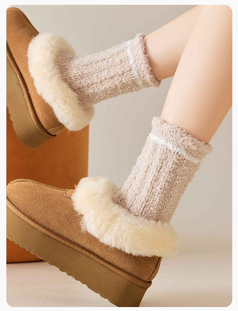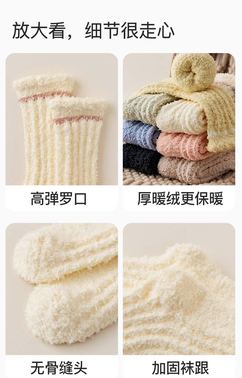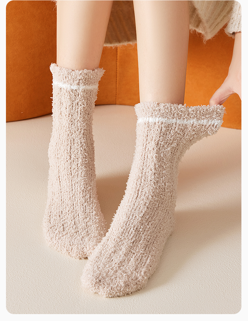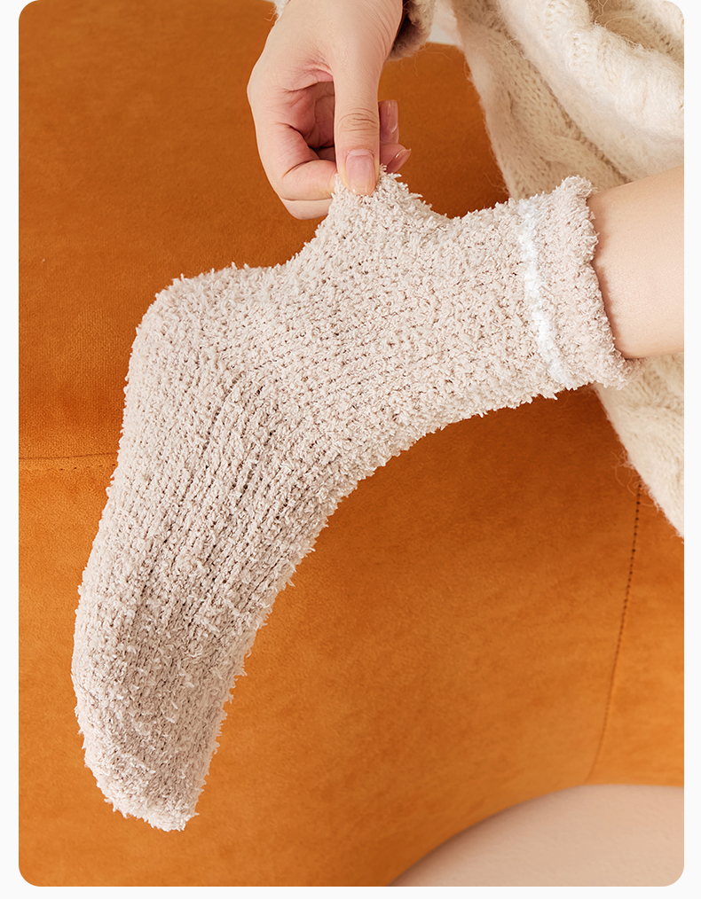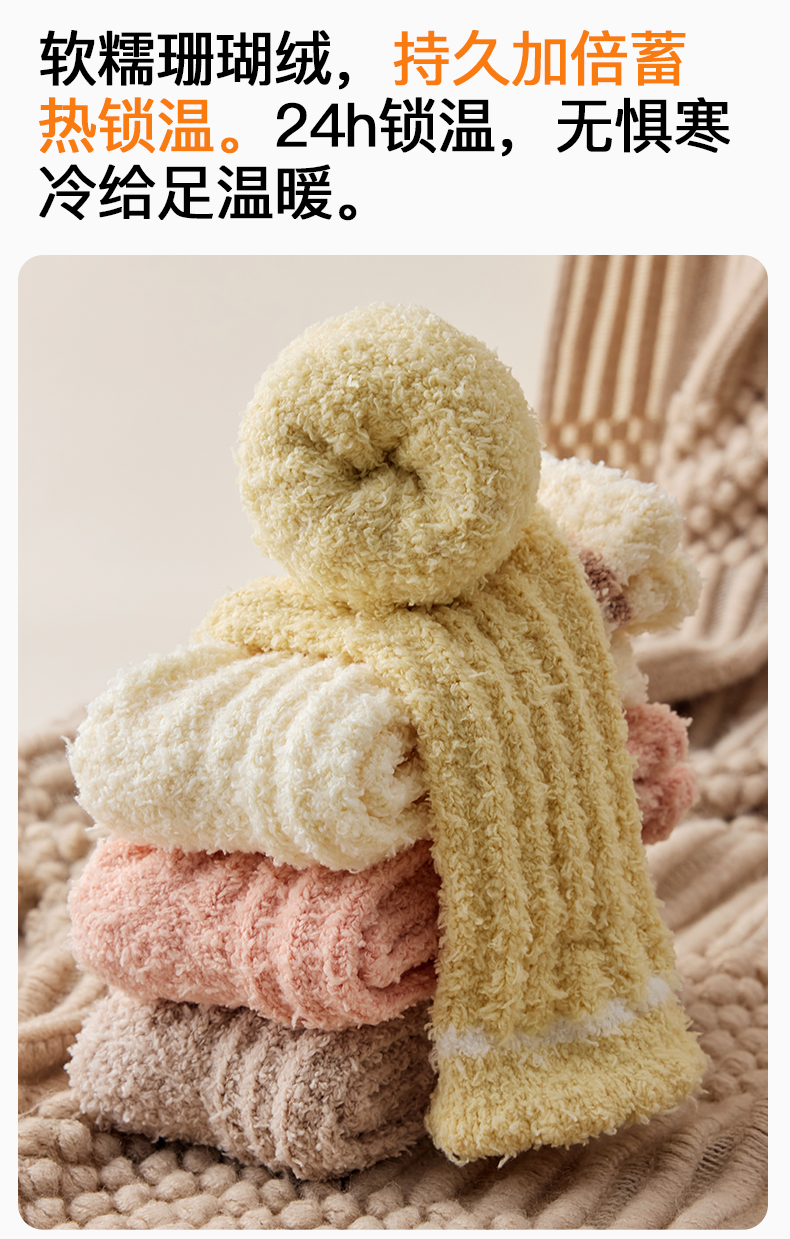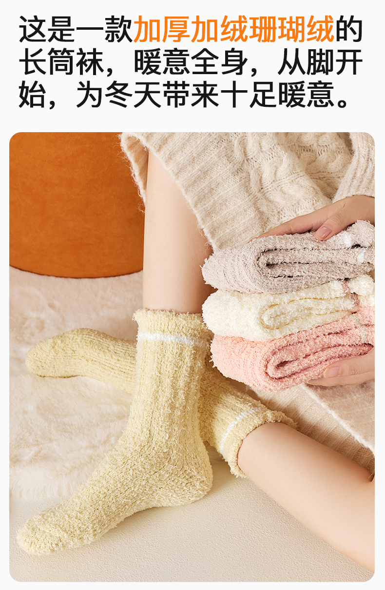 原价39.9 限时折扣21.9元【体慕】珊瑚绒袜子女款秋冬加绒加厚中筒袜居家保暖地板袜睡眠松口月子袜