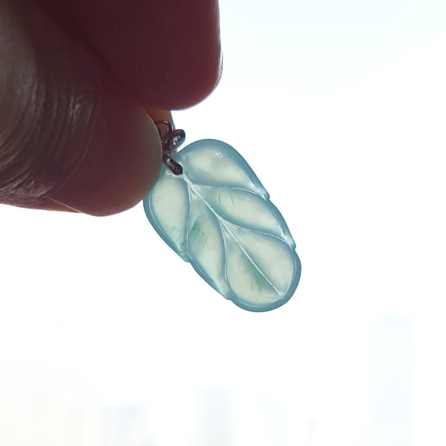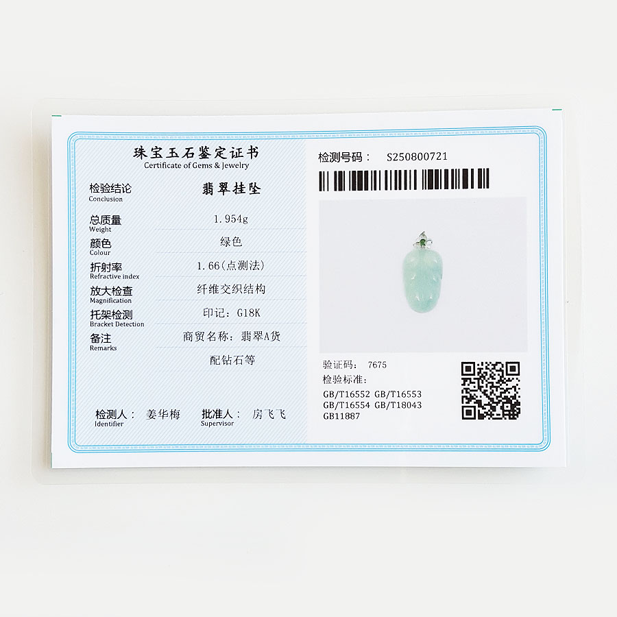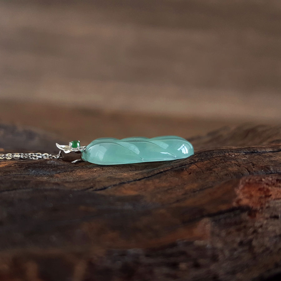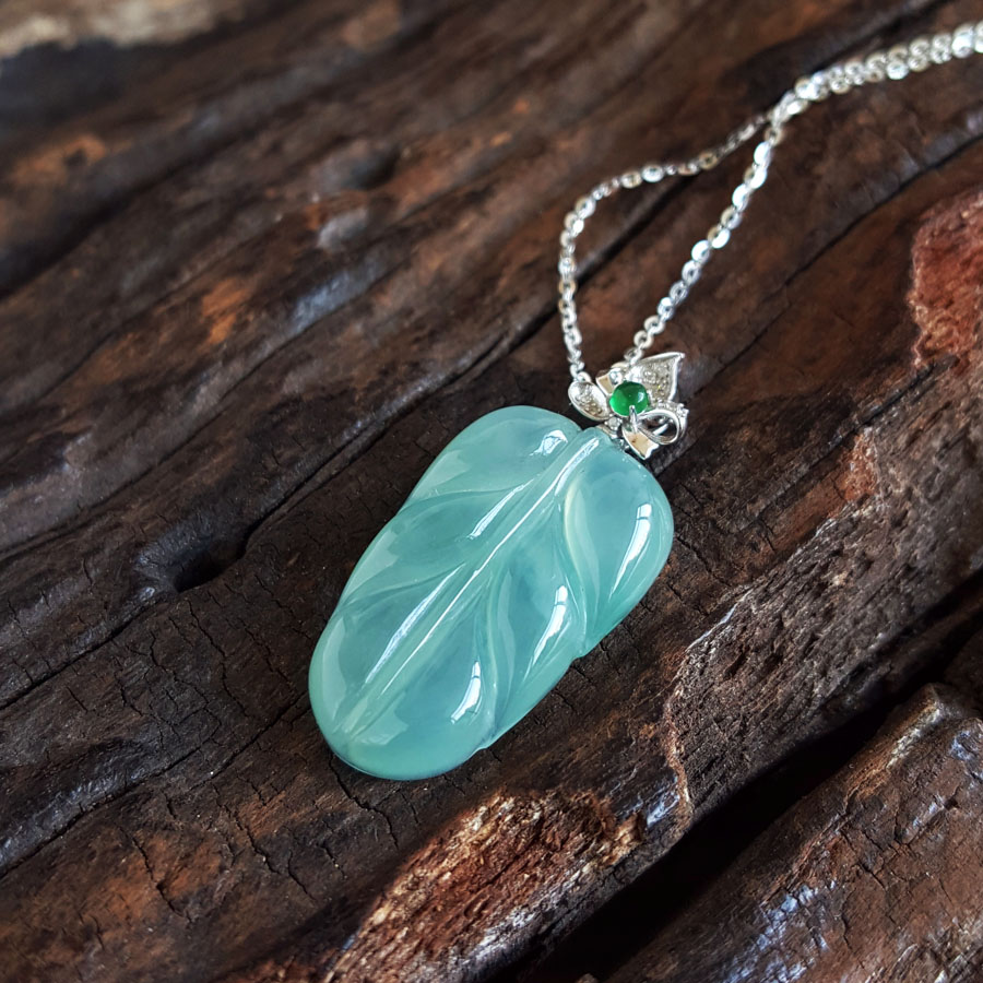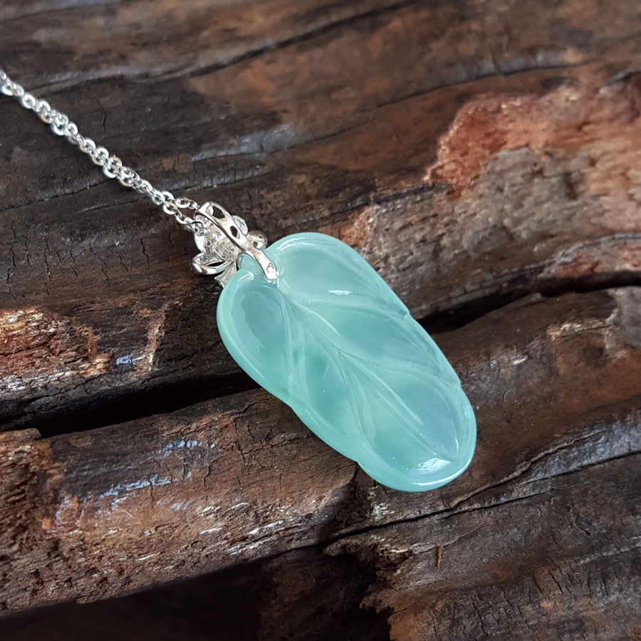 名称 | AU750白金镶钻镶天然细腻晴水冰种叶子(金枝玉叶)翡翠吊坠项链 |