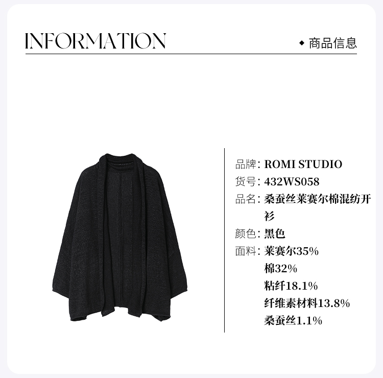 ROMI STUDIO“纵横交织”日本进口桑蚕丝莱赛尔棉混纺开衫 432WS058