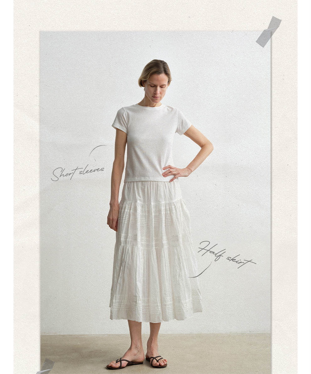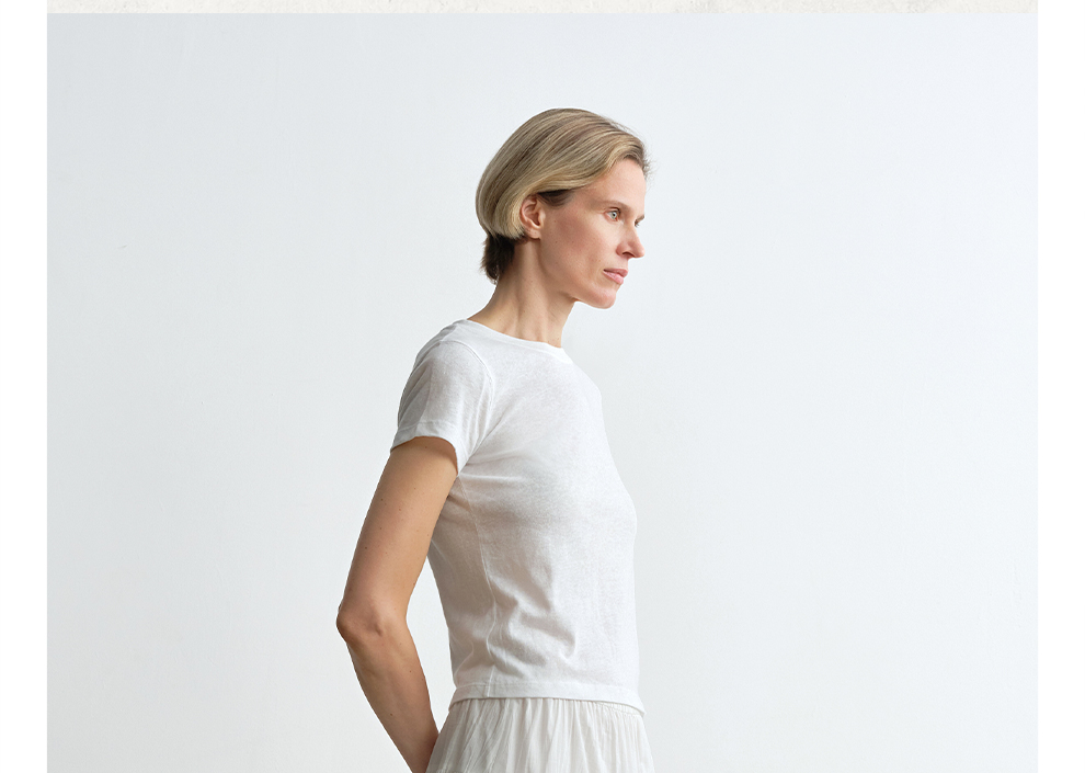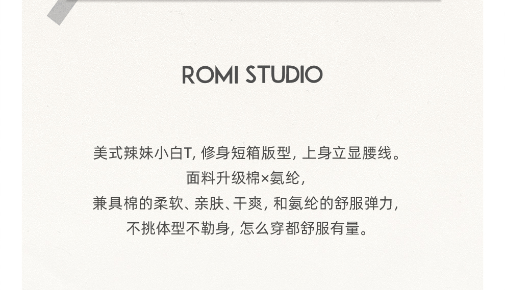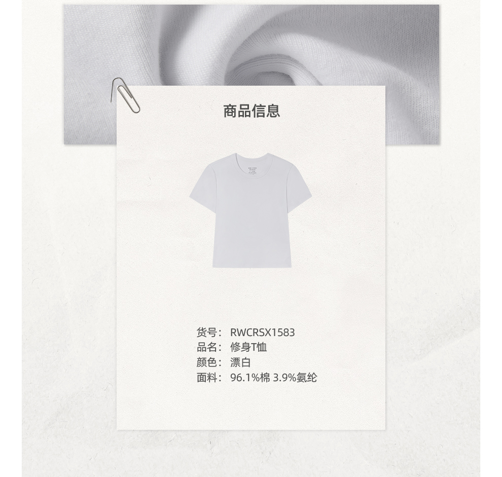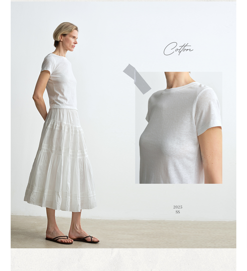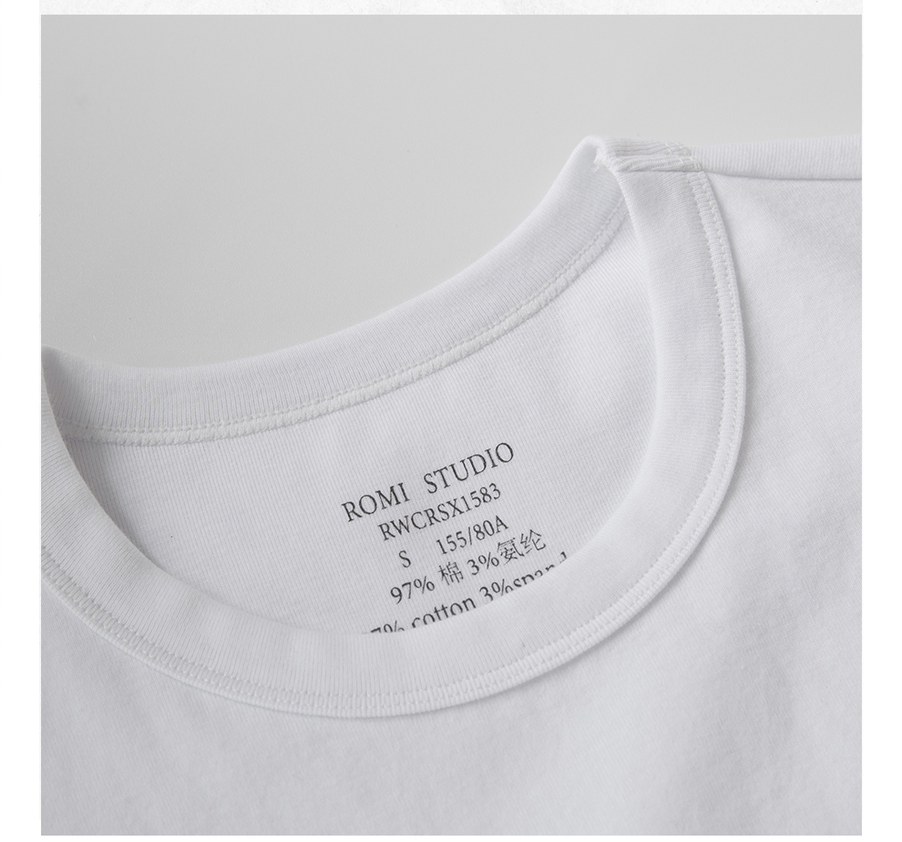 ROMI STUDIO“Clean fit”极简白色棉质高弹修身短袖T恤 RWCRSX1583(现货)