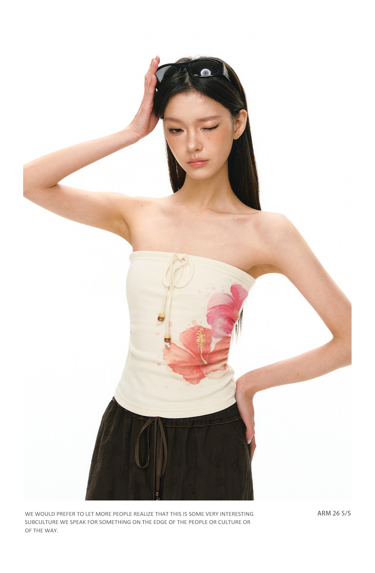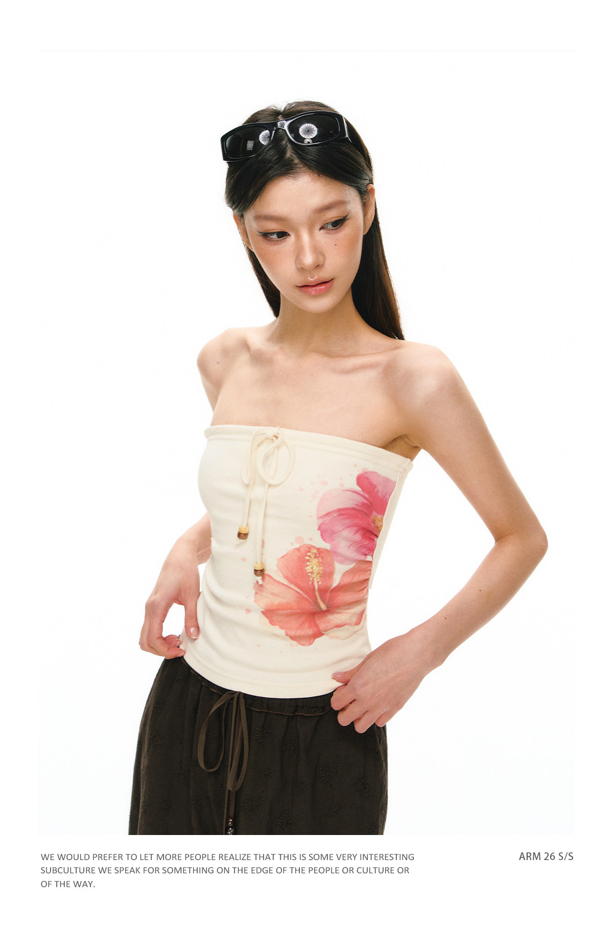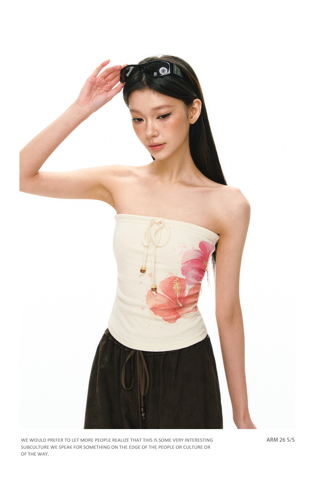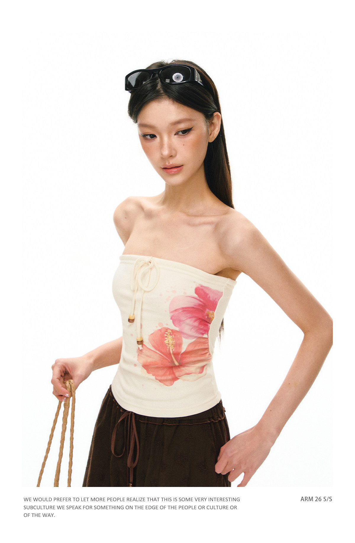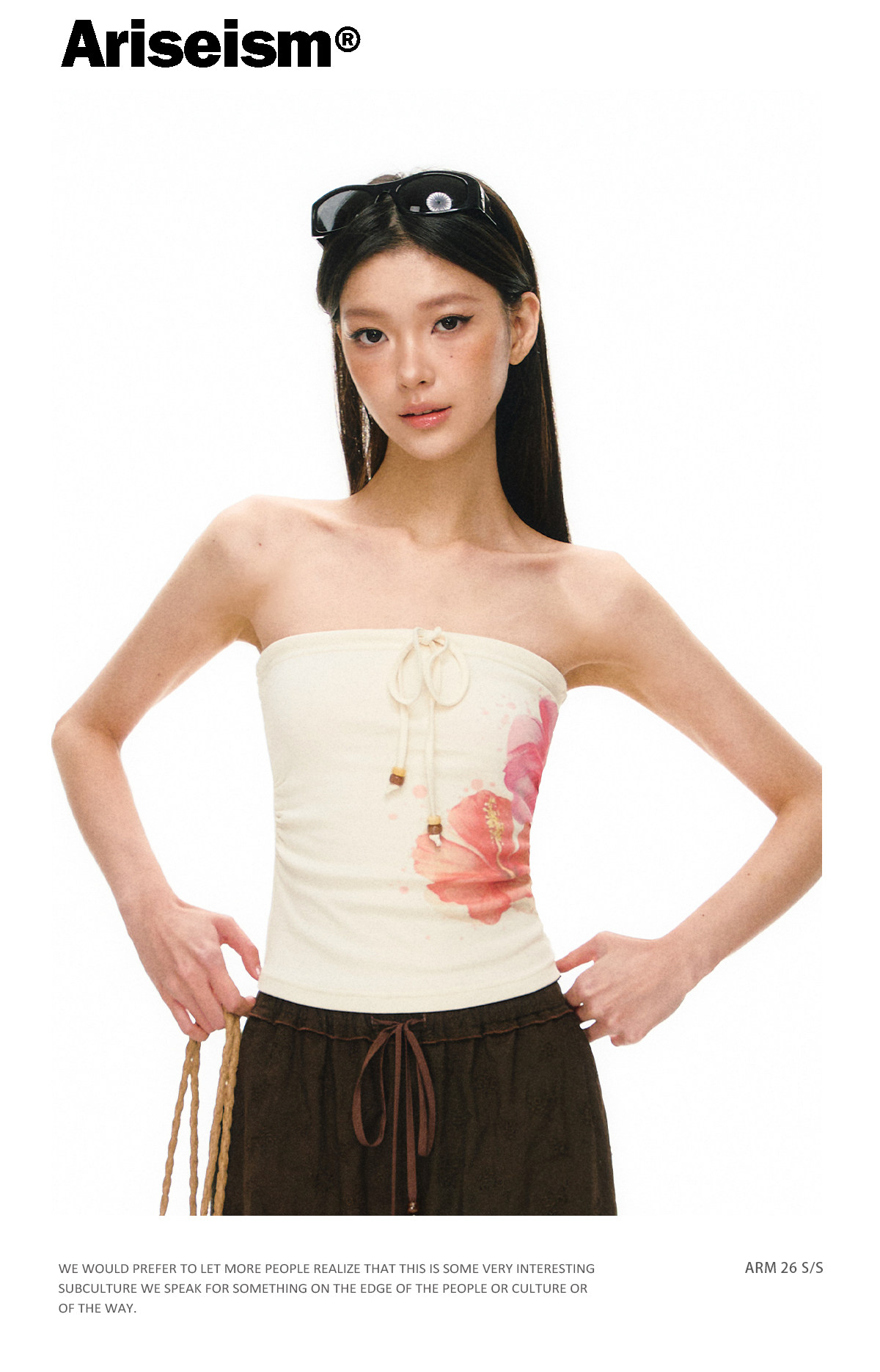 Ariseism 美式复古花朵印花抹胸女夏季新款修身外穿上衣