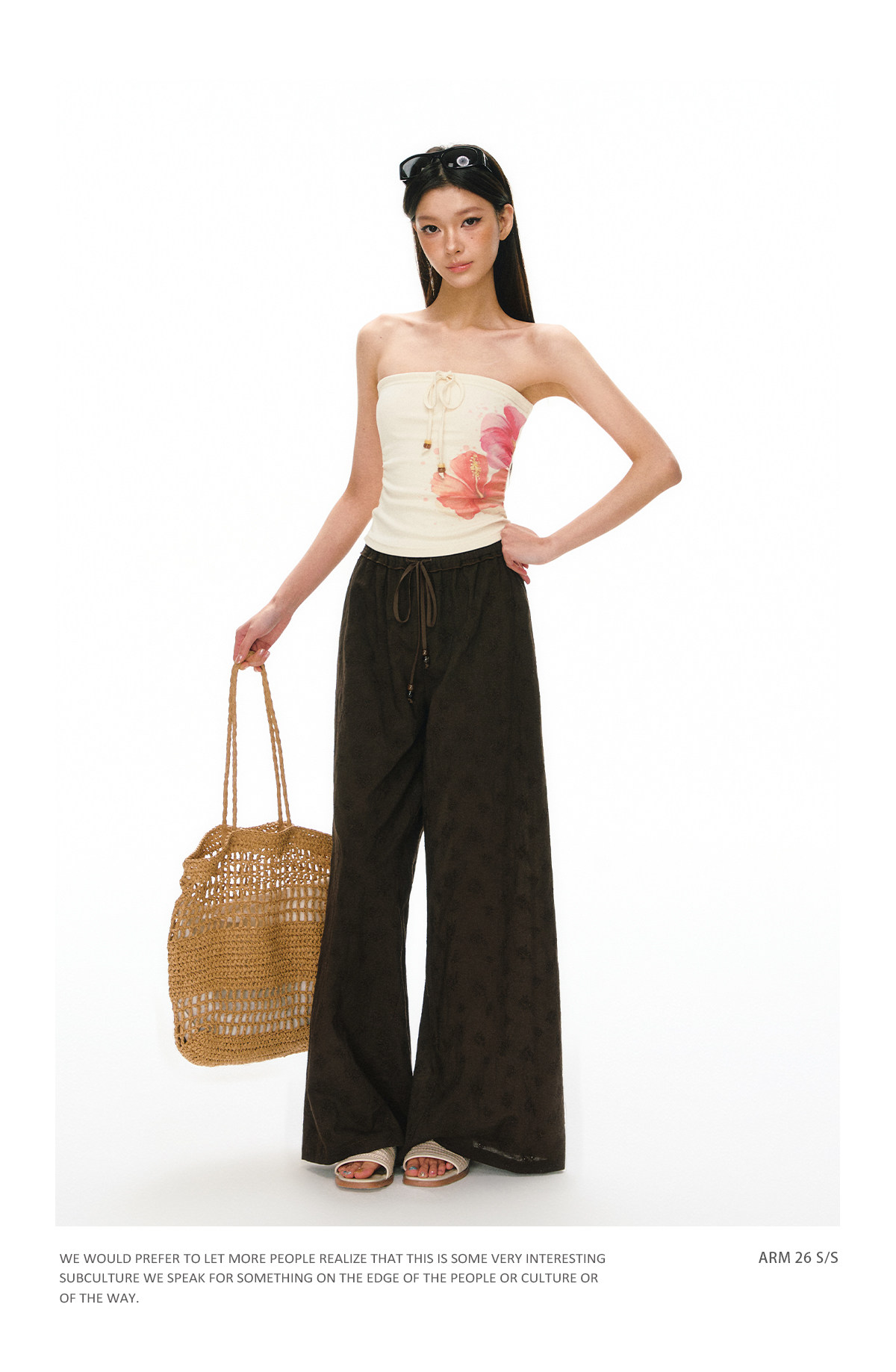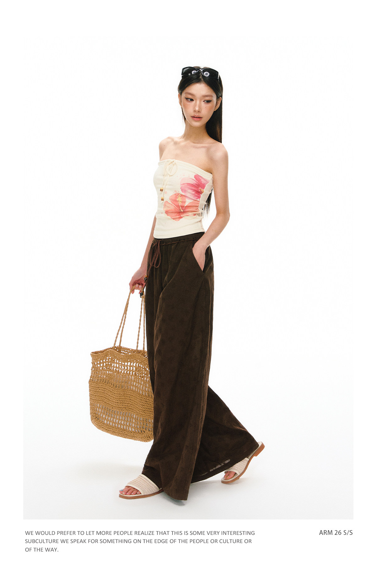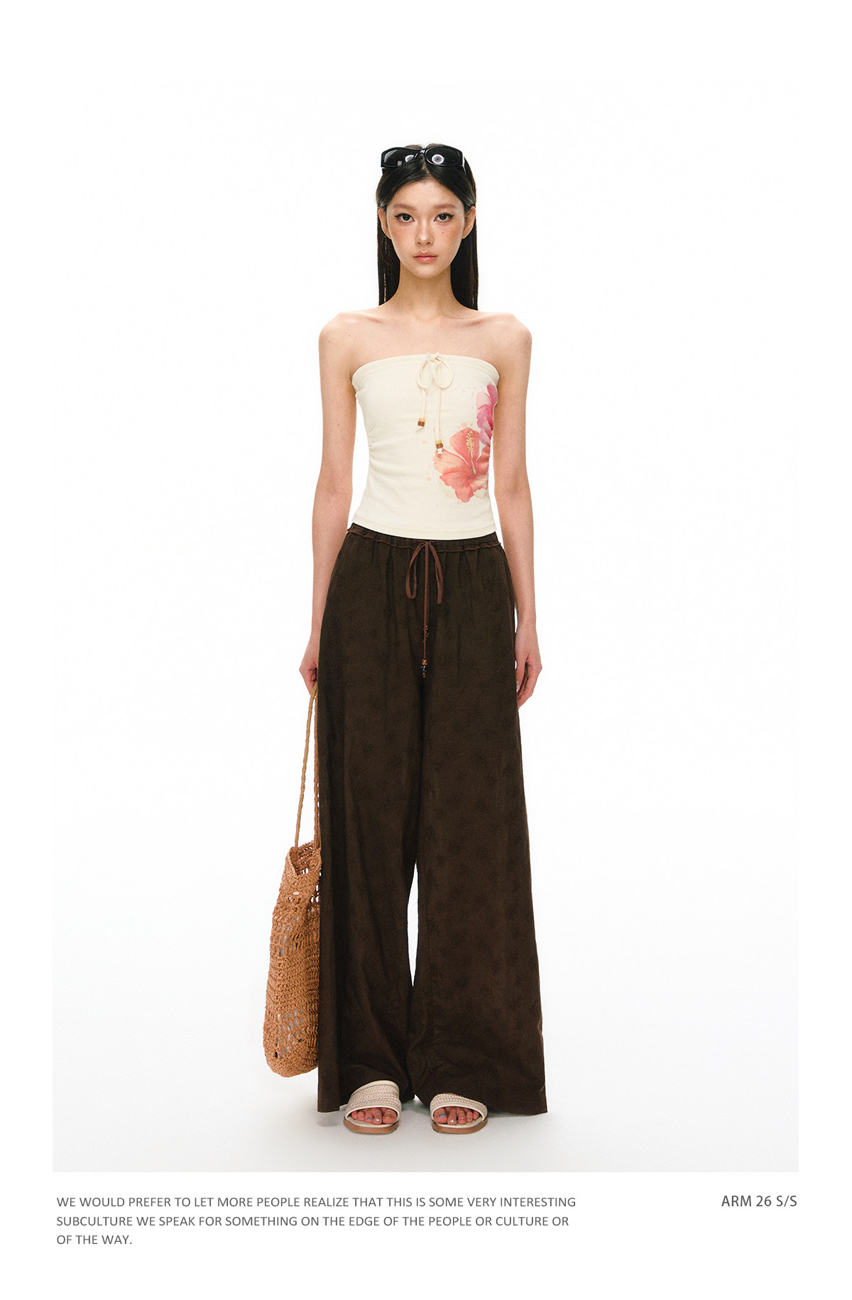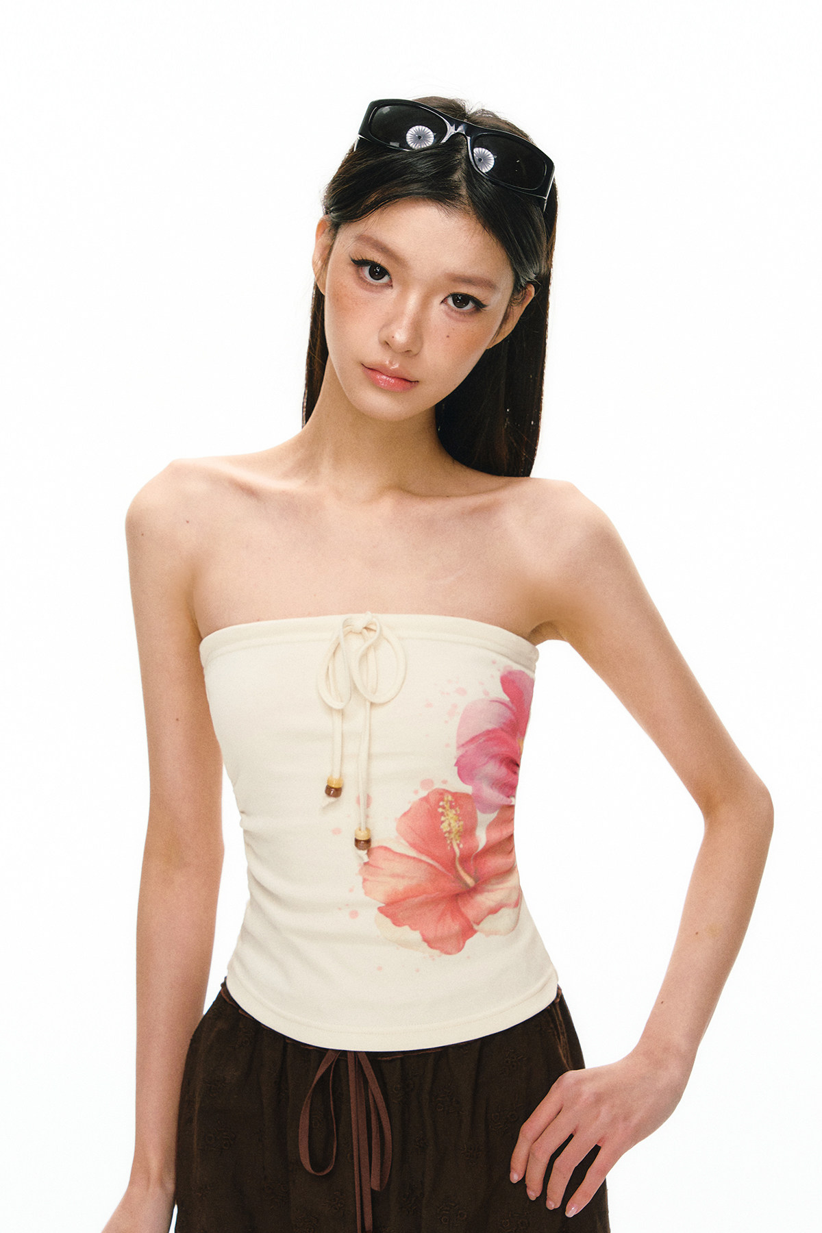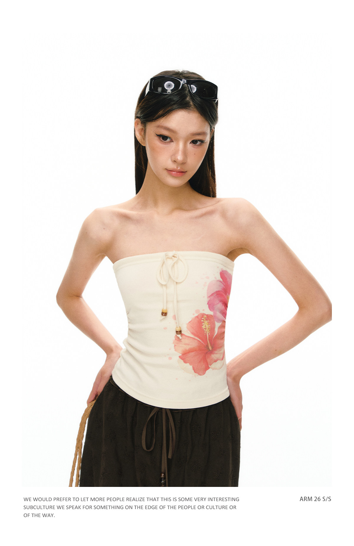 Ariseism 美式复古花朵印花抹胸女夏季新款修身外穿上衣