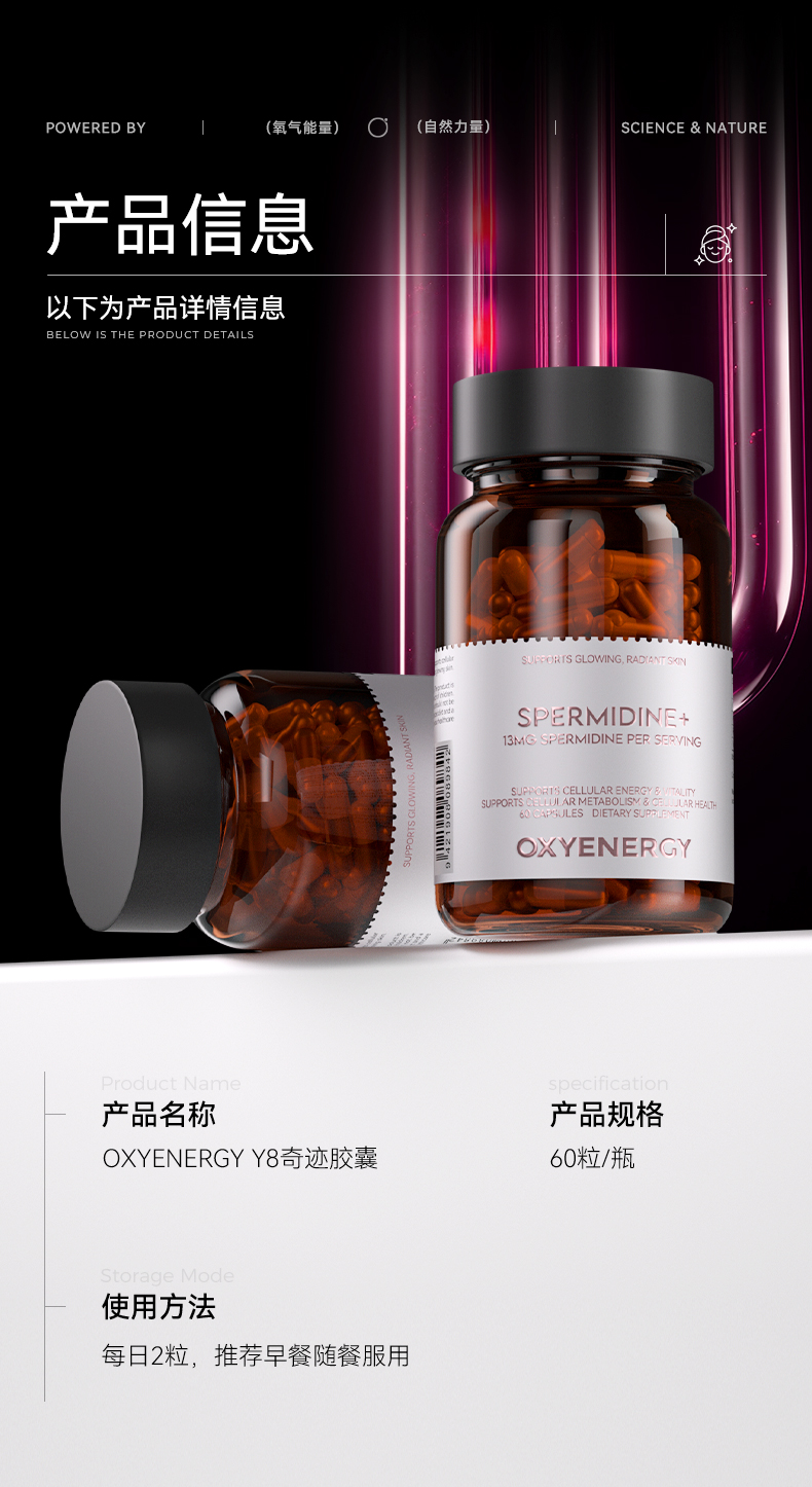 OXYENERGY氧气能量亚精胺Y8奇迹胶囊 60粒/瓶