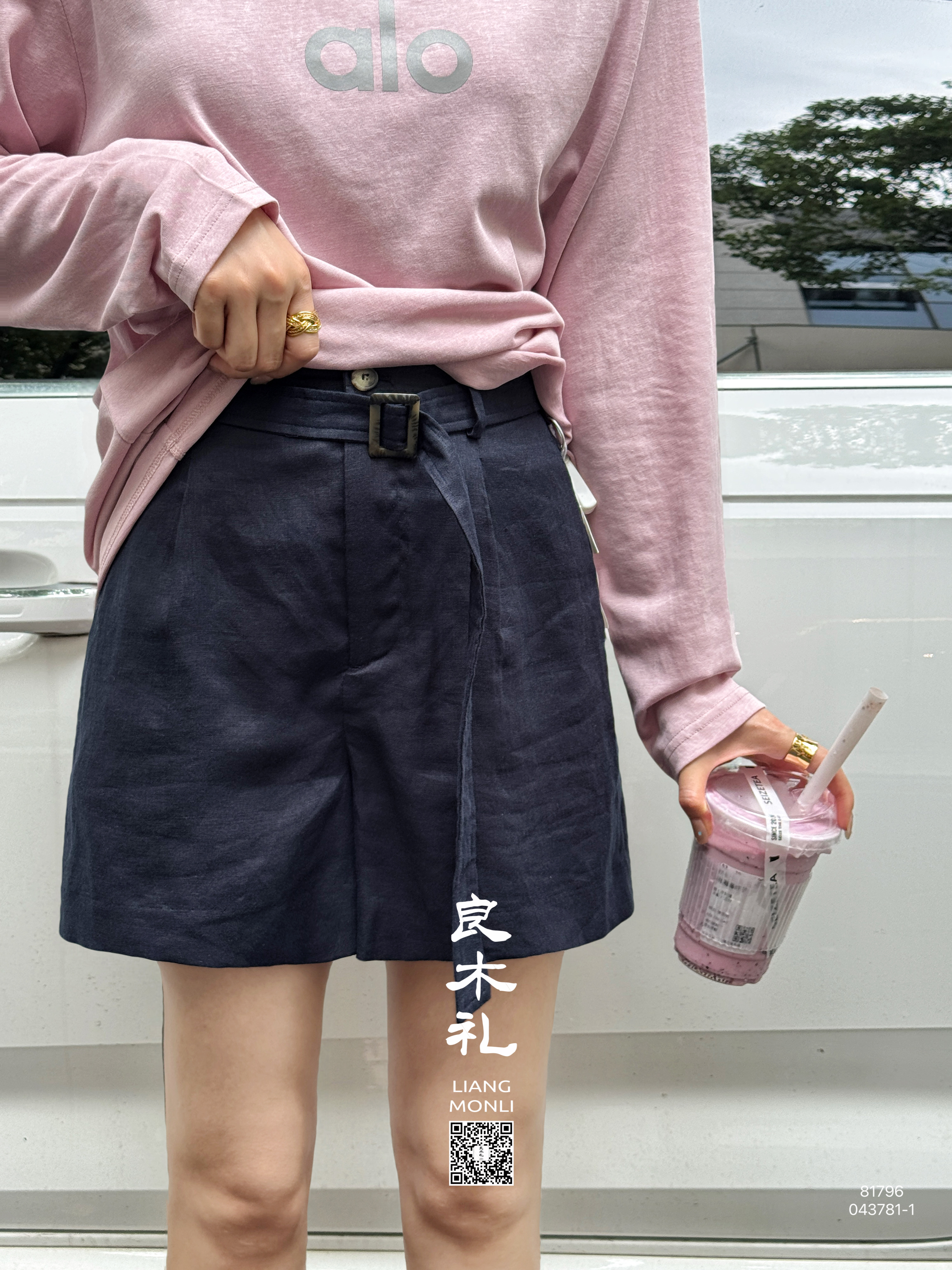 【部分现货】良木礼亚麻短裤(腰带)(043718-1)