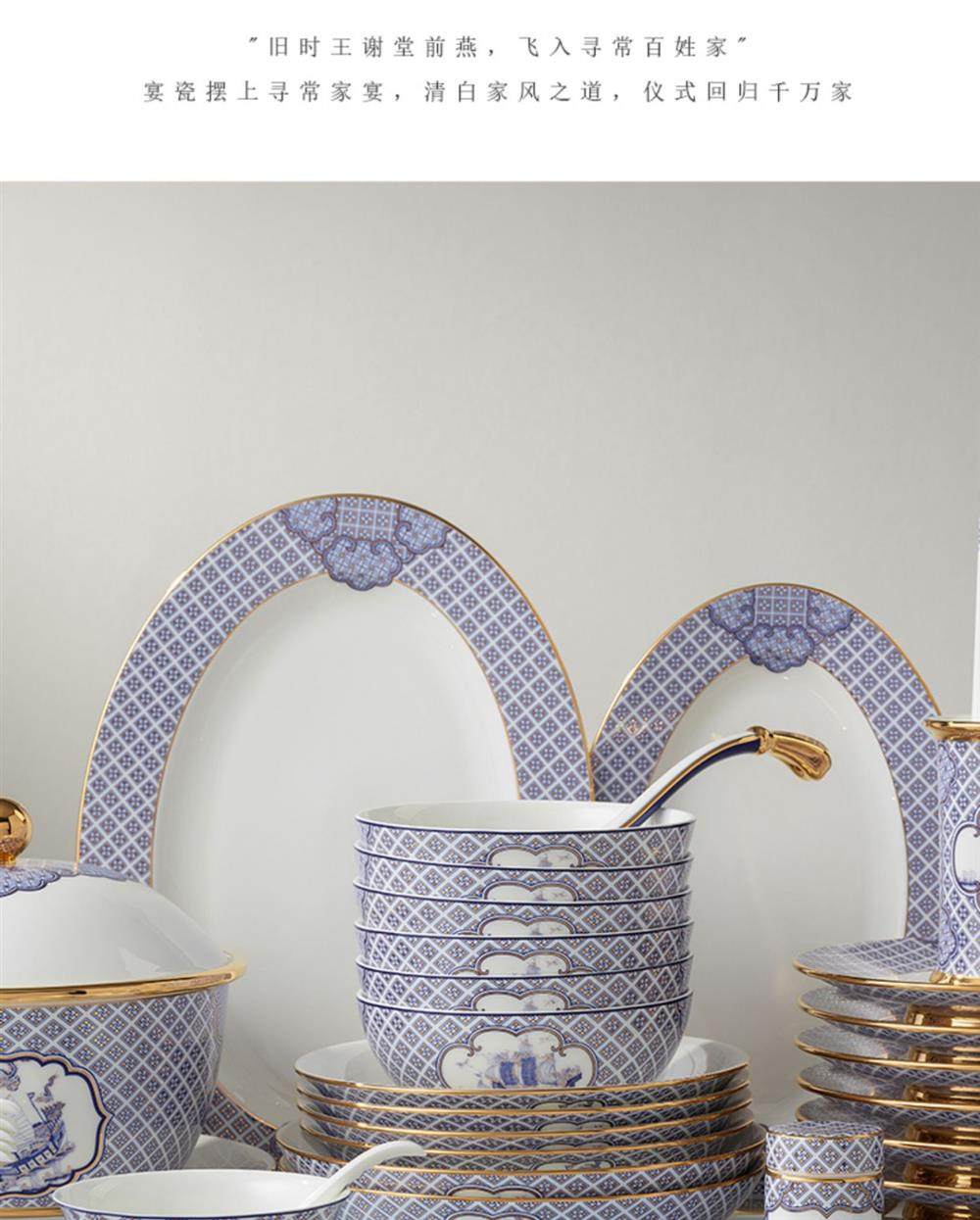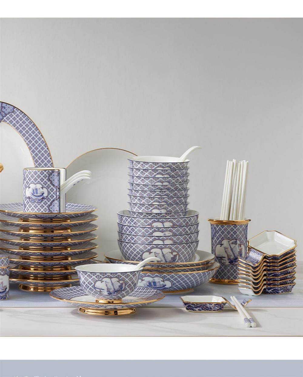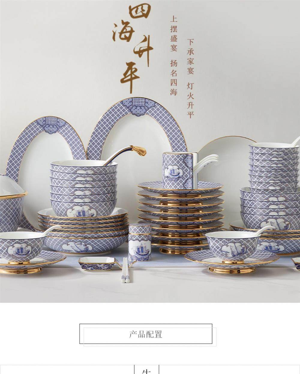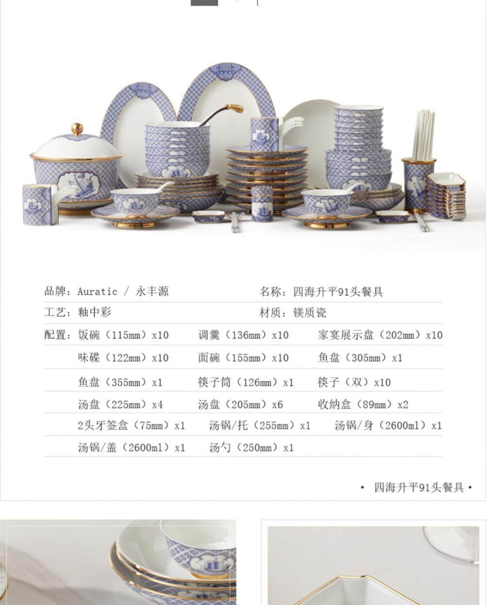 永丰源 四海升平91头餐具套装陶瓷碗碟套装奢华金边 家用乔迁送礼 瓷器产品不支持七天无理由