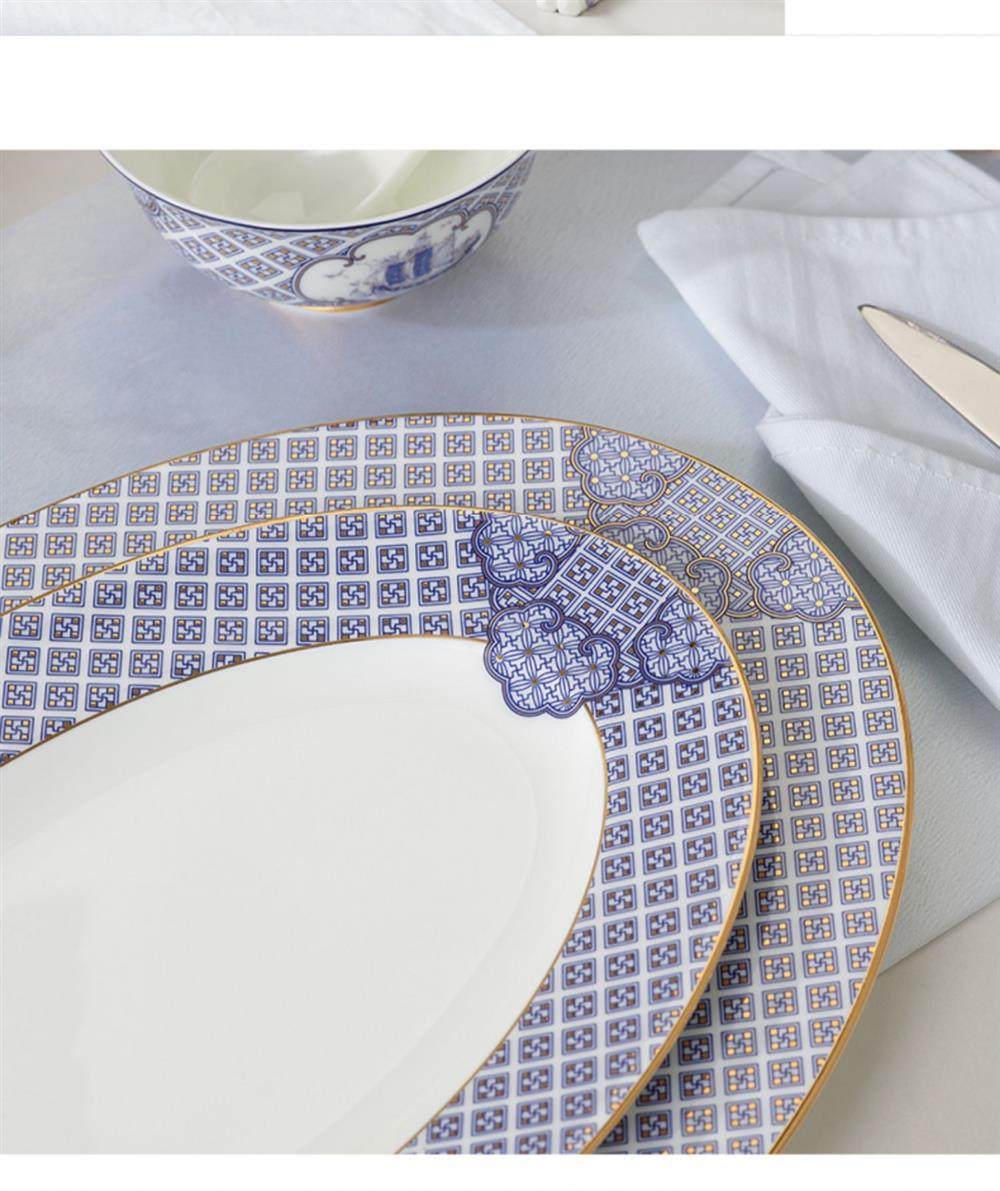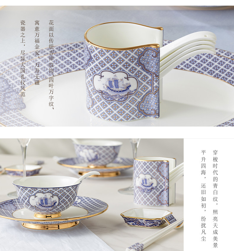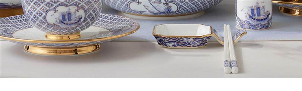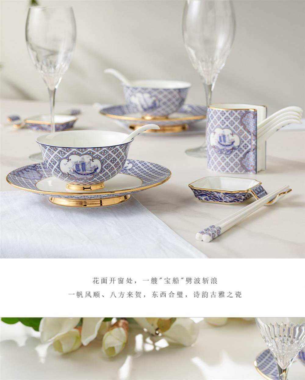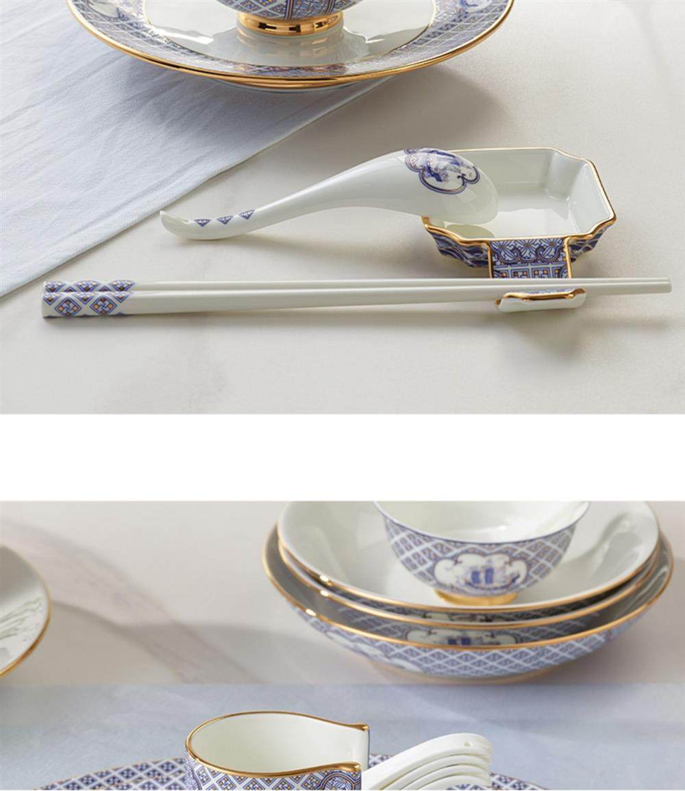 永丰源 四海升平91头餐具套装陶瓷碗碟套装奢华金边 家用乔迁送礼 瓷器产品不支持七天无理由