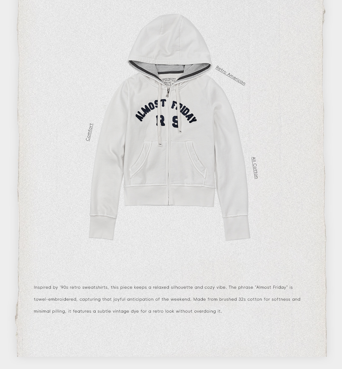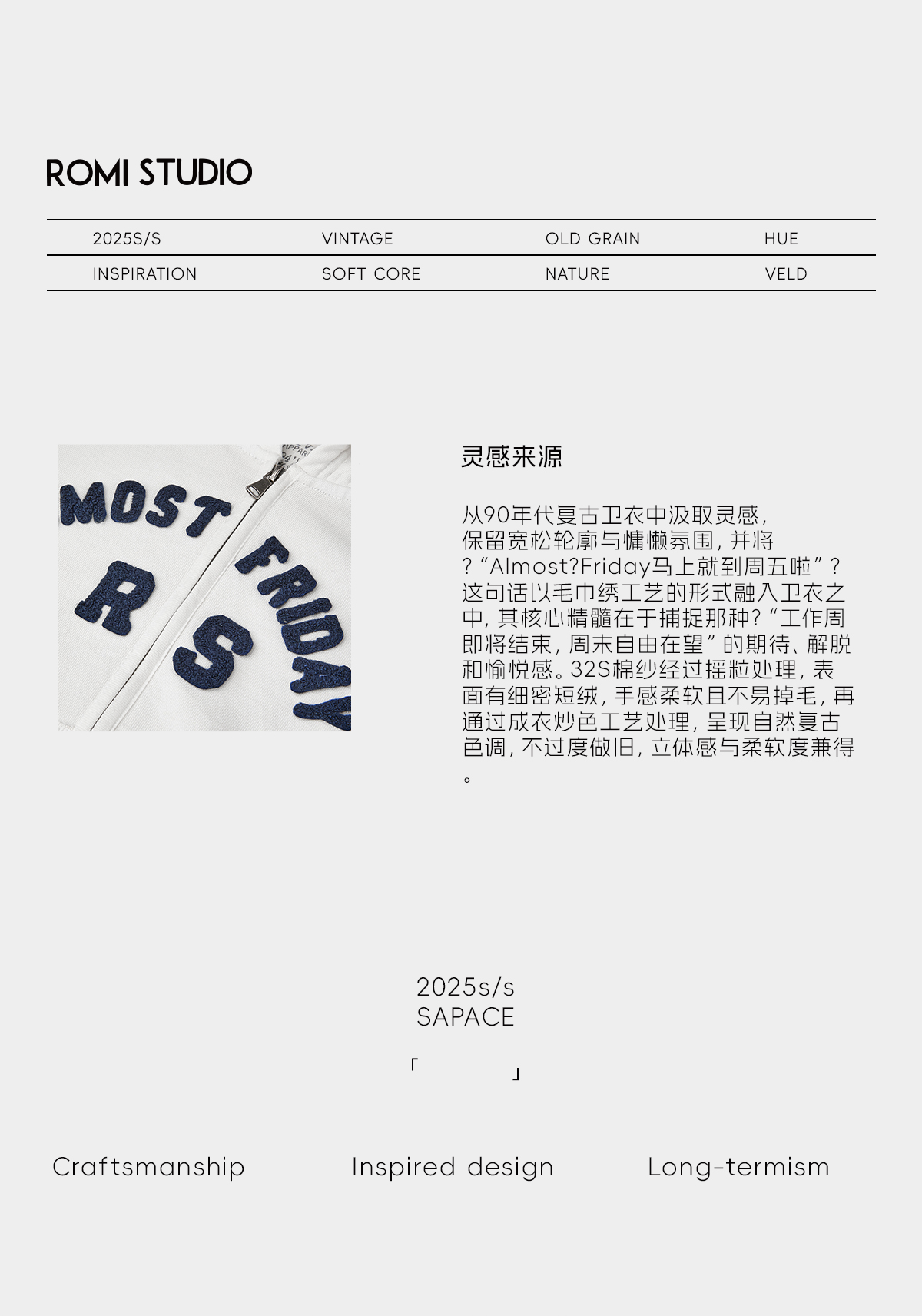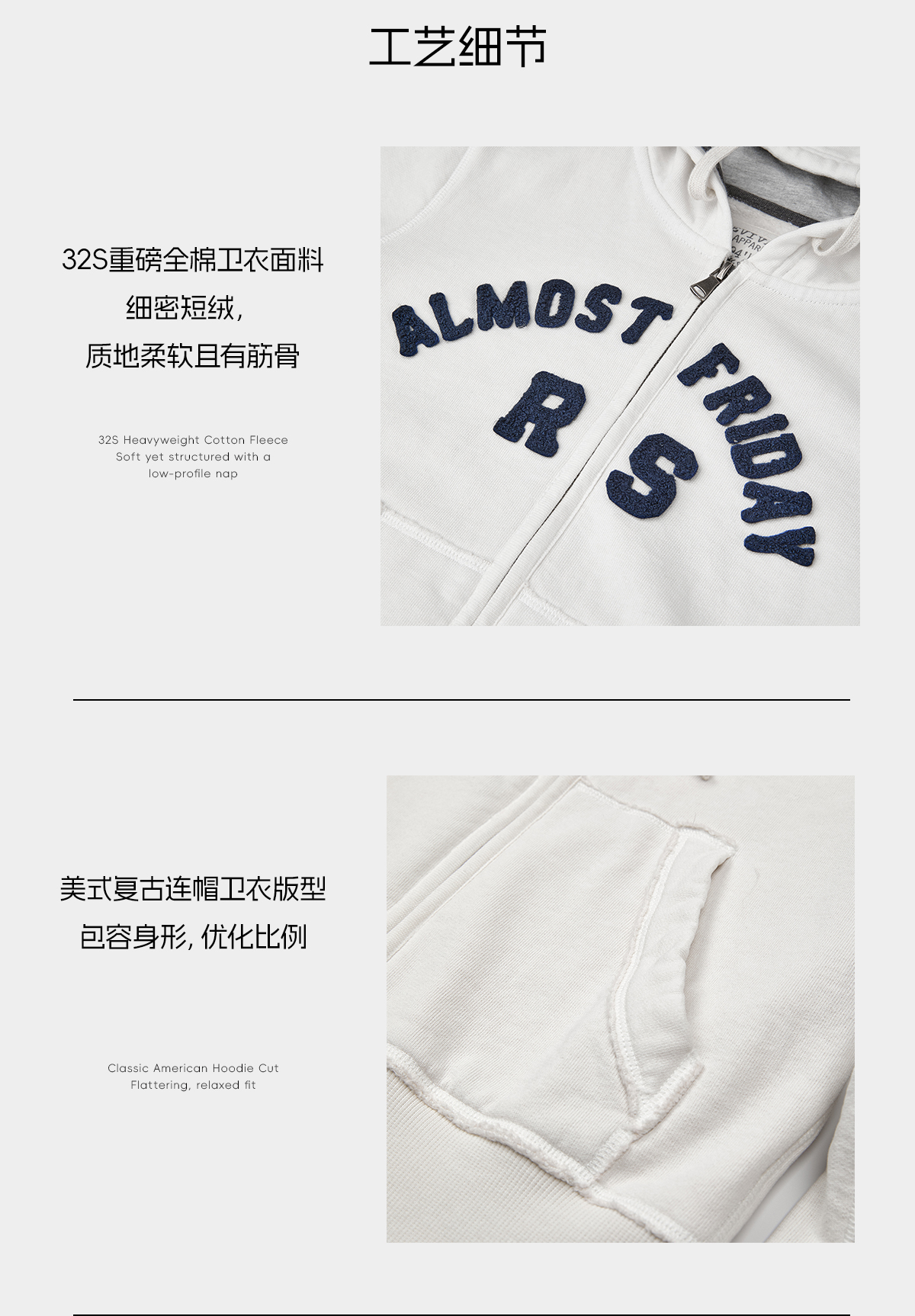 ROMI STUDIO“美式复古”贴布绣毛巾面做旧洗水连帽卫衣RWCAST6312
