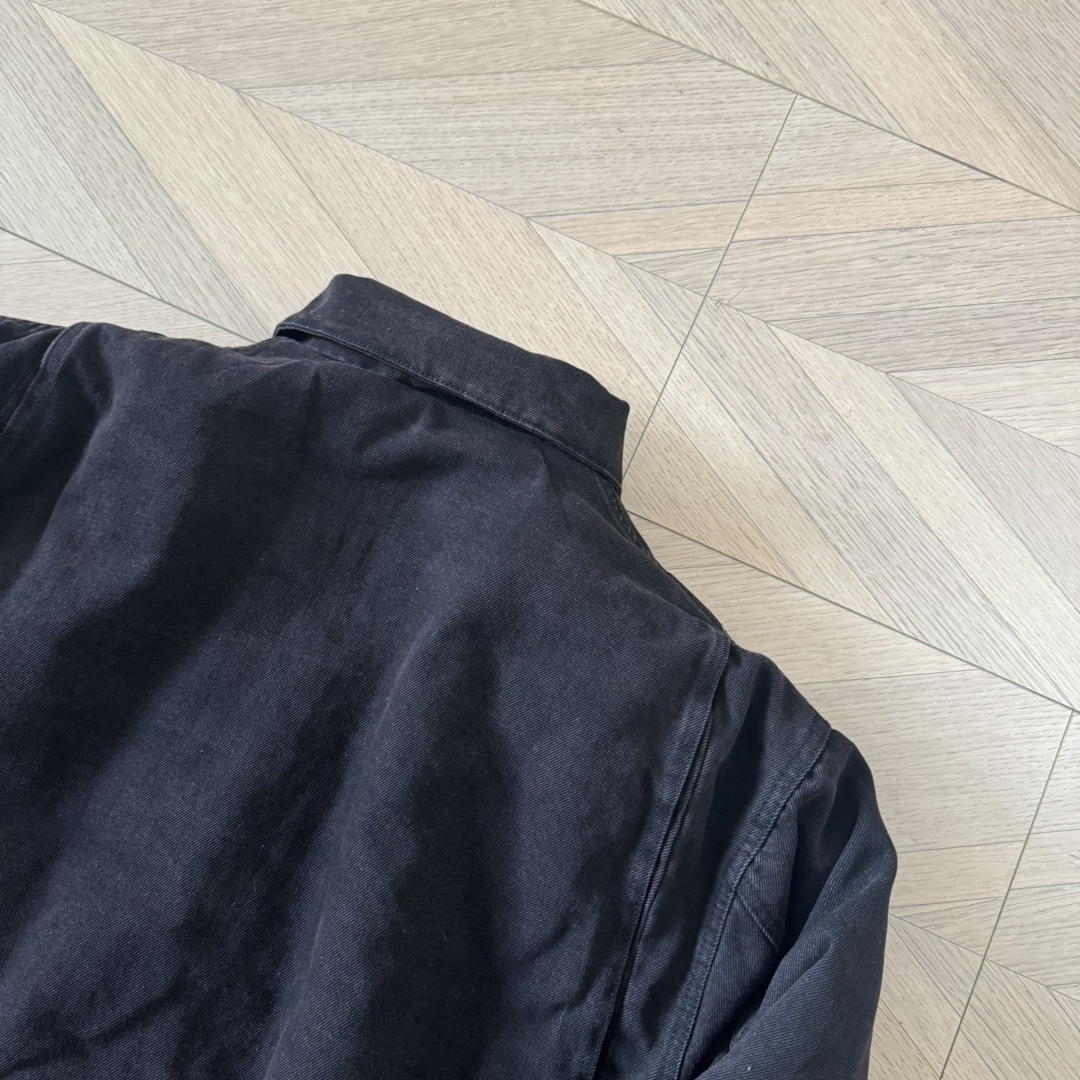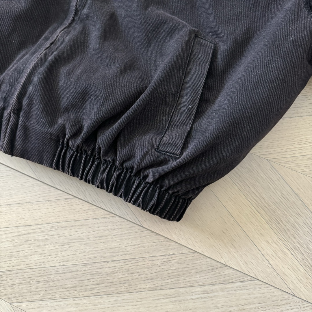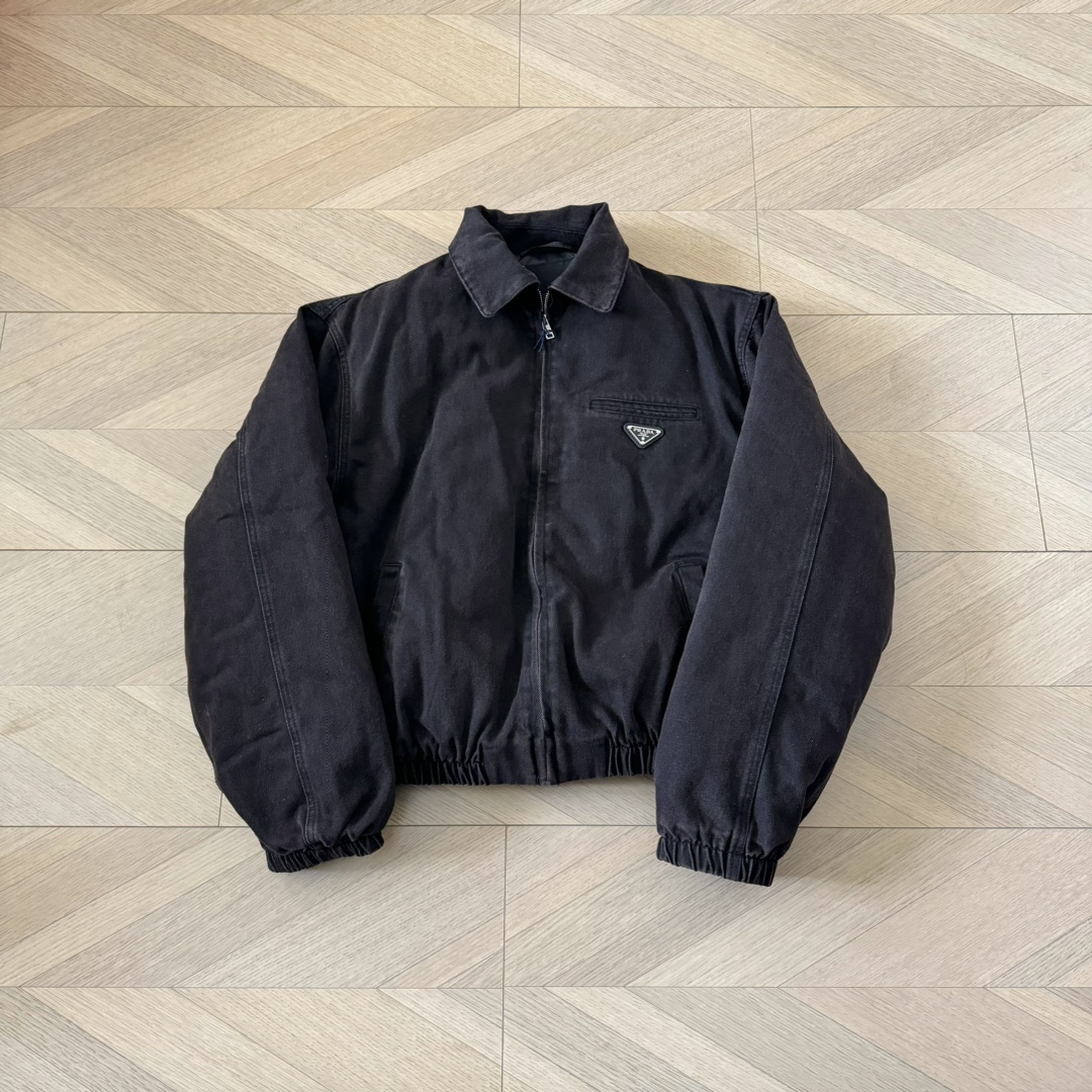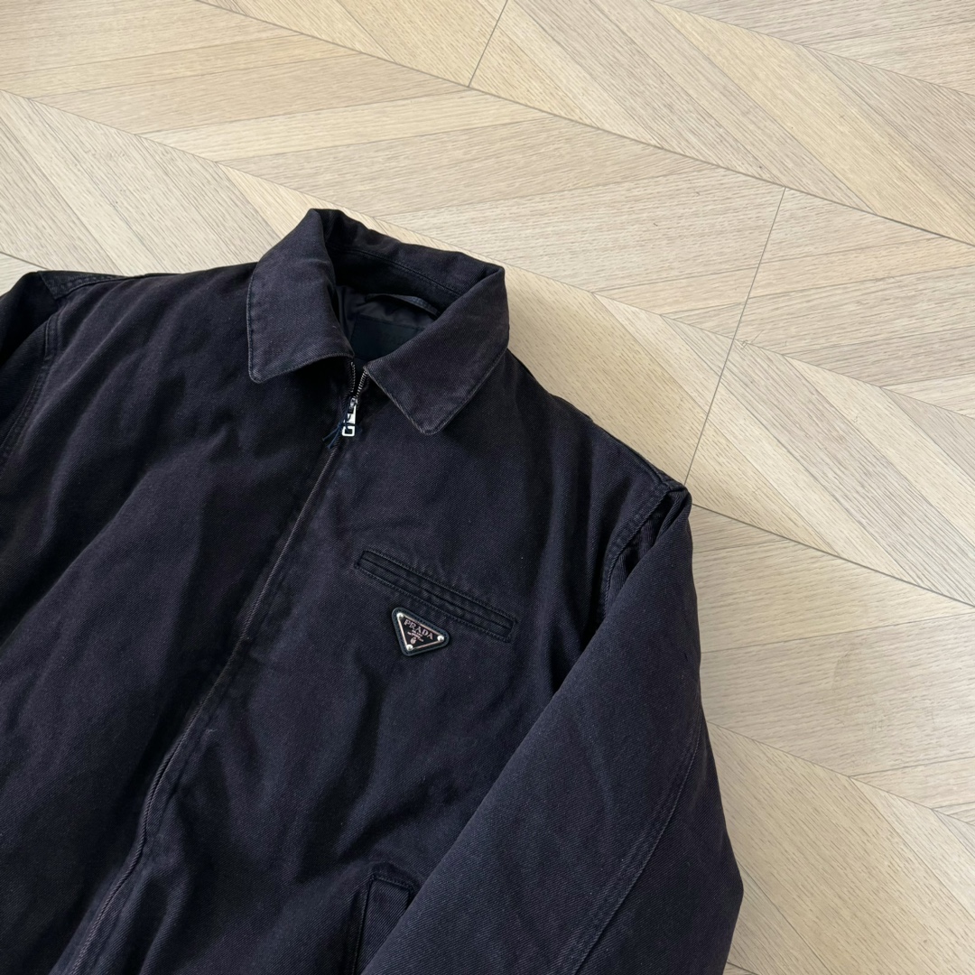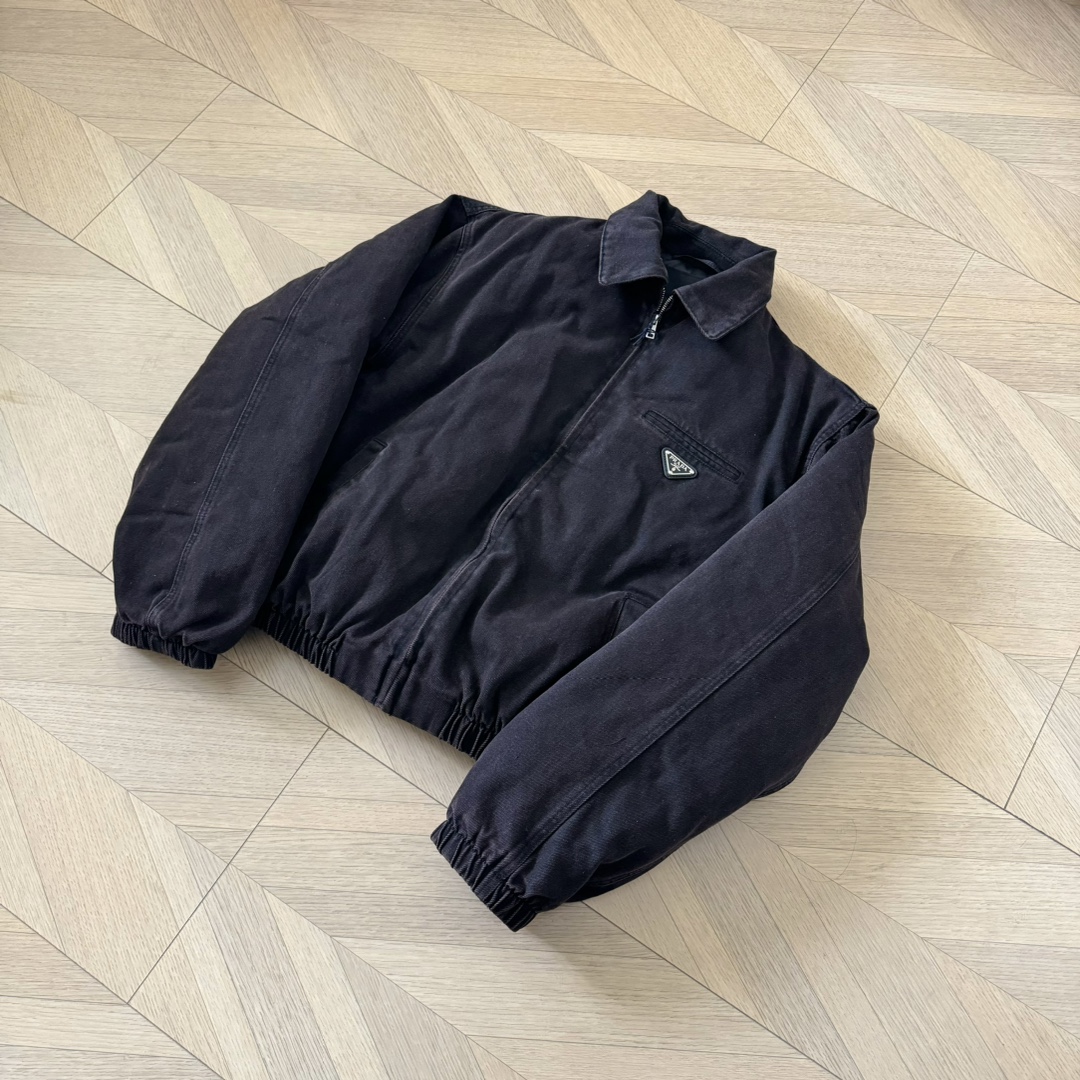 P家 24fw 重磅水洗做旧深棕褐色丹宁水洗牛仔棉服翻领bomber夹克