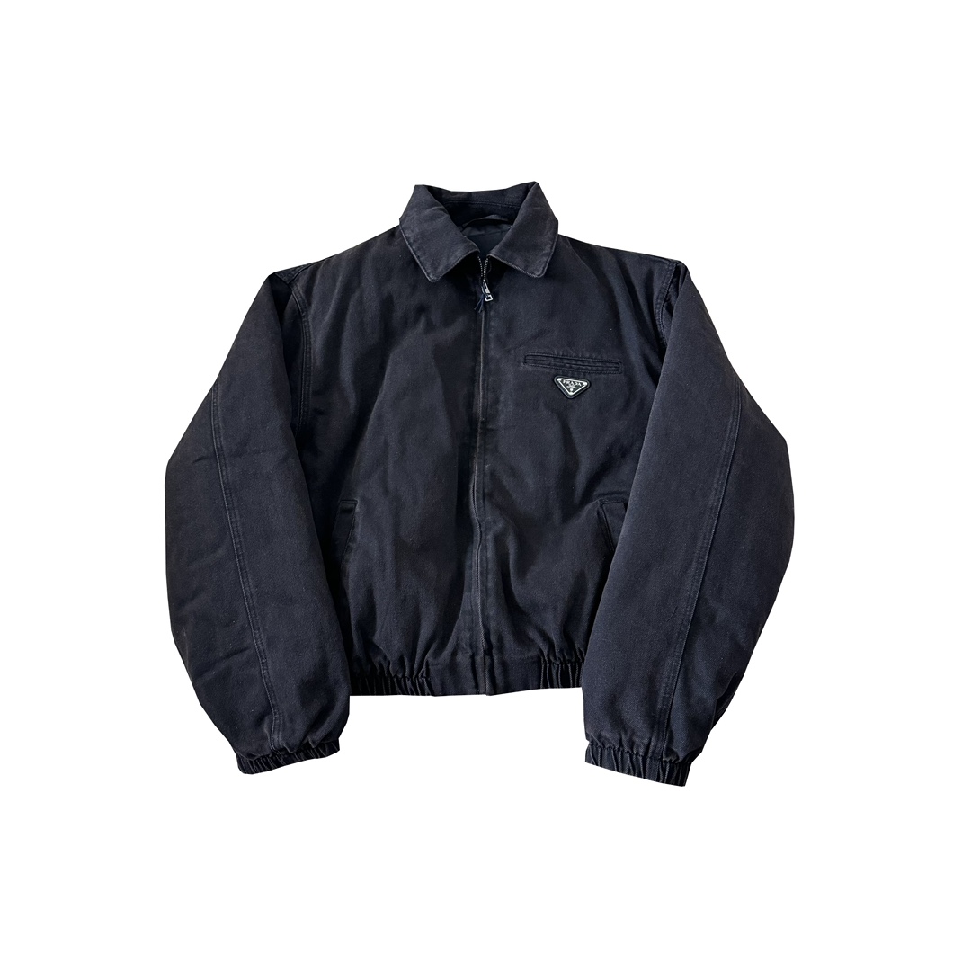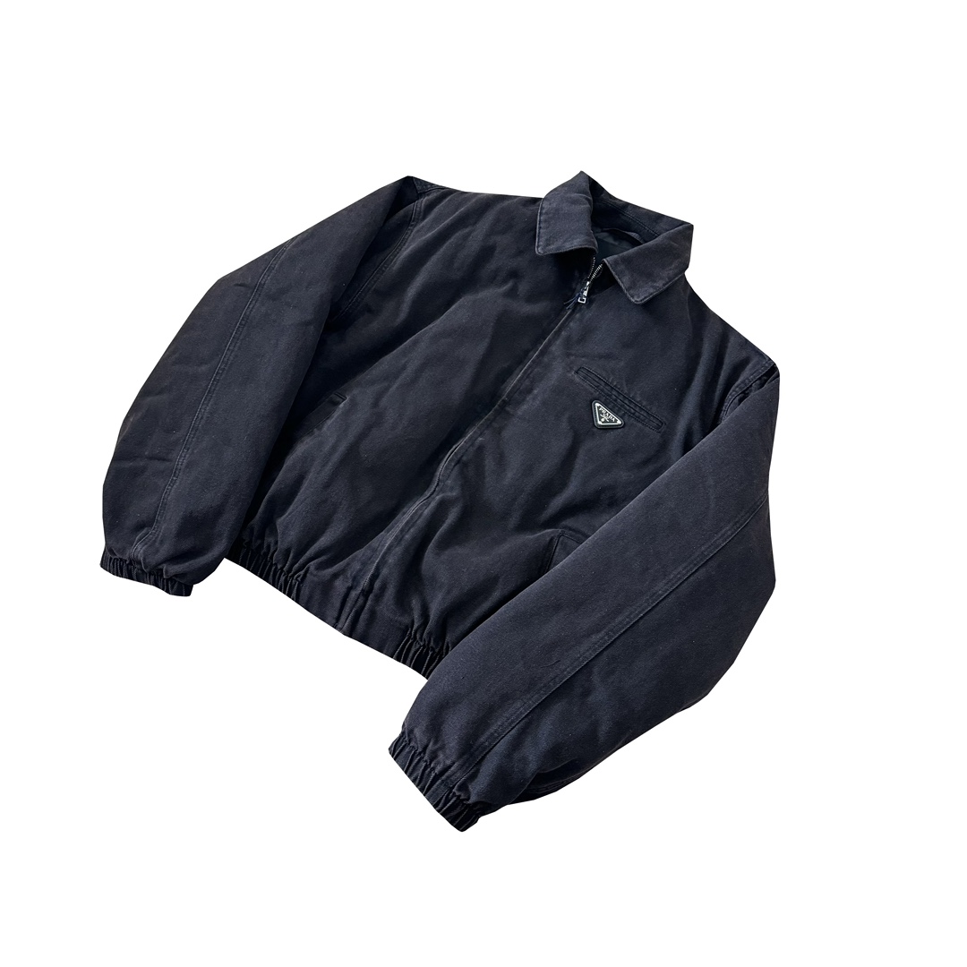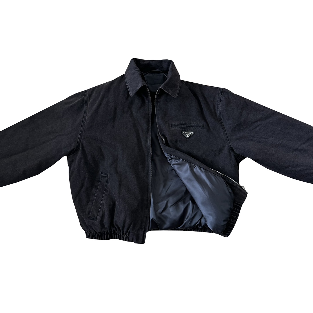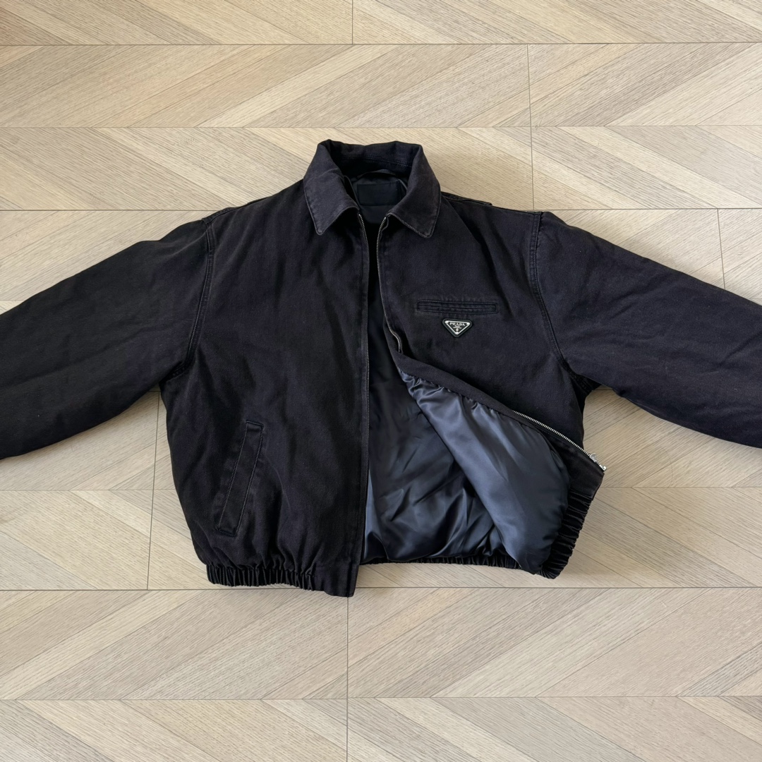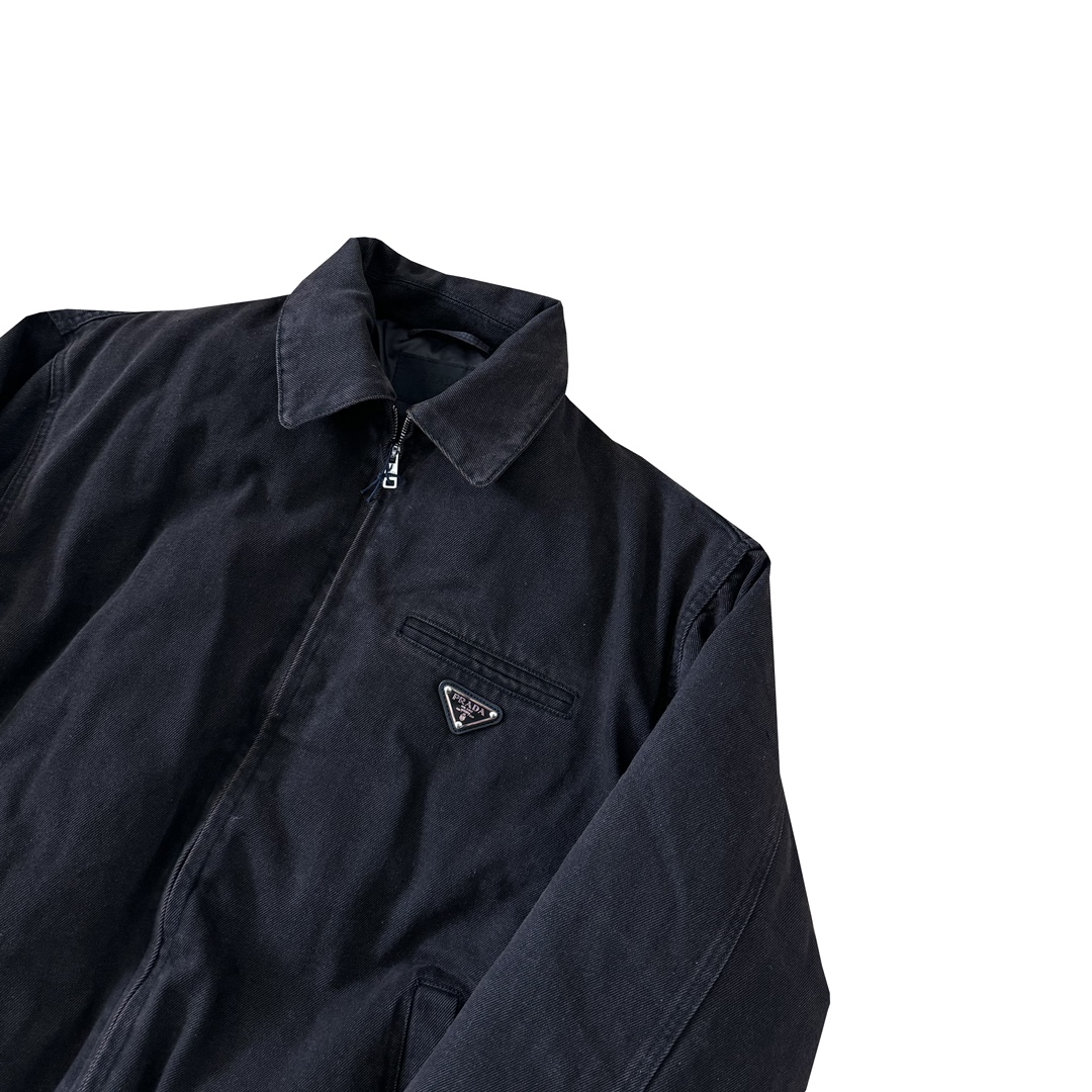 P家 24fw 重磅水洗做旧深棕褐色丹宁水洗牛仔棉服翻领bomber夹克