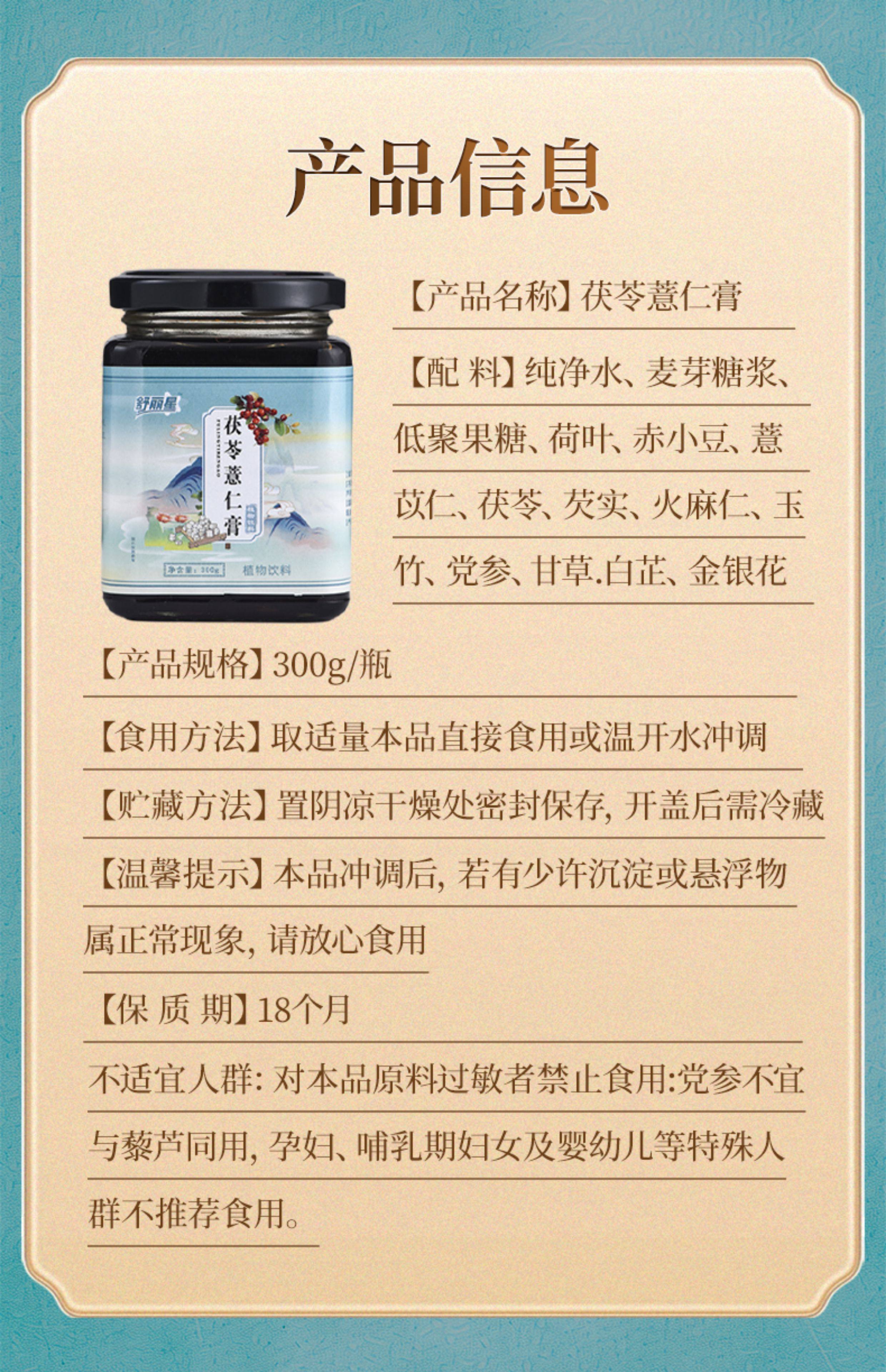 舒丽星薏仁益仁膏 官方正品 舒丽星茯苓膏 茯苓薏仁膏