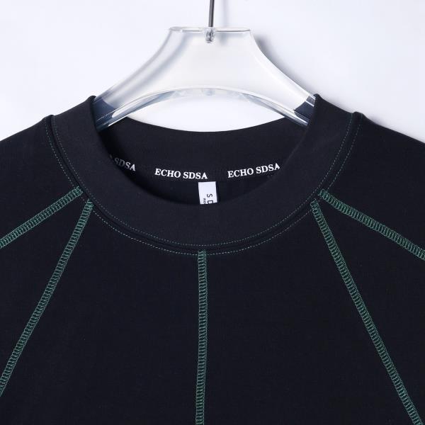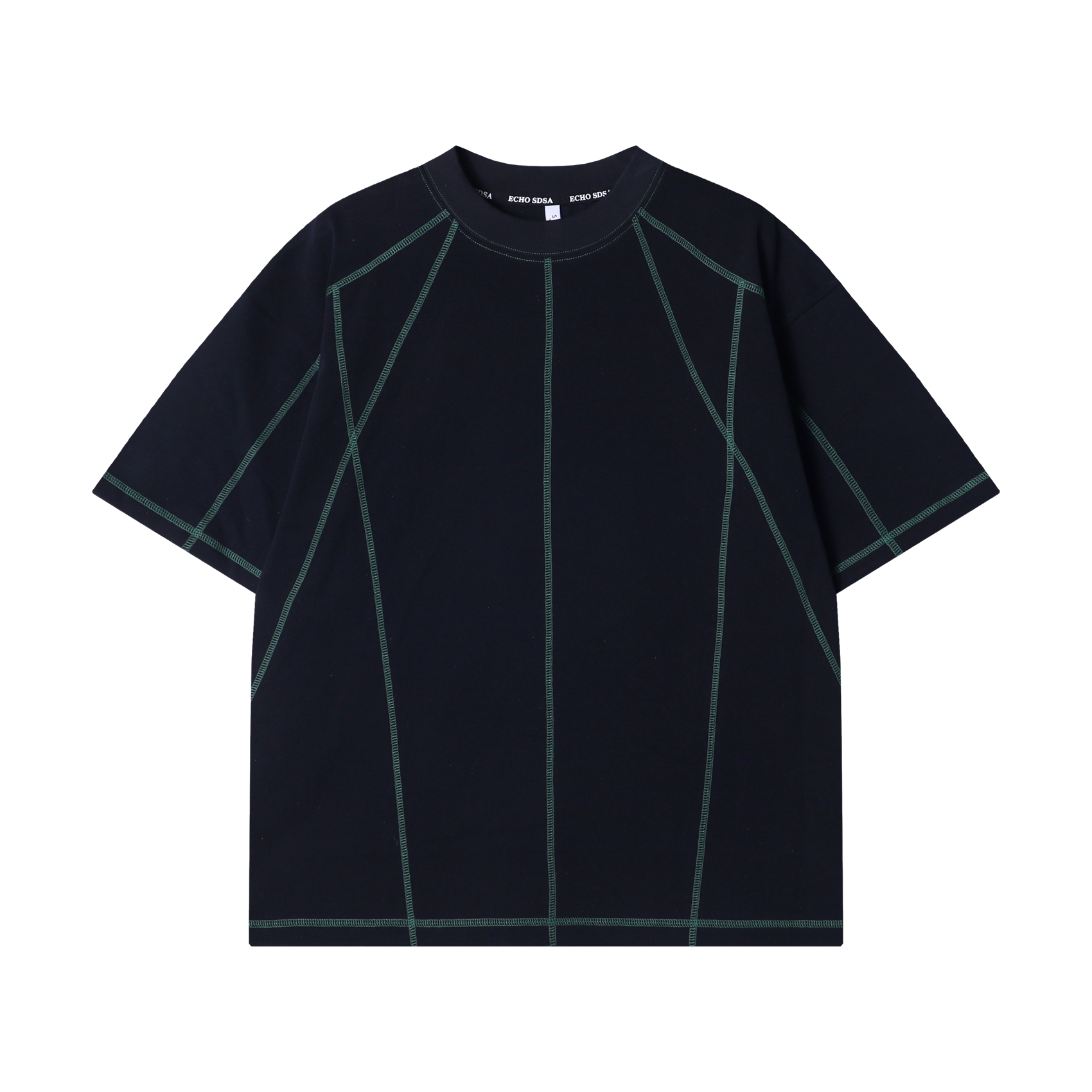 T2686夏季新款高级感韩版缝线撞色圆领短袖T恤百搭潮流宽松情侣上衣