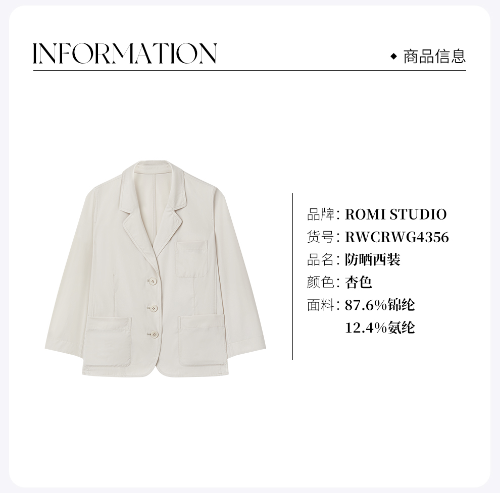 ROMI STUDIO防晒UPF50轻量化高弹轻薄西装杏色外套RWCRWG4356
