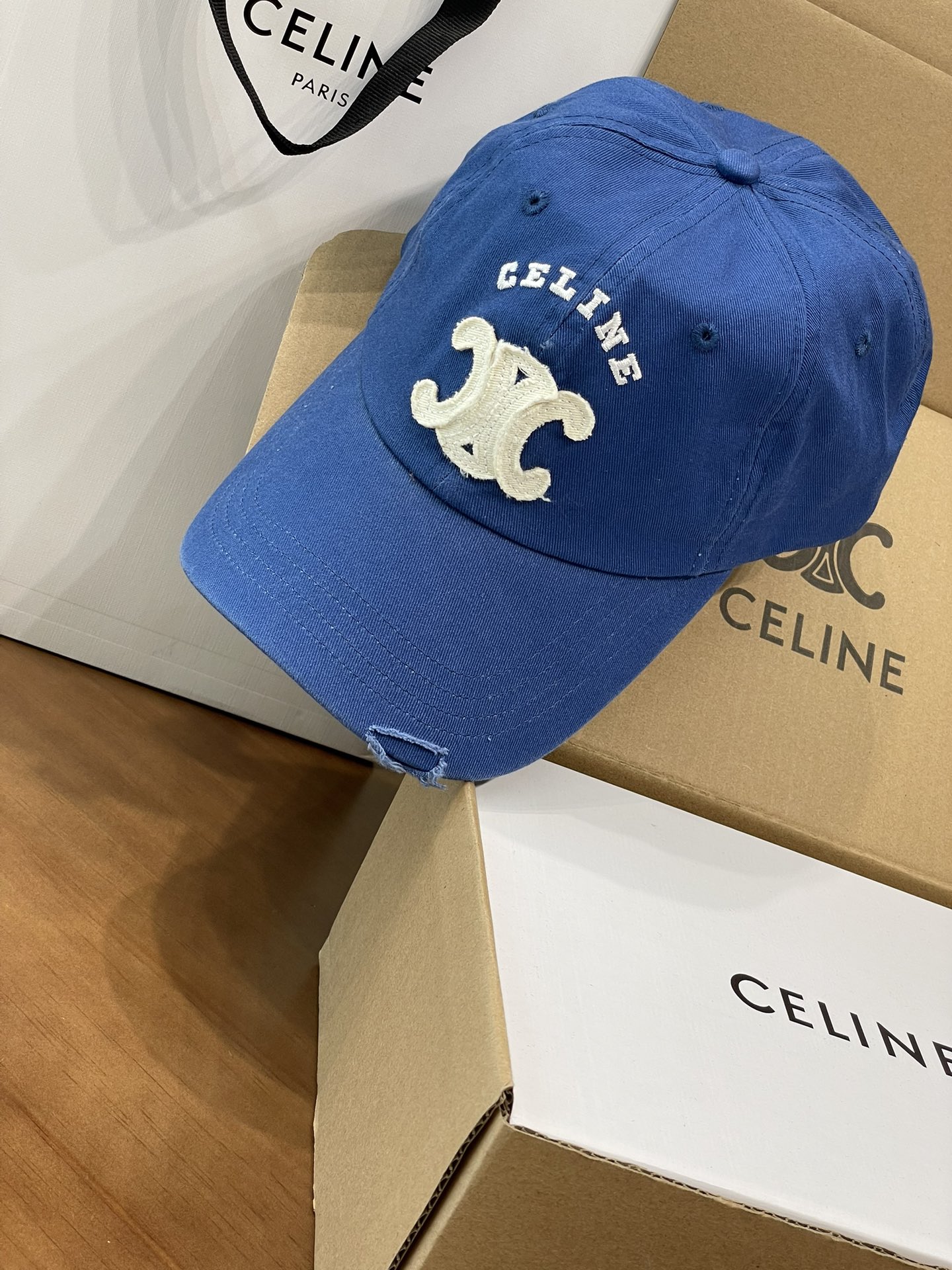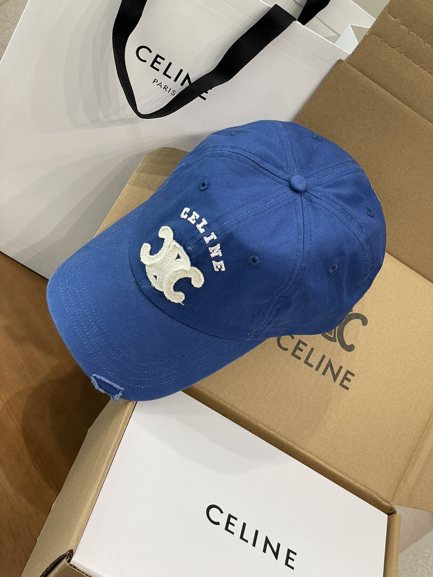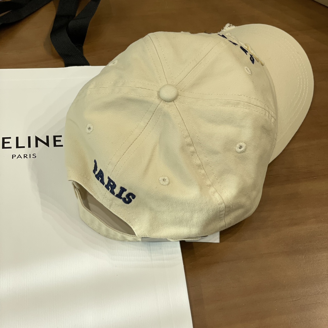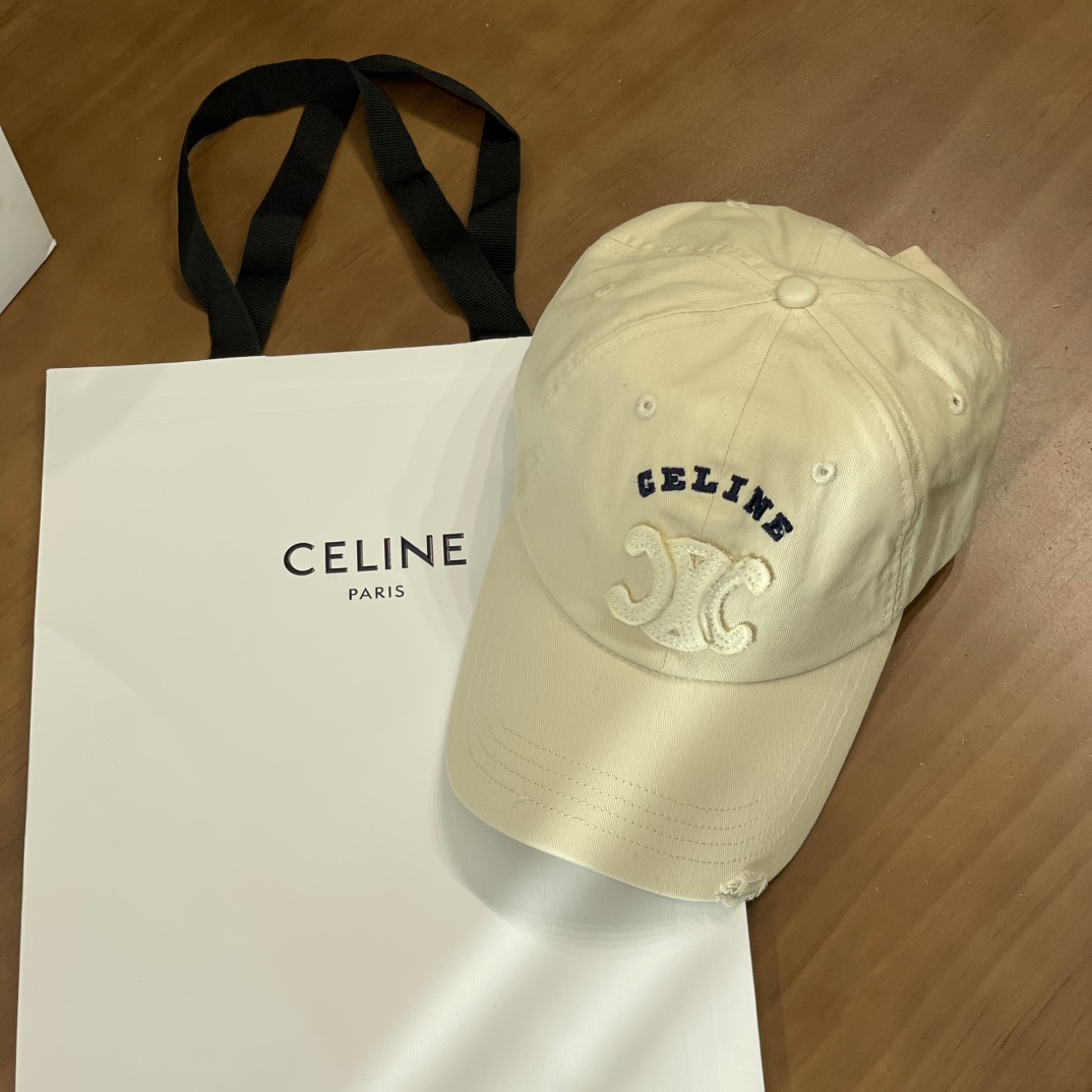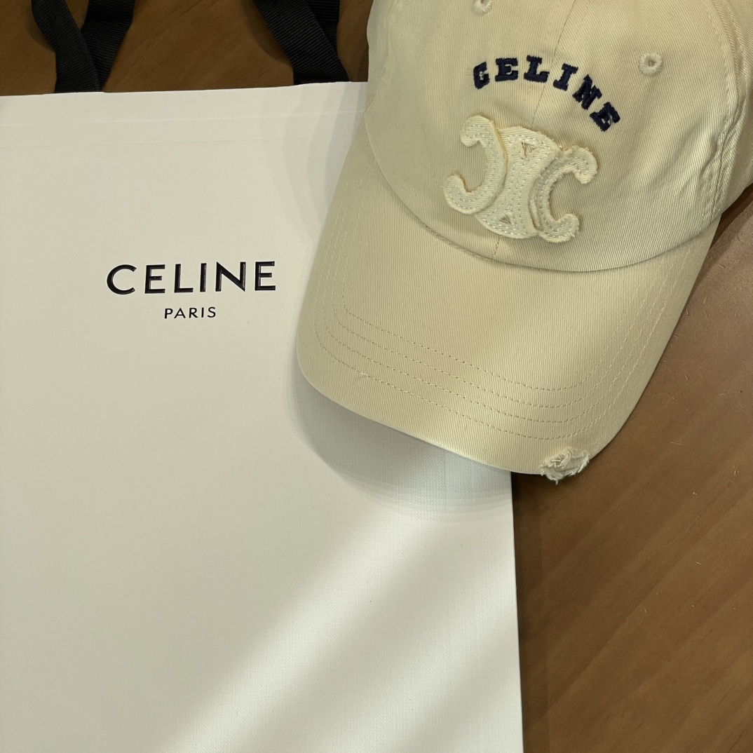 Celine棒球帽 | 经典与潮流的完美融合 配双盒定制包装 (无手提袋) Celine新款棒球帽 蓝色的活力、黑色的酷帅、米色的温柔、灰色的质感 ,每个颜色都超绝,适配各种穿搭风格。 标志性的Celine logo刺绣精致立体,彰显品牌格调,帽檐处微微的破洞设计,增添了不羁的潮流感,复古与时尚并存。帽型挺括,修饰脸型效果一流,戴上秒变小脸,还能营造出头包脸的氛围感。 不管是搭配简约T恤和牛仔裤,打造随性街头风;还是配上连衣裙突显优雅气质,这几款Celine棒球帽都能完美适配,成为造型的点睛之笔。日常出街、旅游拍照,有它们在,随手一拍都是时尚大片📸。