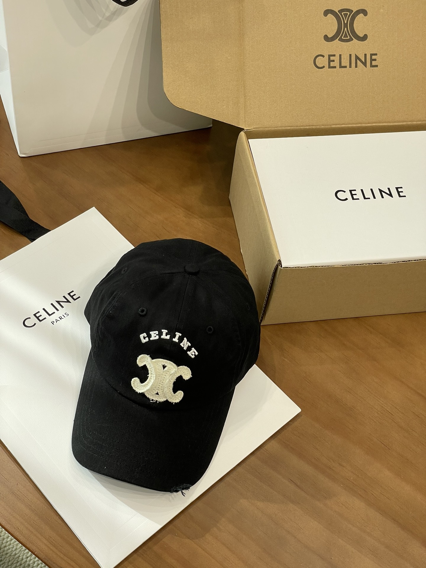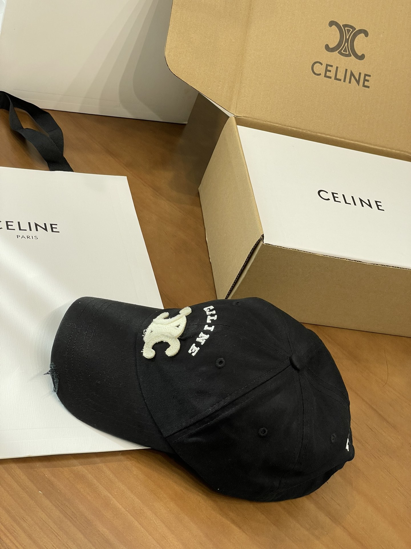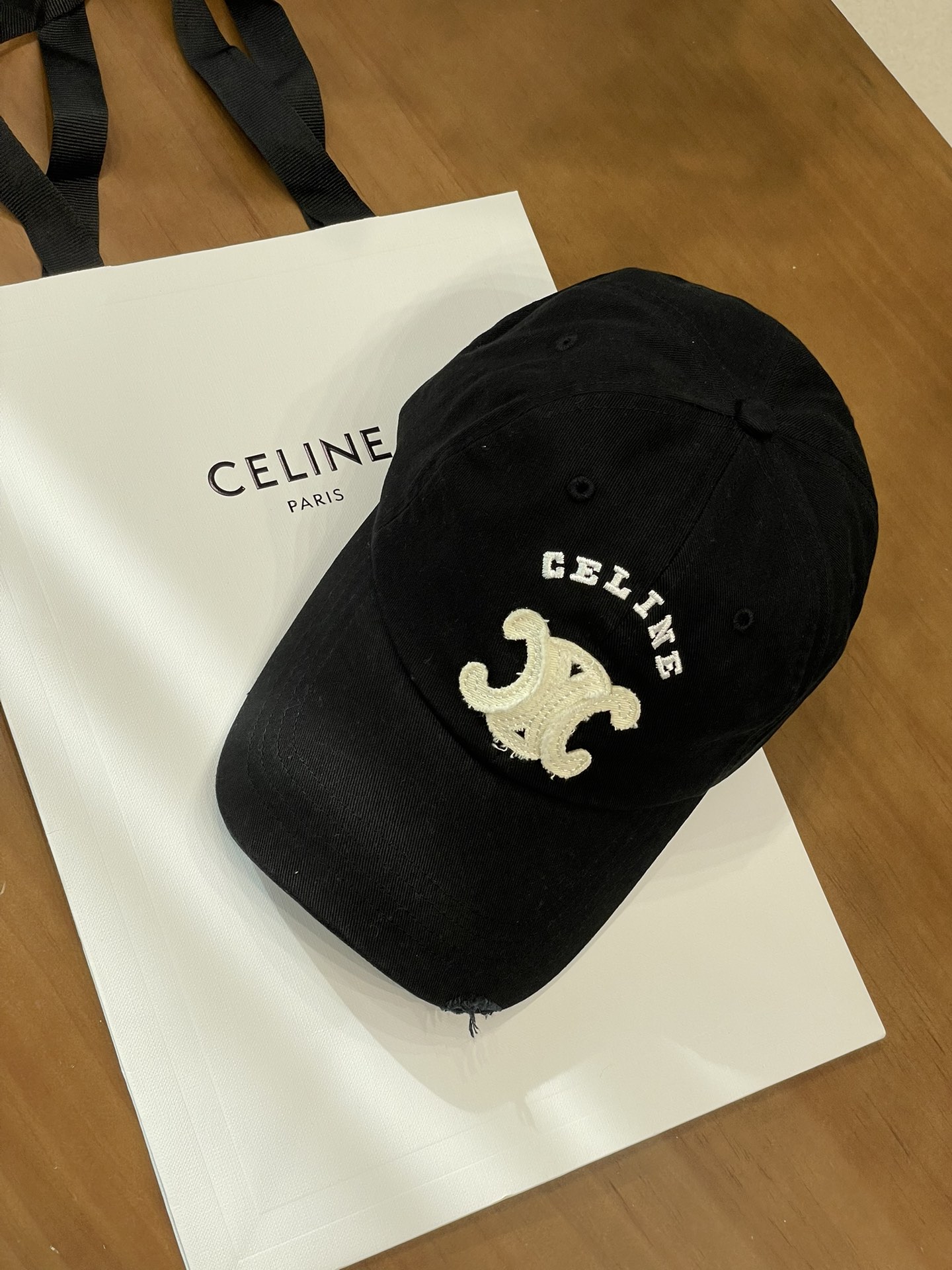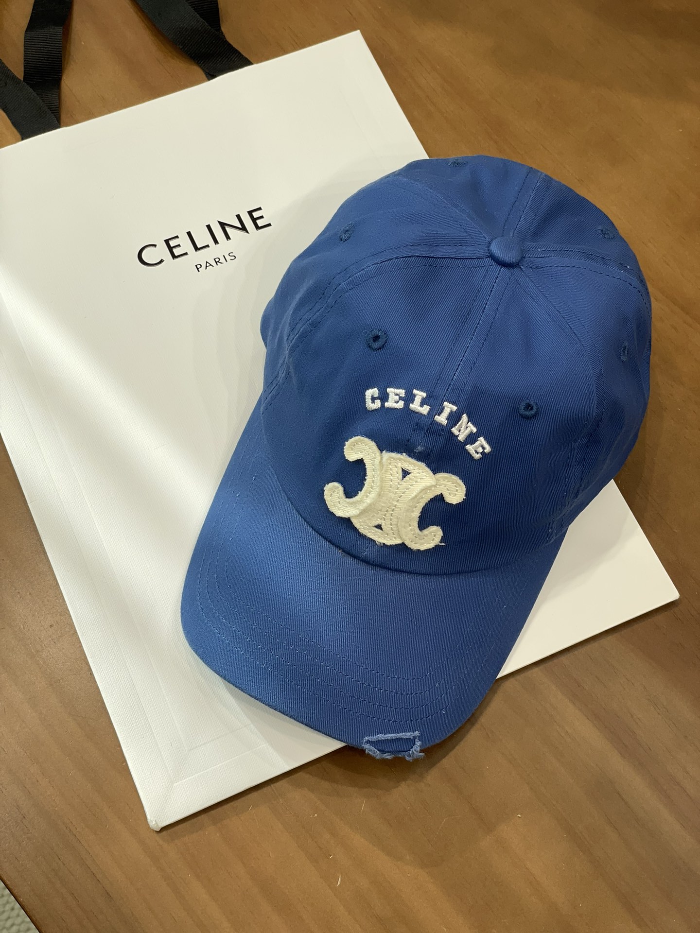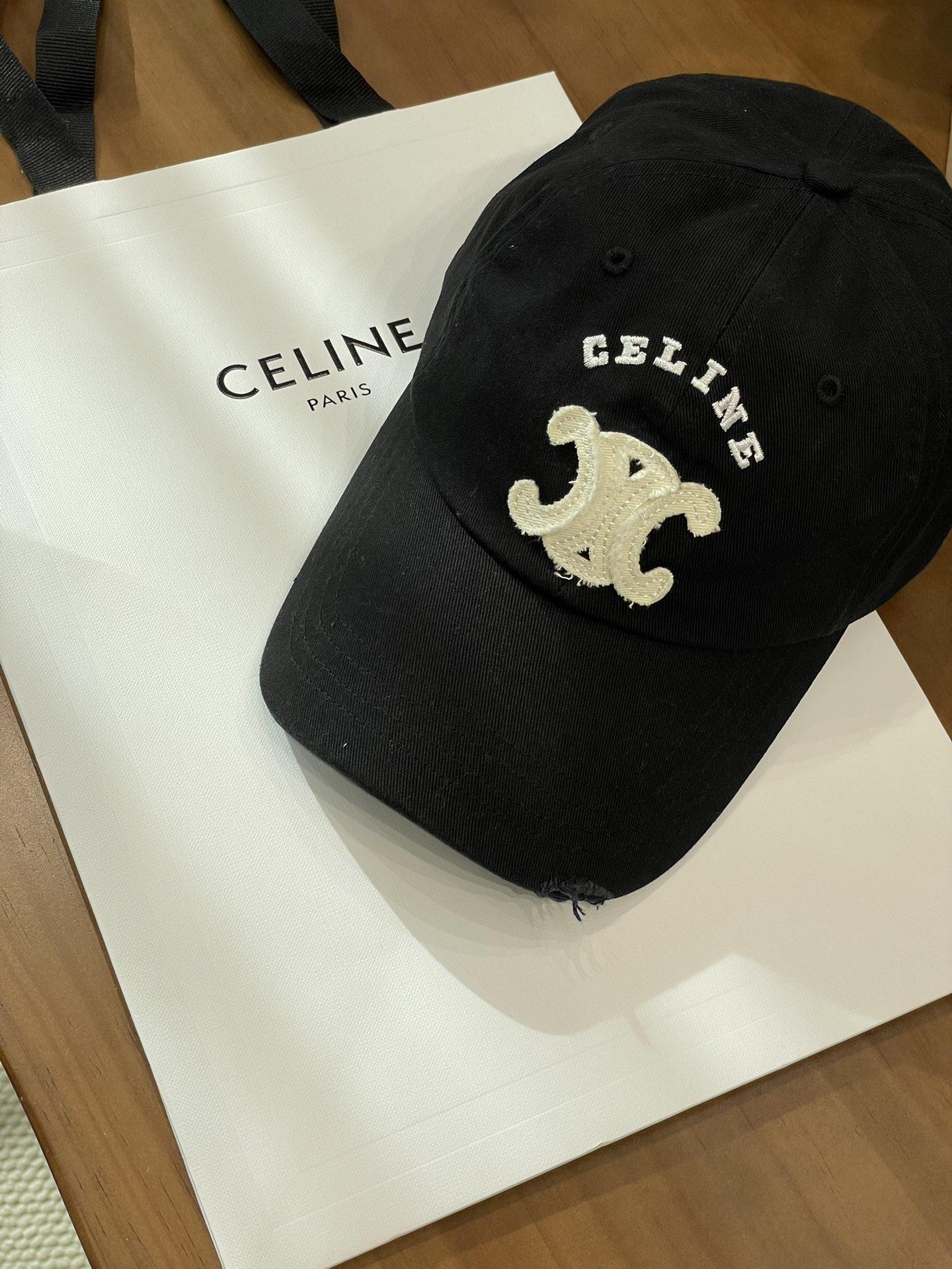 Celine棒球帽 | 经典与潮流的完美融合 配双盒定制包装 (无手提袋) Celine新款棒球帽 蓝色的活力、黑色的酷帅、米色的温柔、灰色的质感 ,每个颜色都超绝,适配各种穿搭风格。 标志性的Celine logo刺绣精致立体,彰显品牌格调,帽檐处微微的破洞设计,增添了不羁的潮流感,复古与时尚并存。帽型挺括,修饰脸型效果一流,戴上秒变小脸,还能营造出头包脸的氛围感。 不管是搭配简约T恤和牛仔裤,打造随性街头风;还是配上连衣裙突显优雅气质,这几款Celine棒球帽都能完美适配,成为造型的点睛之笔。日常出街、旅游拍照,有它们在,随手一拍都是时尚大片📸。
