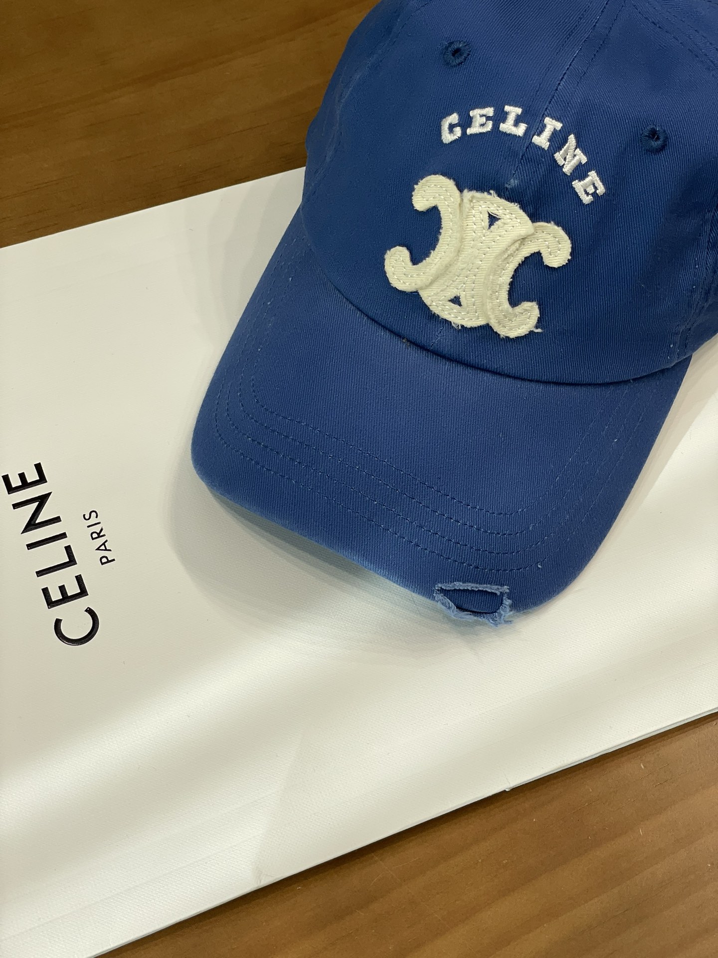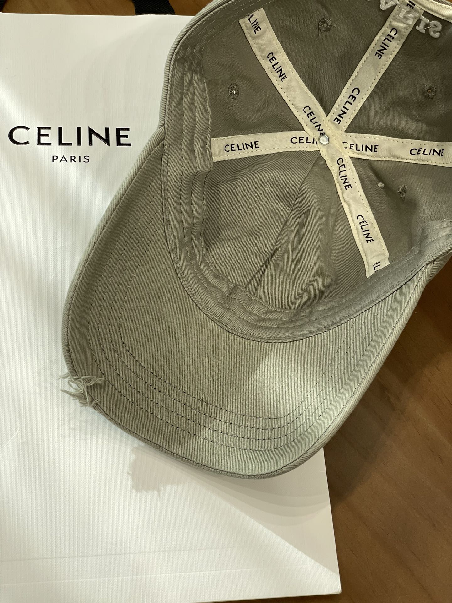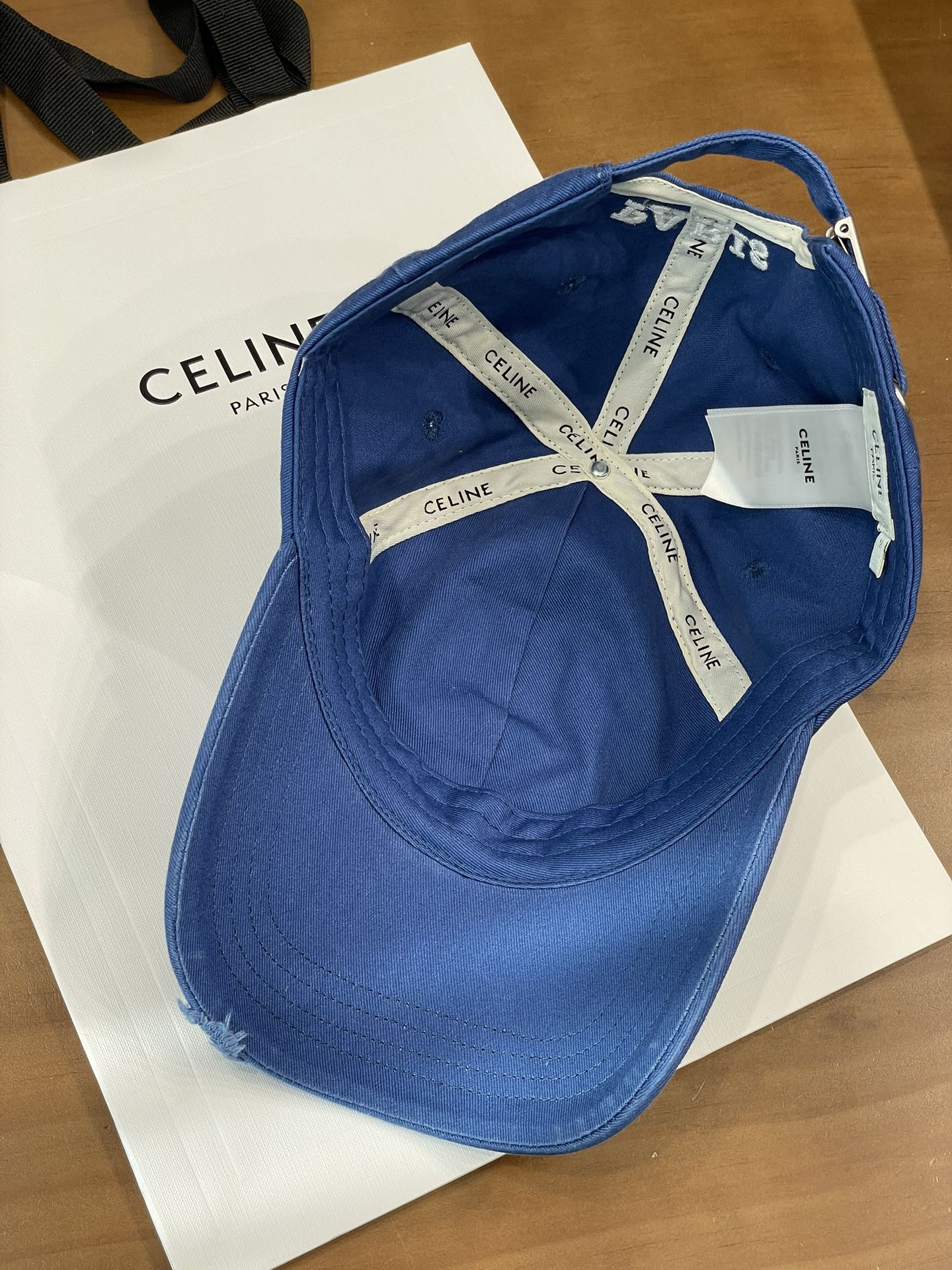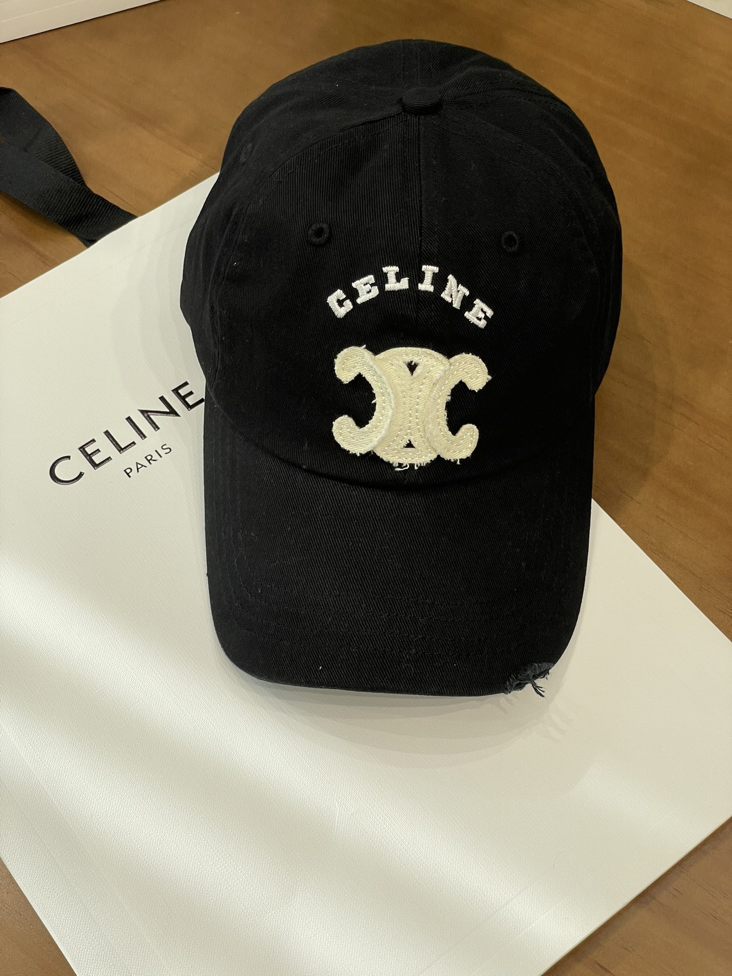 Celine棒球帽 | 经典与潮流的完美融合 配双盒定制包装 (无手提袋) Celine新款棒球帽 蓝色的活力、黑色的酷帅、米色的温柔、灰色的质感 ,每个颜色都超绝,适配各种穿搭风格。 标志性的Celine logo刺绣精致立体,彰显品牌格调,帽檐处微微的破洞设计,增添了不羁的潮流感,复古与时尚并存。帽型挺括,修饰脸型效果一流,戴上秒变小脸,还能营造出头包脸的氛围感。 不管是搭配简约T恤和牛仔裤,打造随性街头风;还是配上连衣裙突显优雅气质,这几款Celine棒球帽都能完美适配,成为造型的点睛之笔。日常出街、旅游拍照,有它们在,随手一拍都是时尚大片📸。