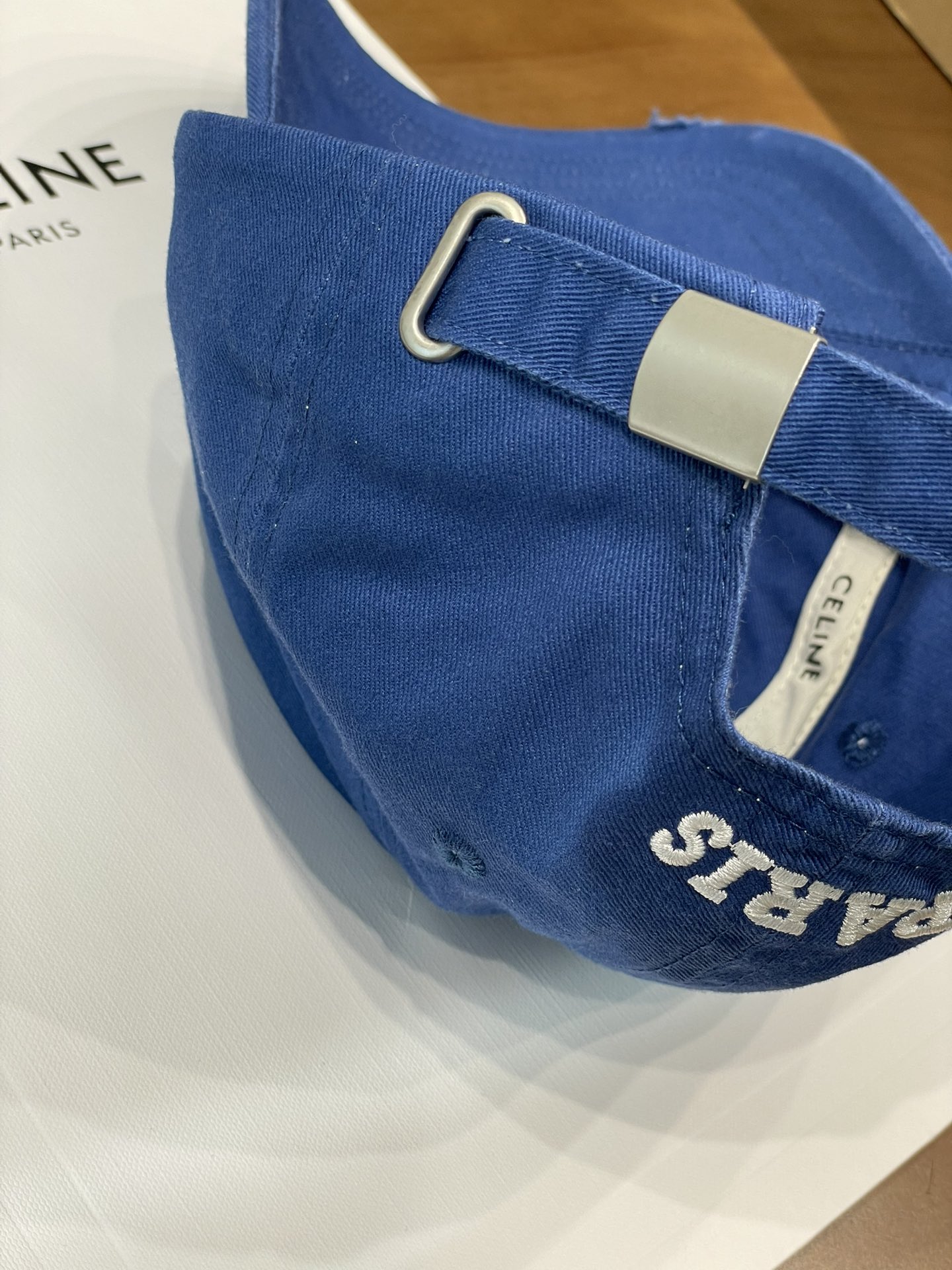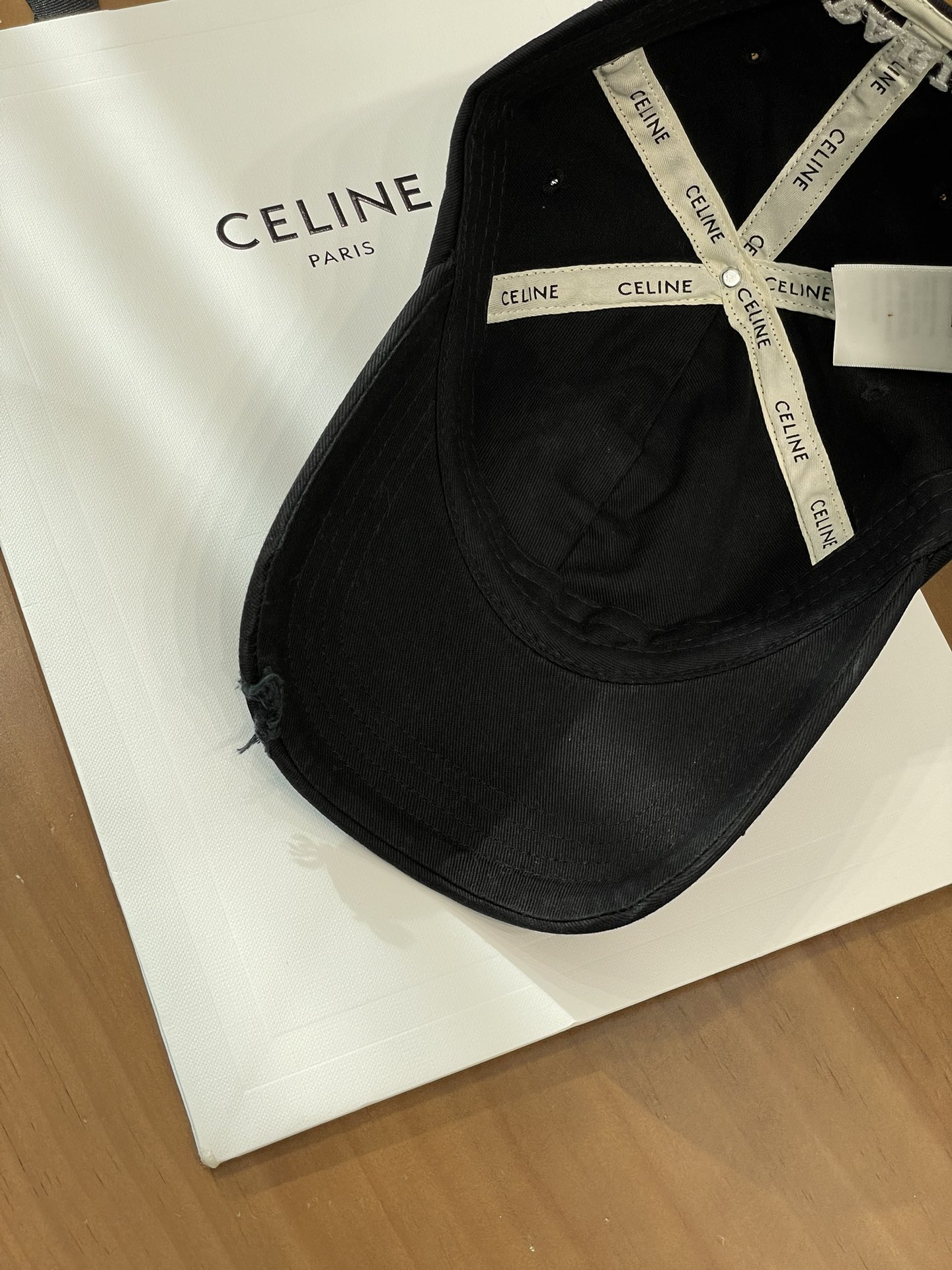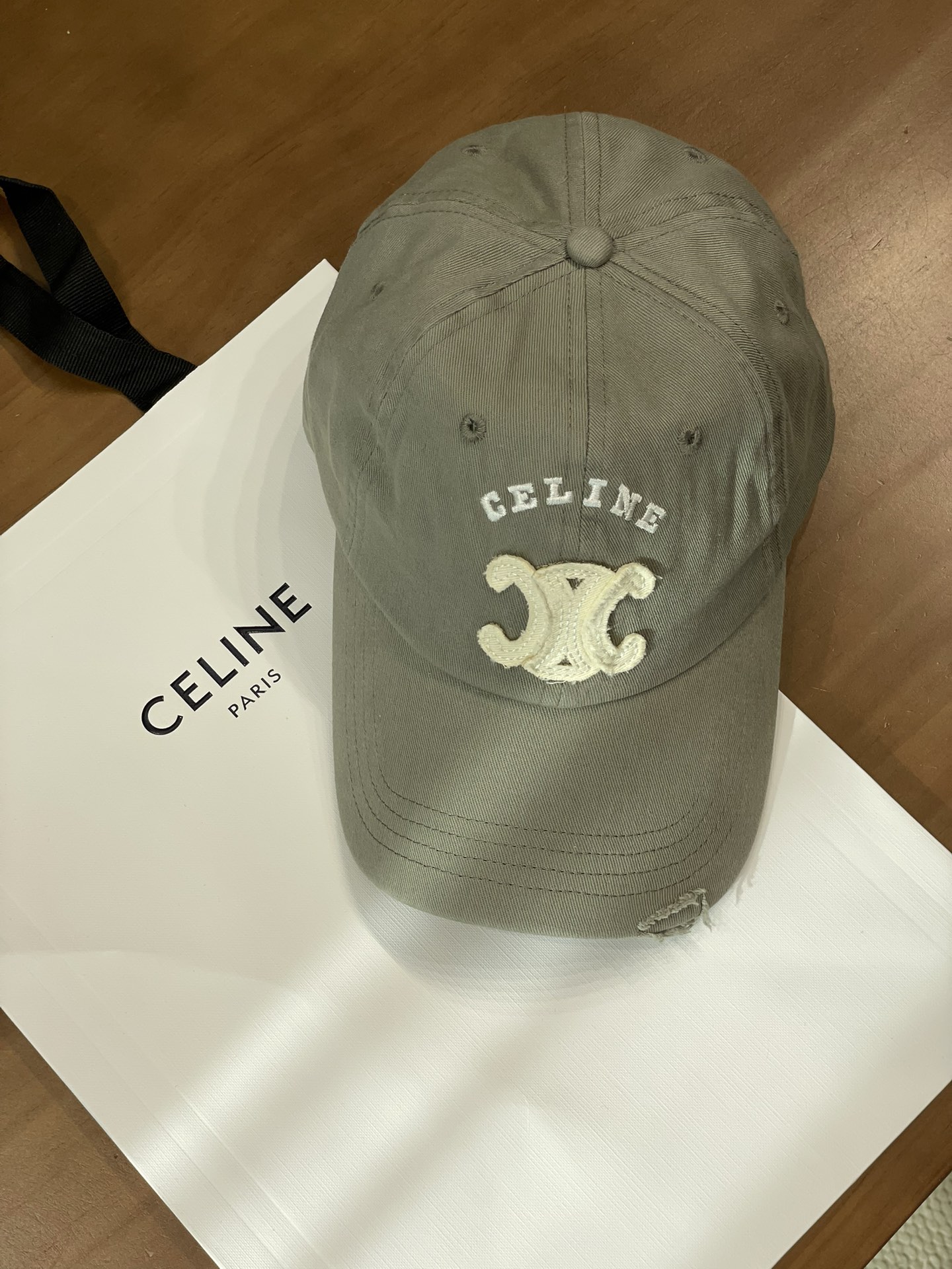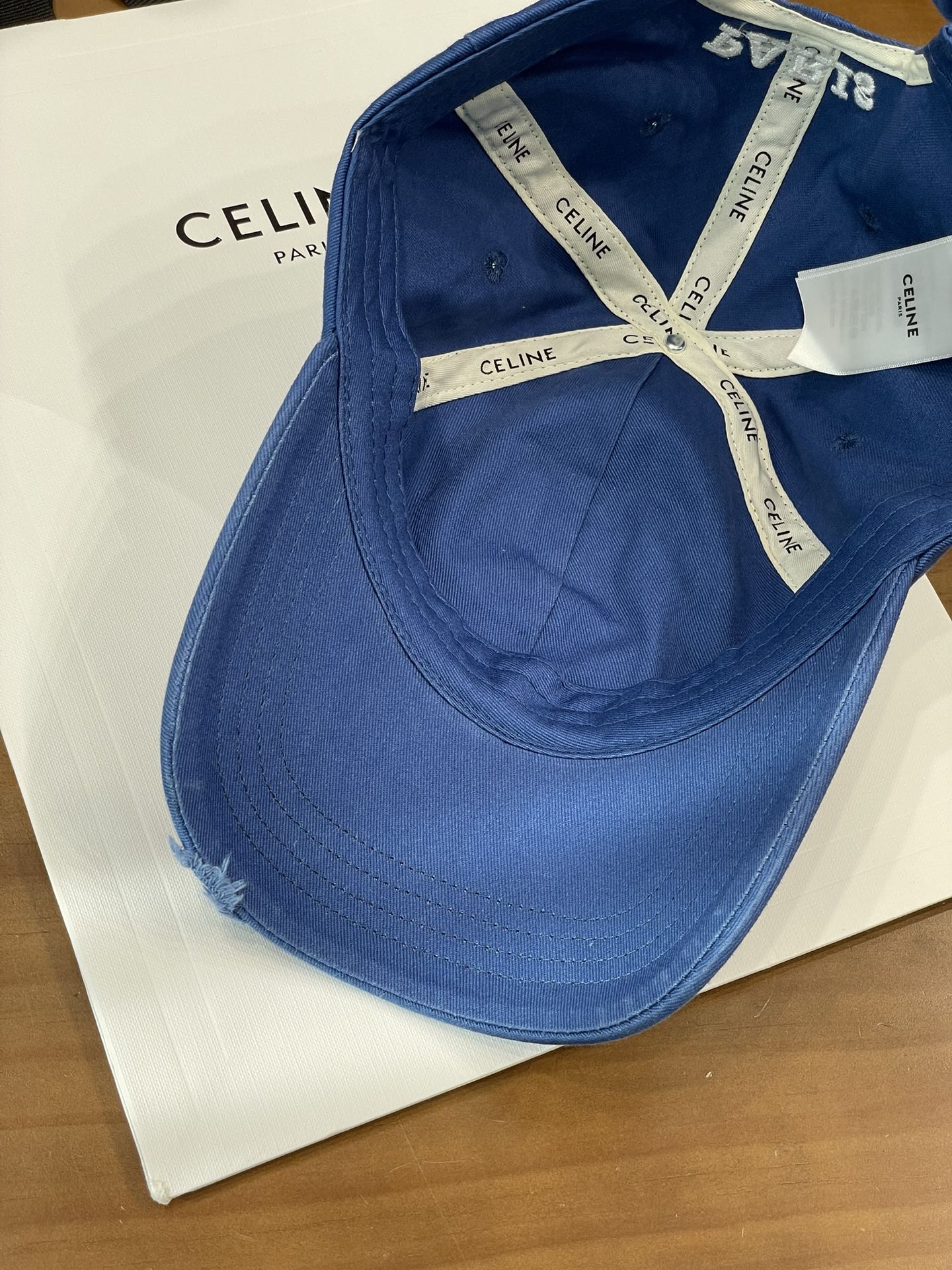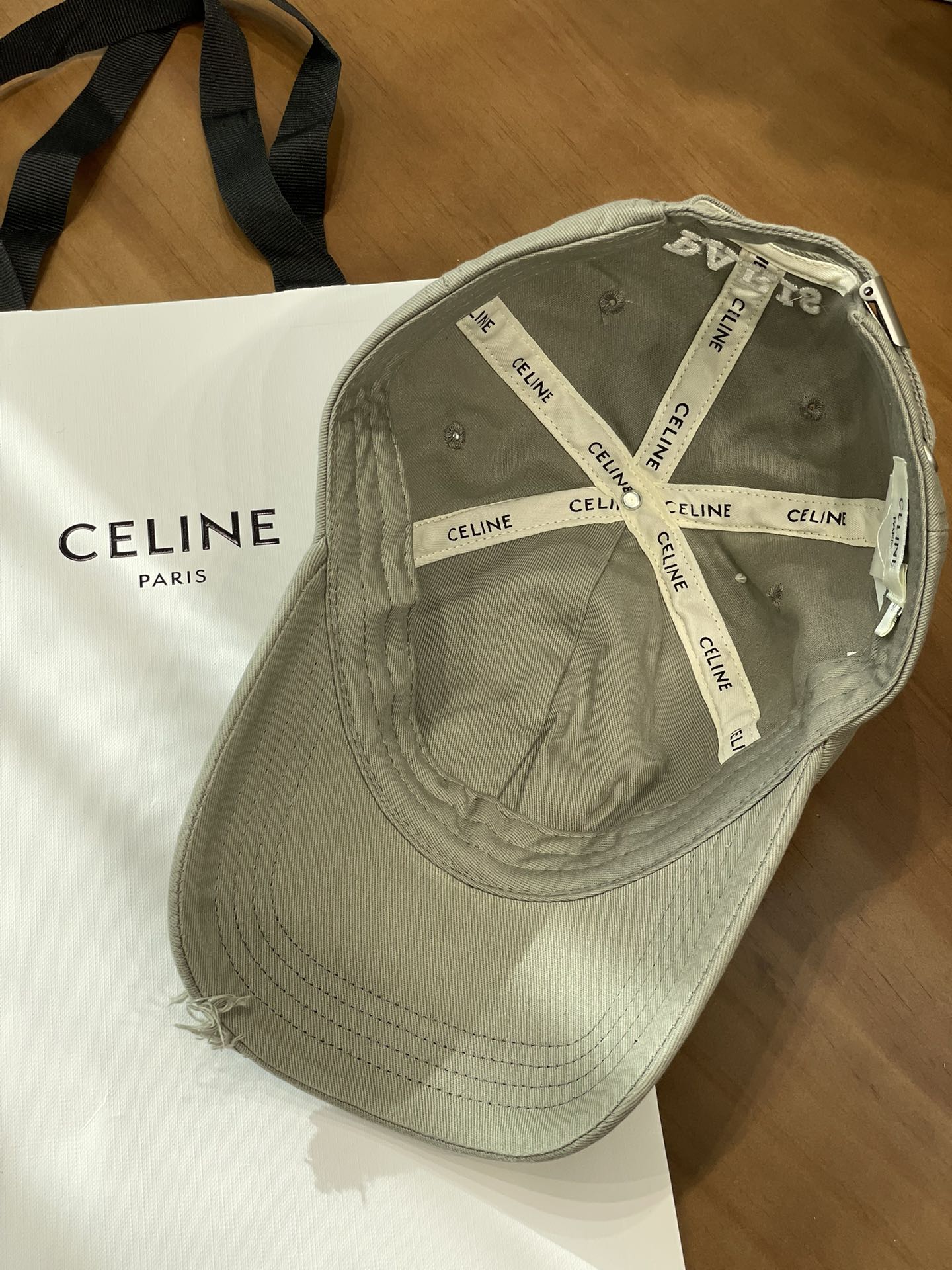 Celine棒球帽 | 经典与潮流的完美融合 配双盒定制包装 (无手提袋) Celine新款棒球帽 蓝色的活力、黑色的酷帅、米色的温柔、灰色的质感 ,每个颜色都超绝,适配各种穿搭风格。 标志性的Celine logo刺绣精致立体,彰显品牌格调,帽檐处微微的破洞设计,增添了不羁的潮流感,复古与时尚并存。帽型挺括,修饰脸型效果一流,戴上秒变小脸,还能营造出头包脸的氛围感。 不管是搭配简约T恤和牛仔裤,打造随性街头风;还是配上连衣裙突显优雅气质,这几款Celine棒球帽都能完美适配,成为造型的点睛之笔。日常出街、旅游拍照,有它们在,随手一拍都是时尚大片📸。