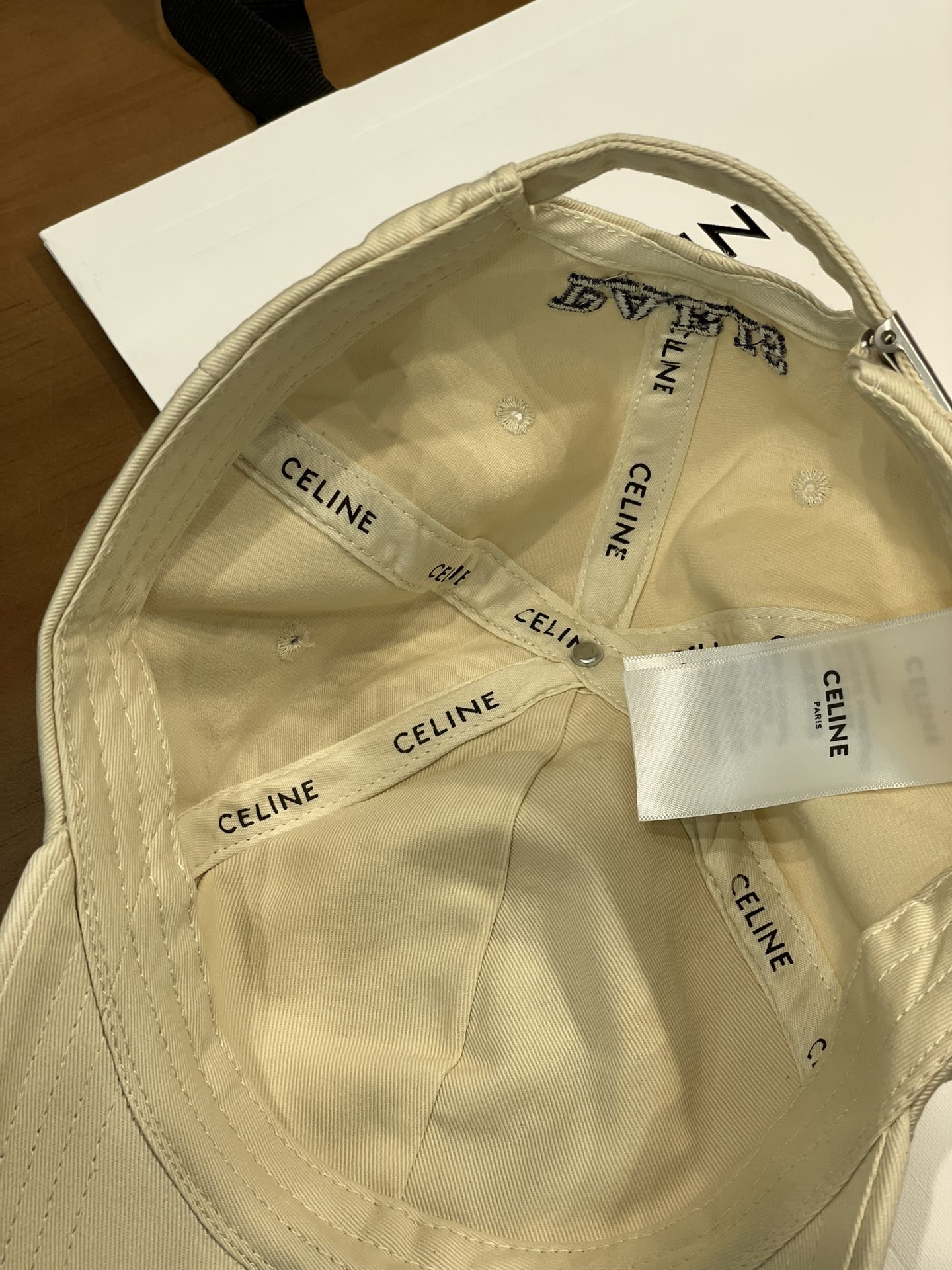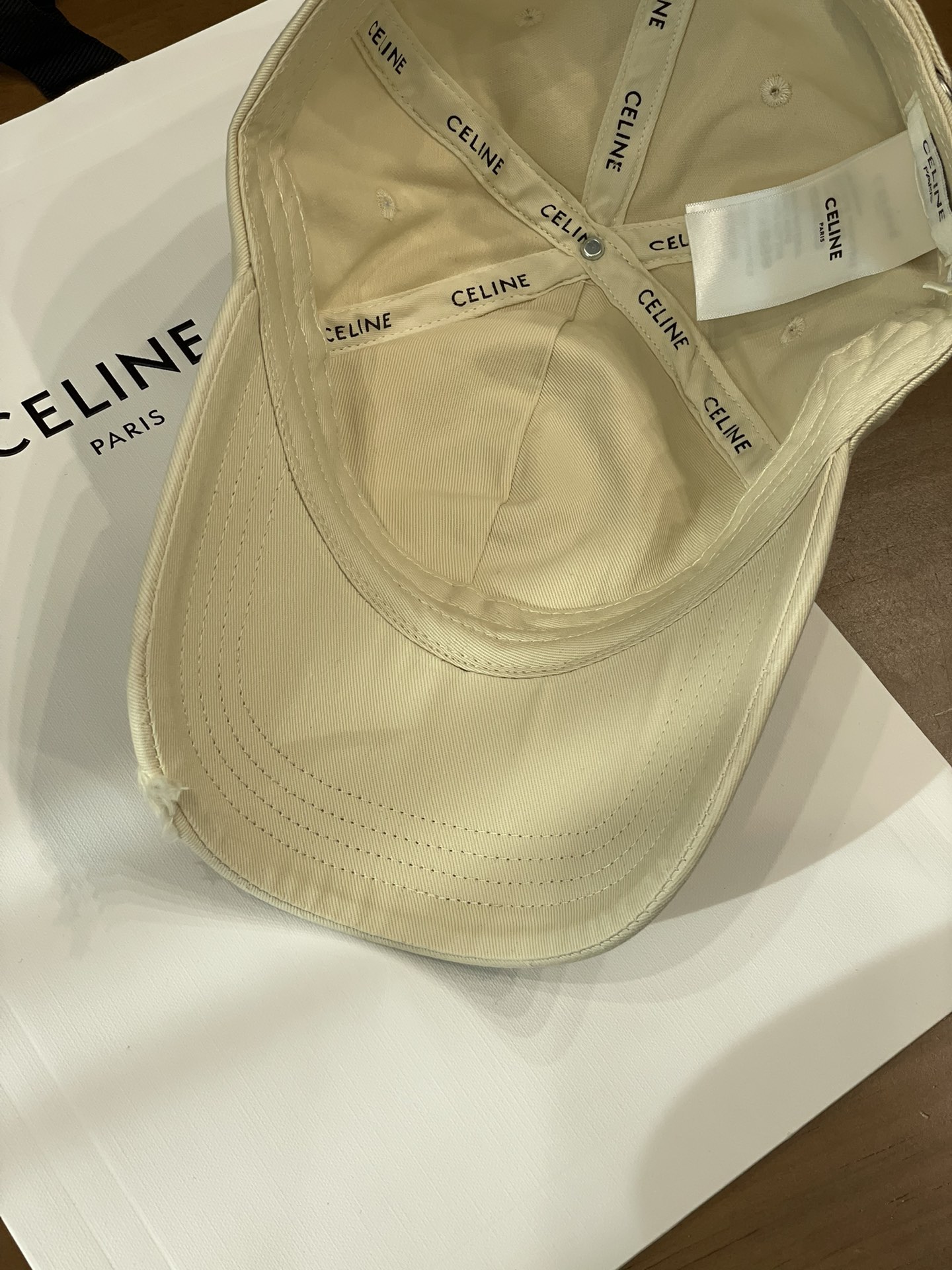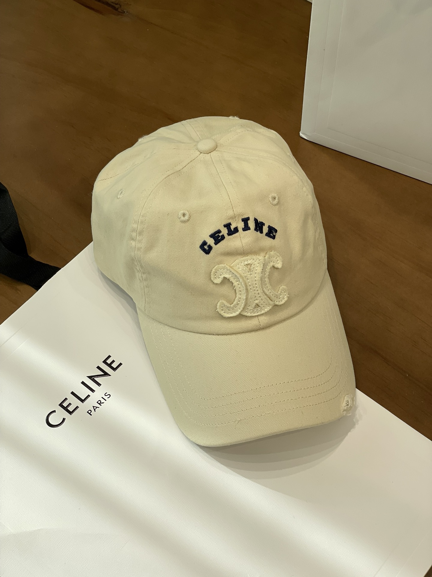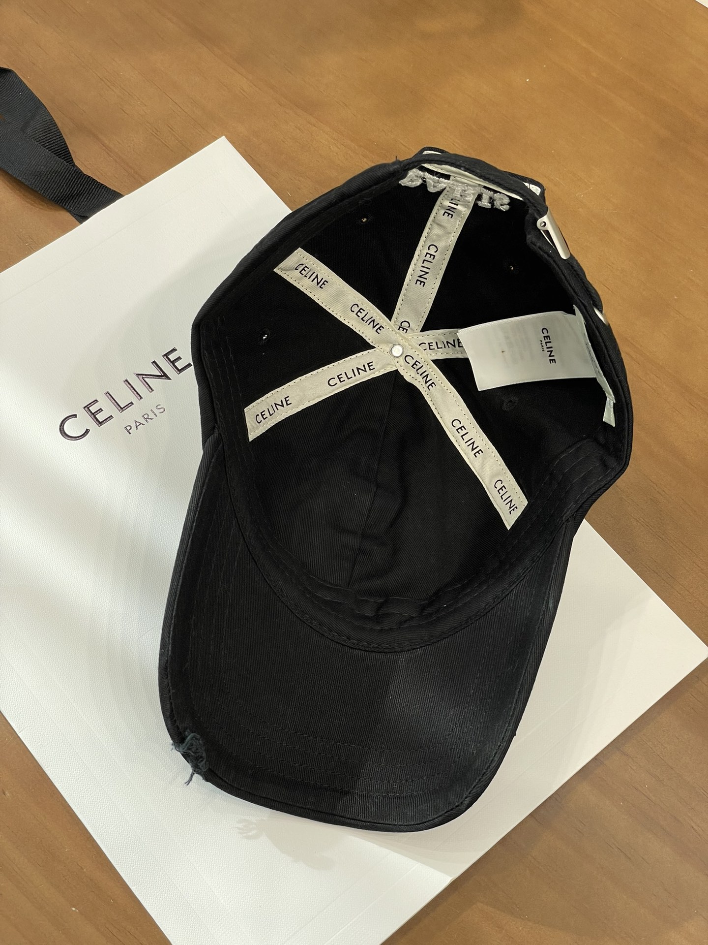 Celine棒球帽 | 经典与潮流的完美融合 配双盒定制包装 (无手提袋) Celine新款棒球帽 蓝色的活力、黑色的酷帅、米色的温柔、灰色的质感 ,每个颜色都超绝,适配各种穿搭风格。 标志性的Celine logo刺绣精致立体,彰显品牌格调,帽檐处微微的破洞设计,增添了不羁的潮流感,复古与时尚并存。帽型挺括,修饰脸型效果一流,戴上秒变小脸,还能营造出头包脸的氛围感。 不管是搭配简约T恤和牛仔裤,打造随性街头风;还是配上连衣裙突显优雅气质,这几款Celine棒球帽都能完美适配,成为造型的点睛之笔。日常出街、旅游拍照,有它们在,随手一拍都是时尚大片📸。