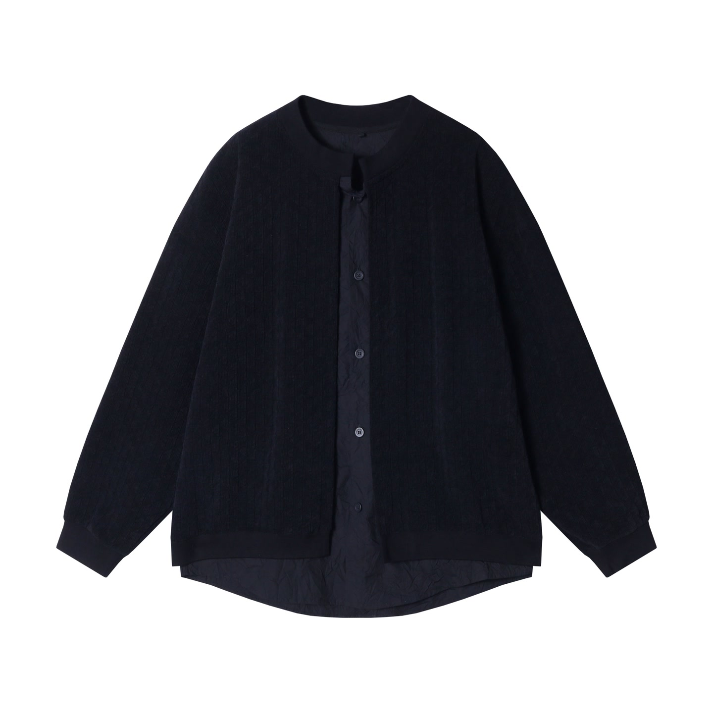 55165新款格纹提花拼接假两件复古简约国潮宽松百搭长袖痞帅休闲