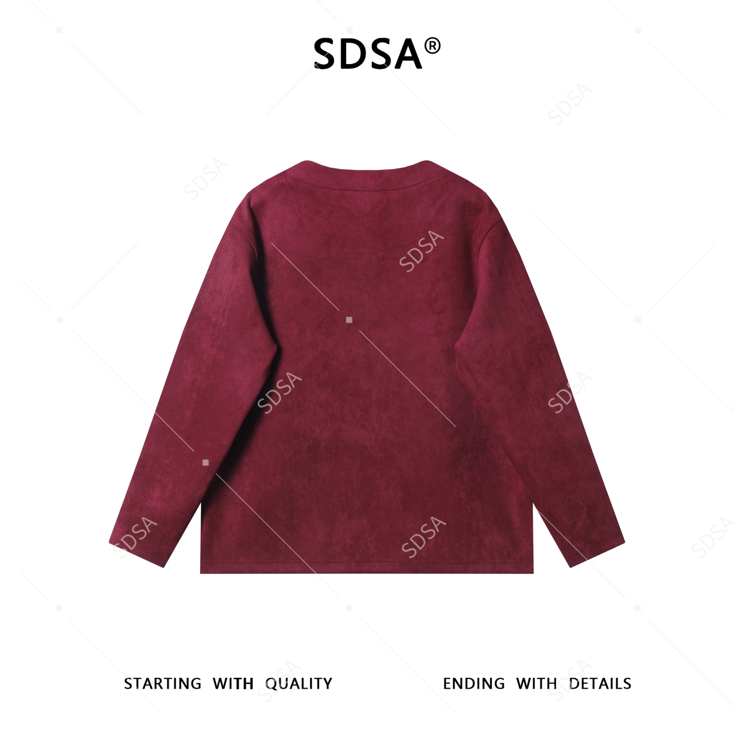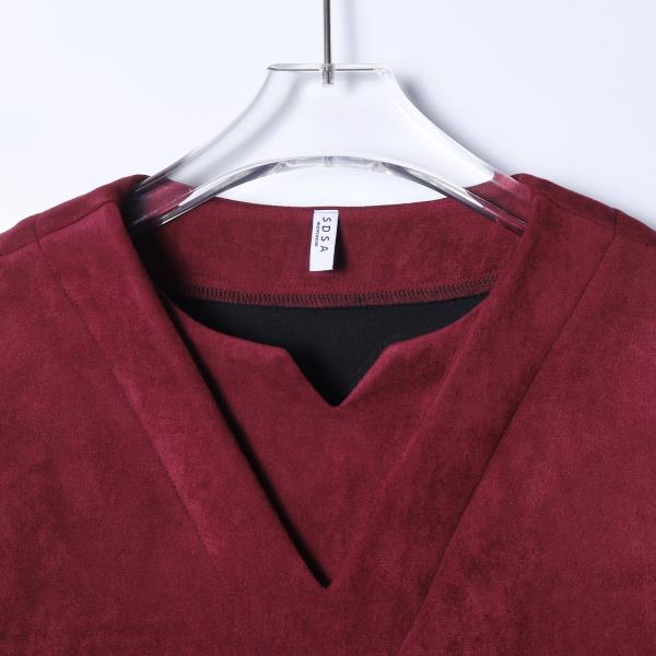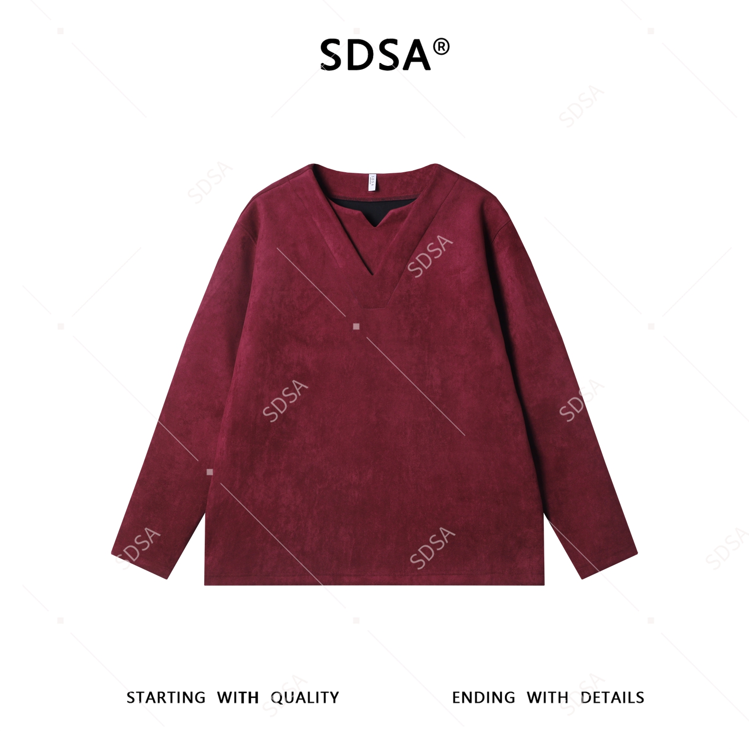26T10SDSA秋冬新款痞帅男装简约植绒纯色拼接小V领卫衣百搭宽松上衣