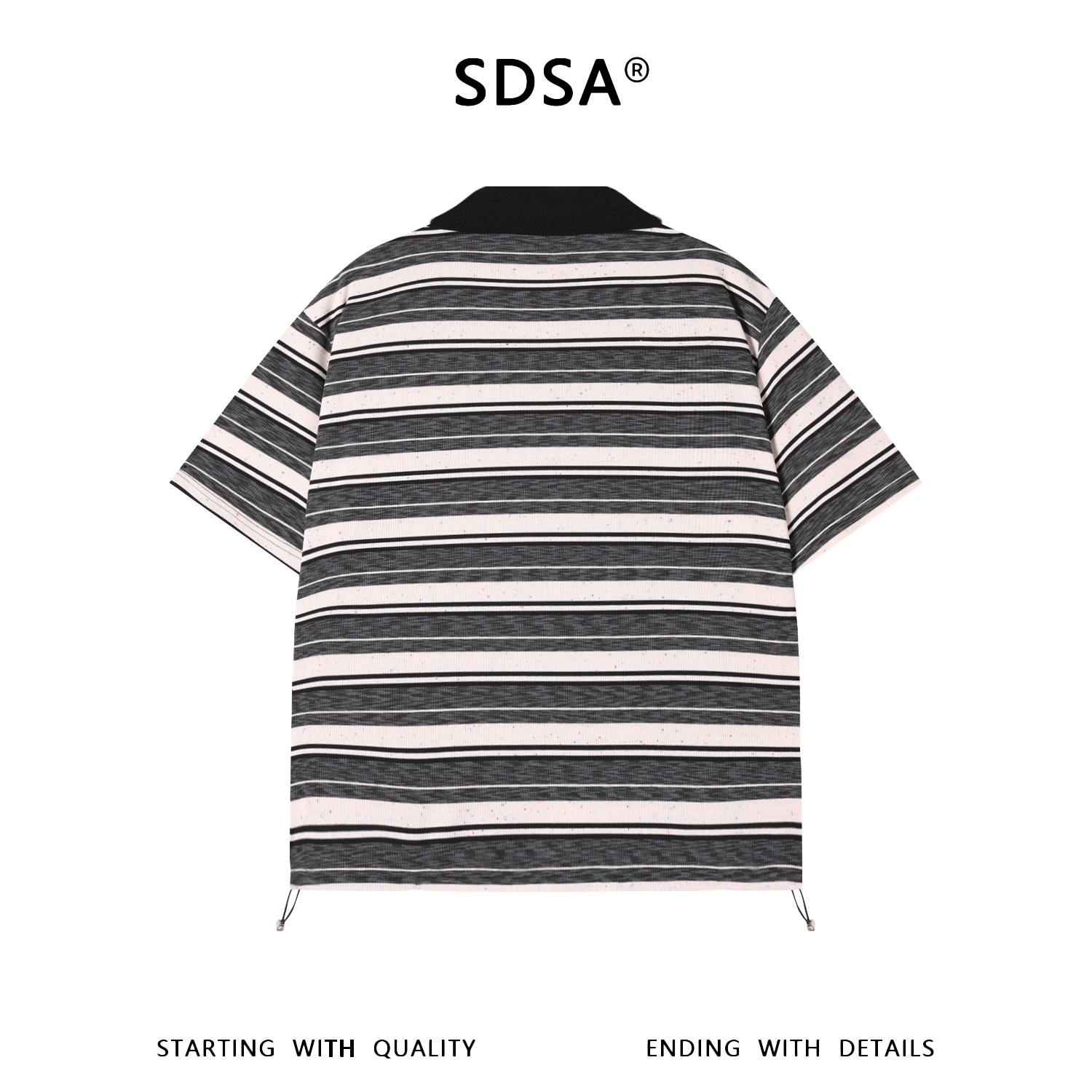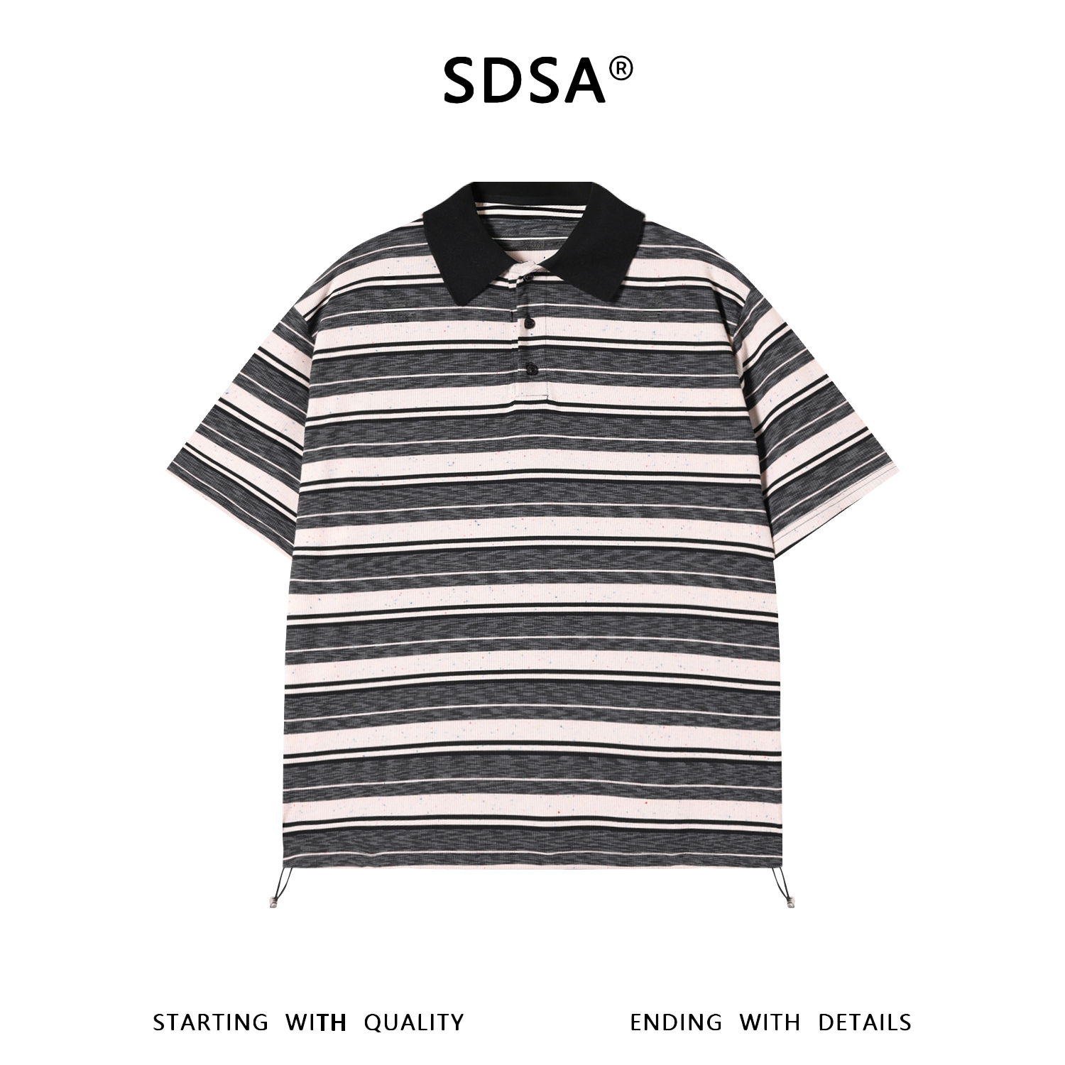 SDSA男装2026新款轻奢复古彩点条纹Polo衫撞色领抽绳下摆休闲短袖