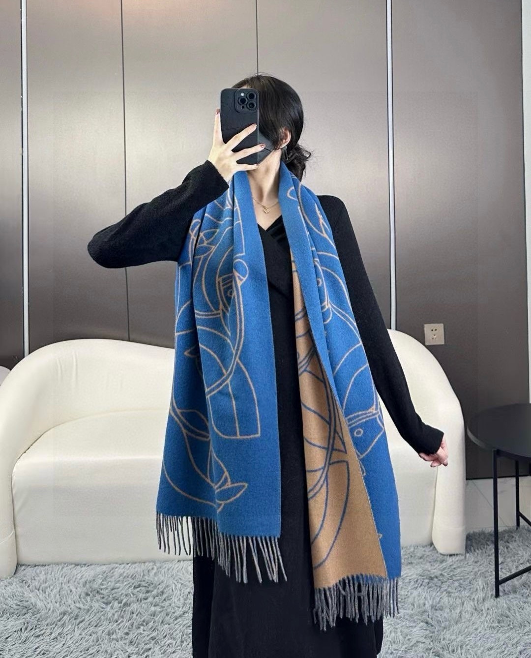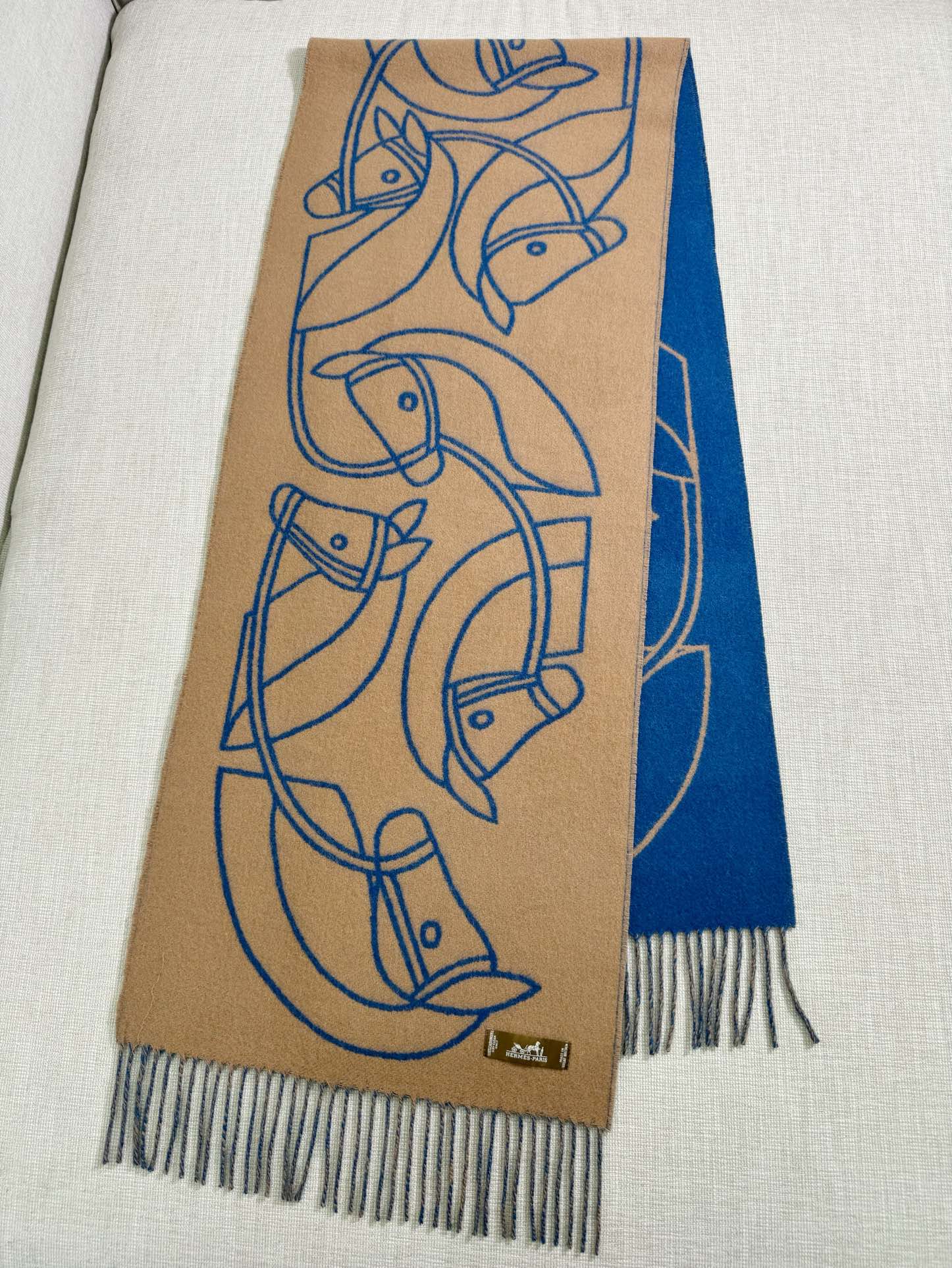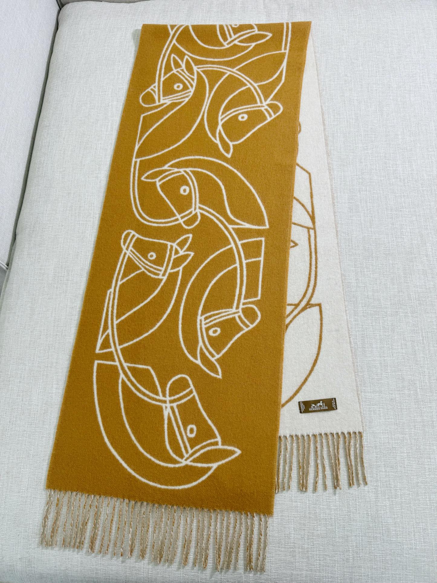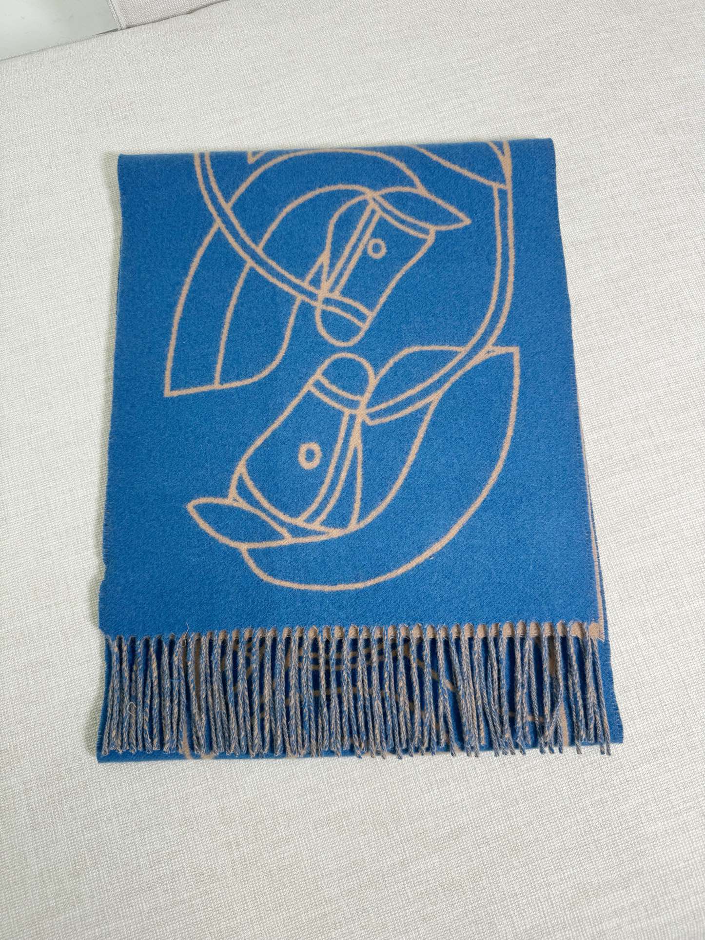 围巾双面配色,深灰面绅士冷艳+白色面高级奶颜 ,Geoff McFetridge设计的马术交织采用细腻的撞色提花编织,柔美简约的线条更具艺术感!保暖厚实纯羊绒大尺寸,超实用的中性款 男女适配