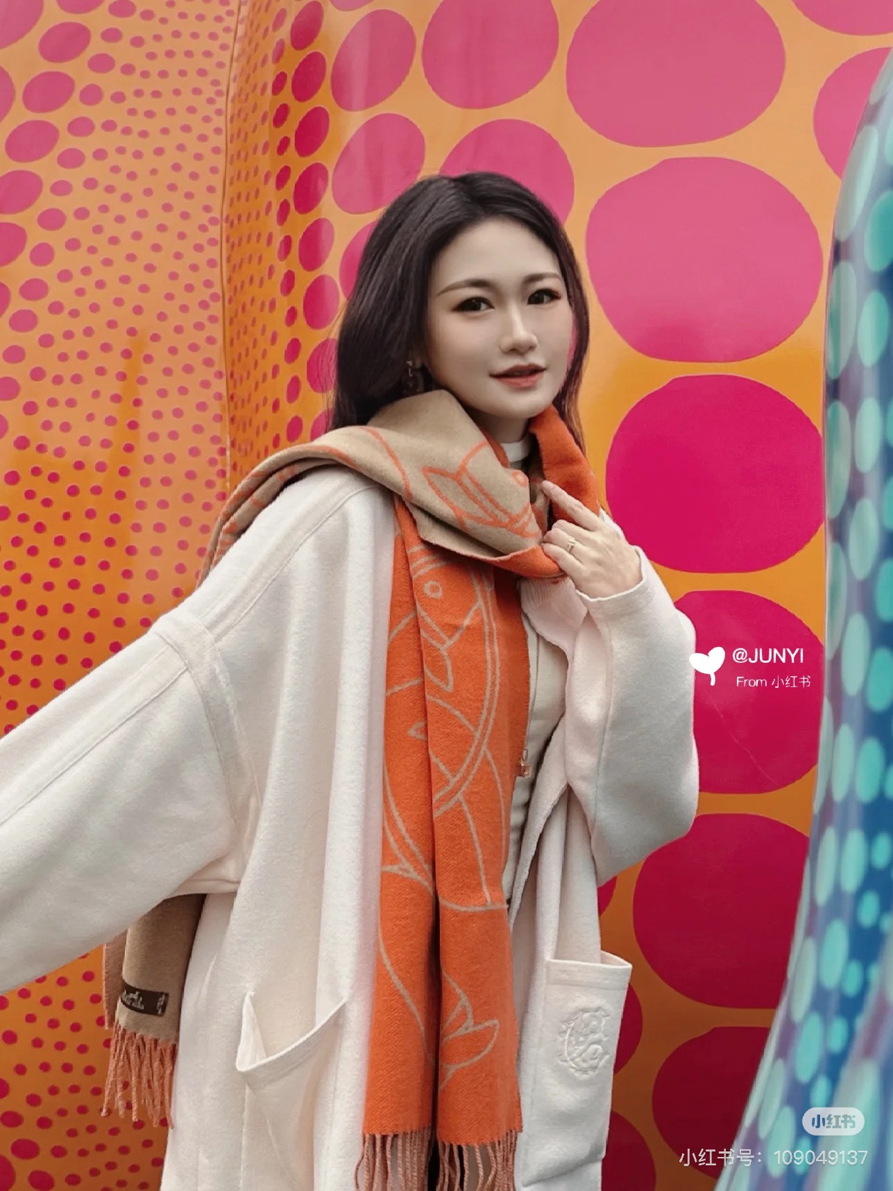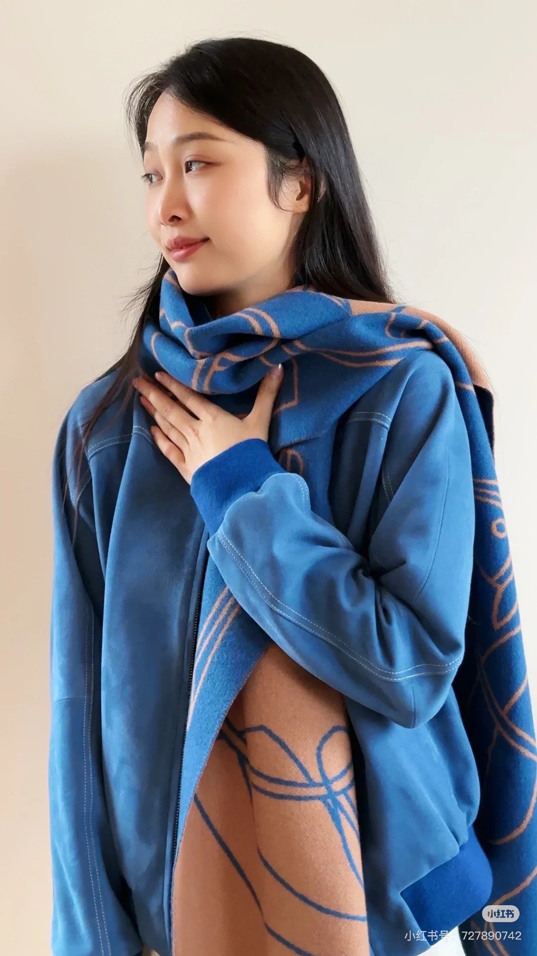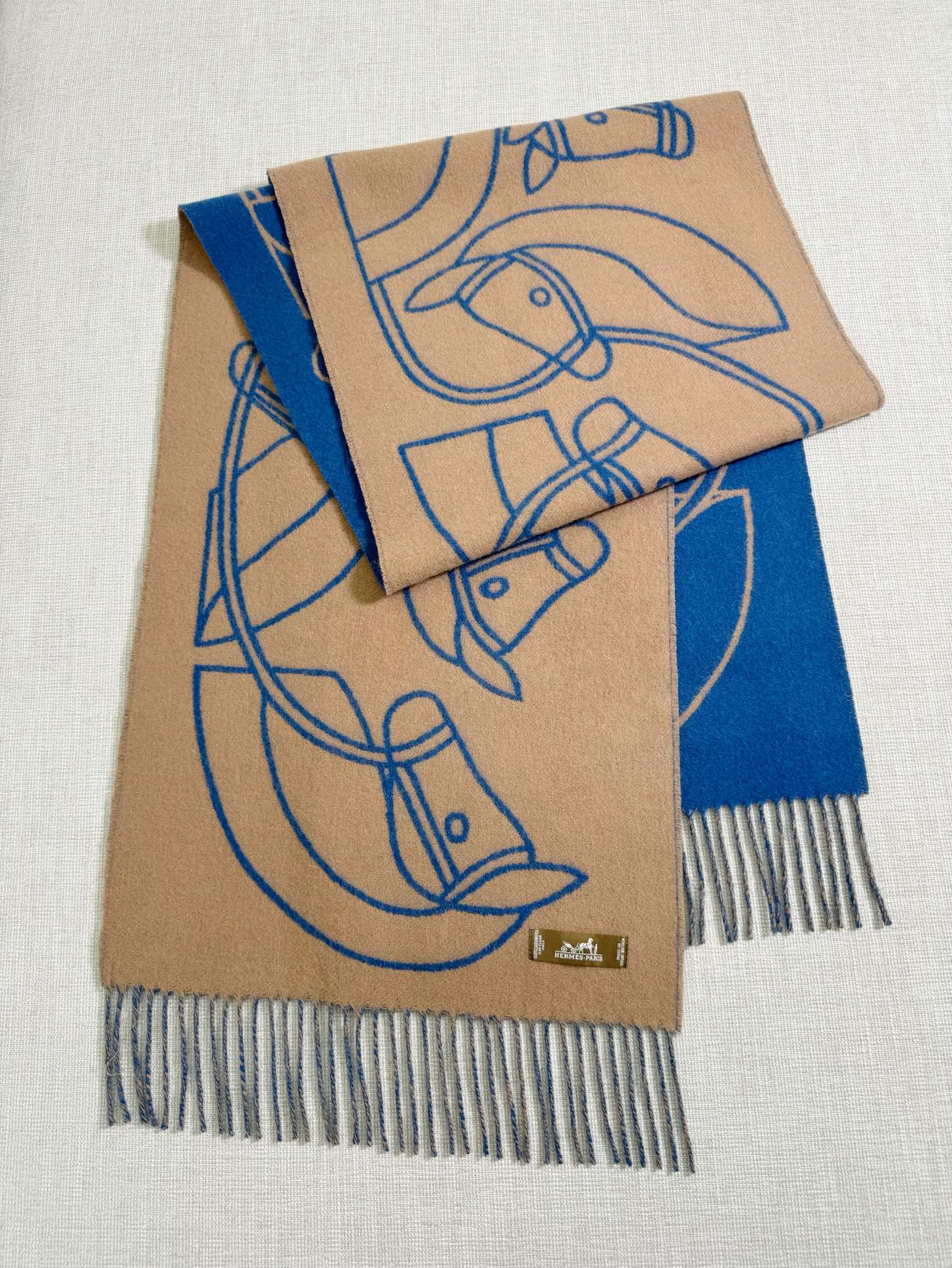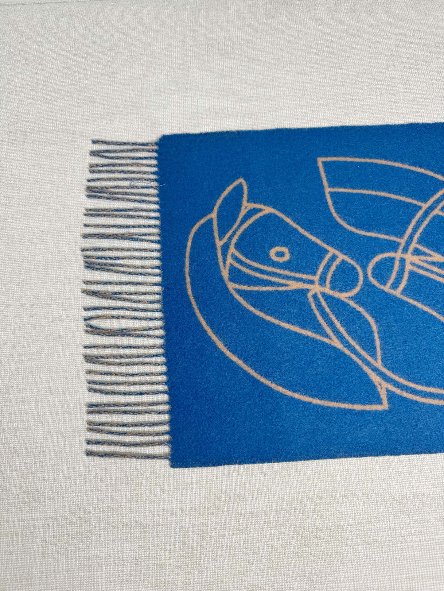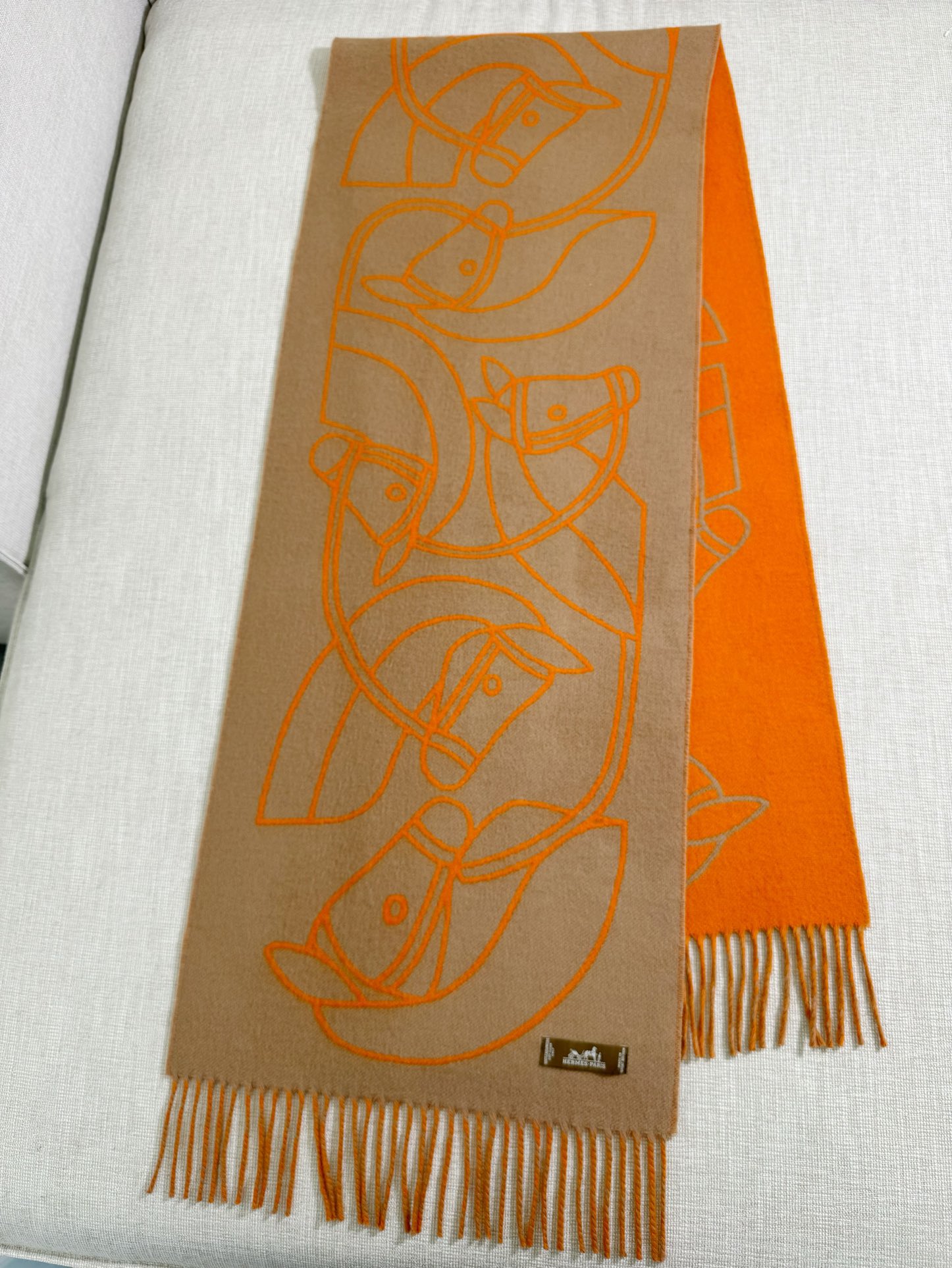 围巾双面配色,深灰面绅士冷艳+白色面高级奶颜 ,Geoff McFetridge设计的马术交织采用细腻的撞色提花编织,柔美简约的线条更具艺术感!保暖厚实纯羊绒大尺寸,超实用的中性款 男女适配