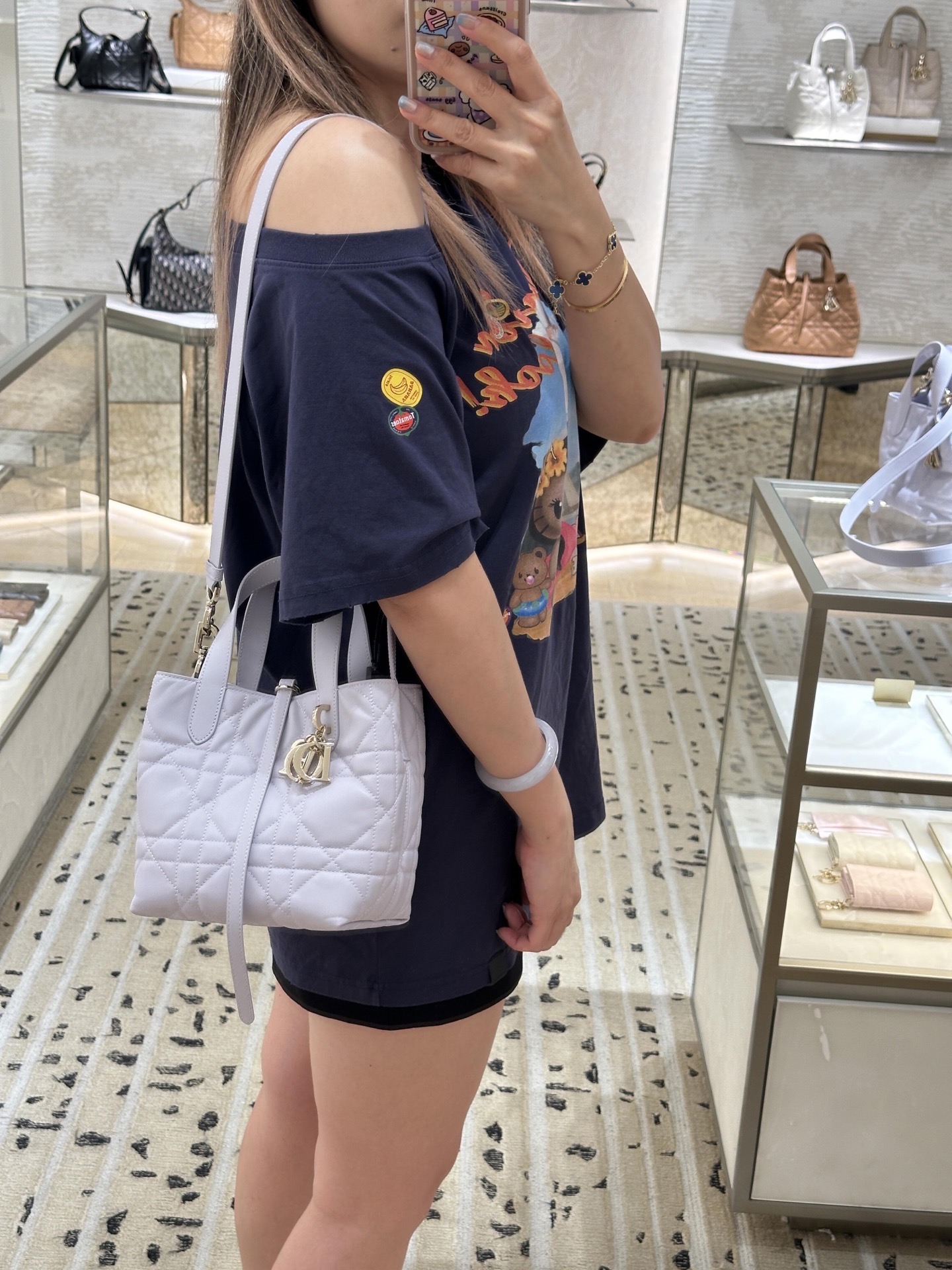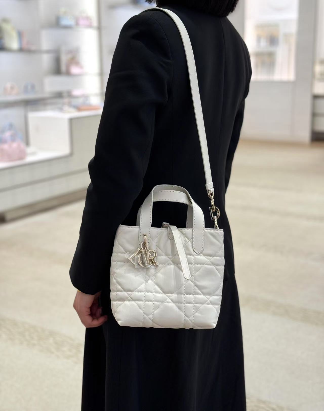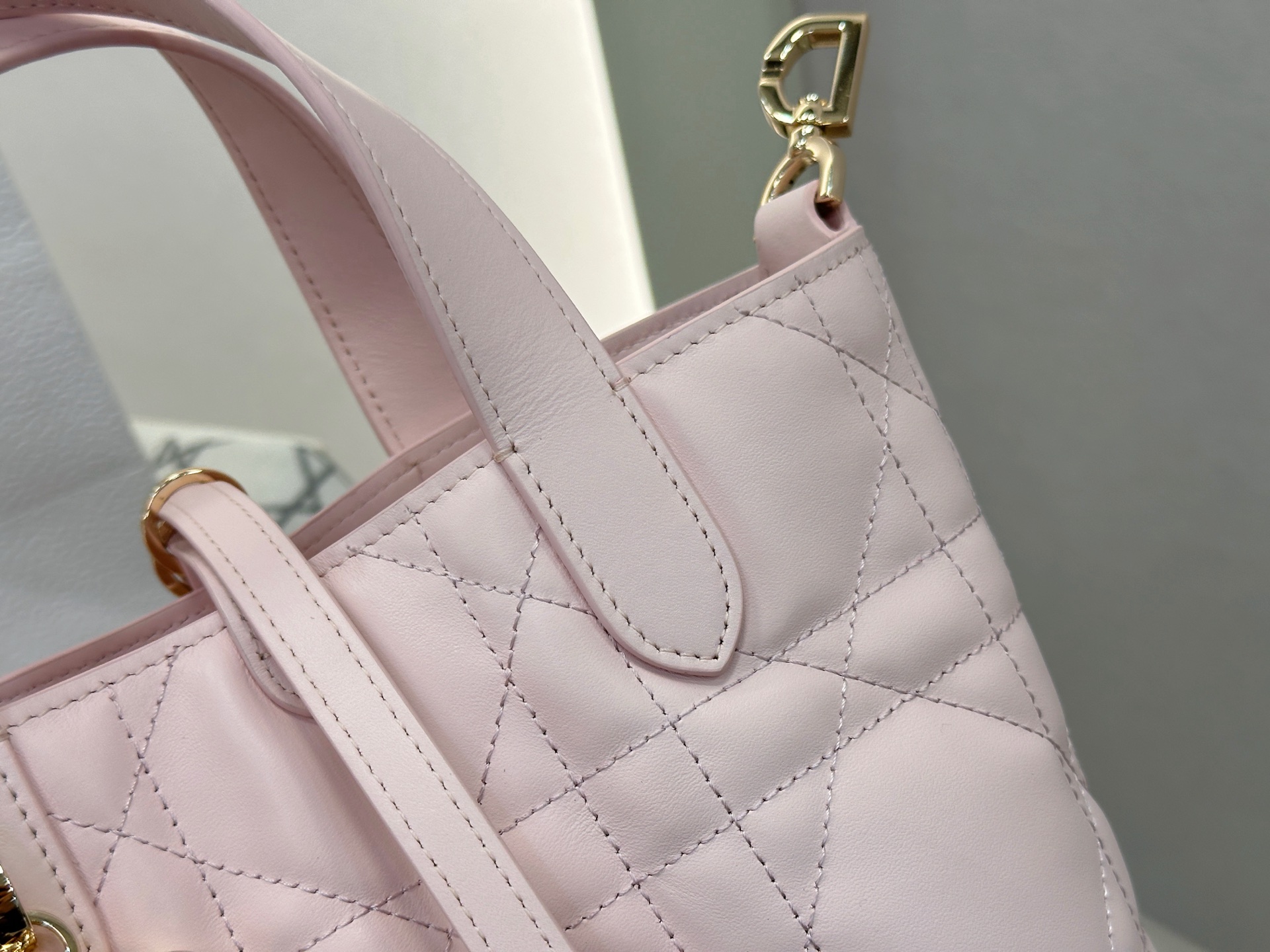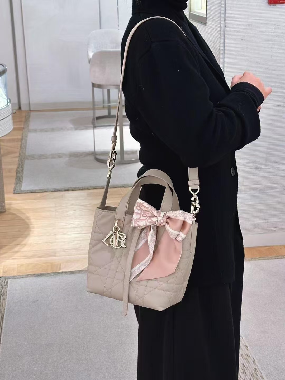 这款 Dior Toujours竖版手袋是二零二五早春成衣系列新品,时尚实用,别具一格。采用杏色牛皮革精心制作,饰以超大藤格纹缉面线,宽敞的内部隔层可收纳各种日常用品。设有纤细皮革系带开合,可安全收纳各种物品,另有CD Lock 字母D旋钮式扣环,可调节两侧,提升格调。小号款式,顶部皮革手柄搭配可拆卸的皮革肩带,可手提、肩背或斜挎
