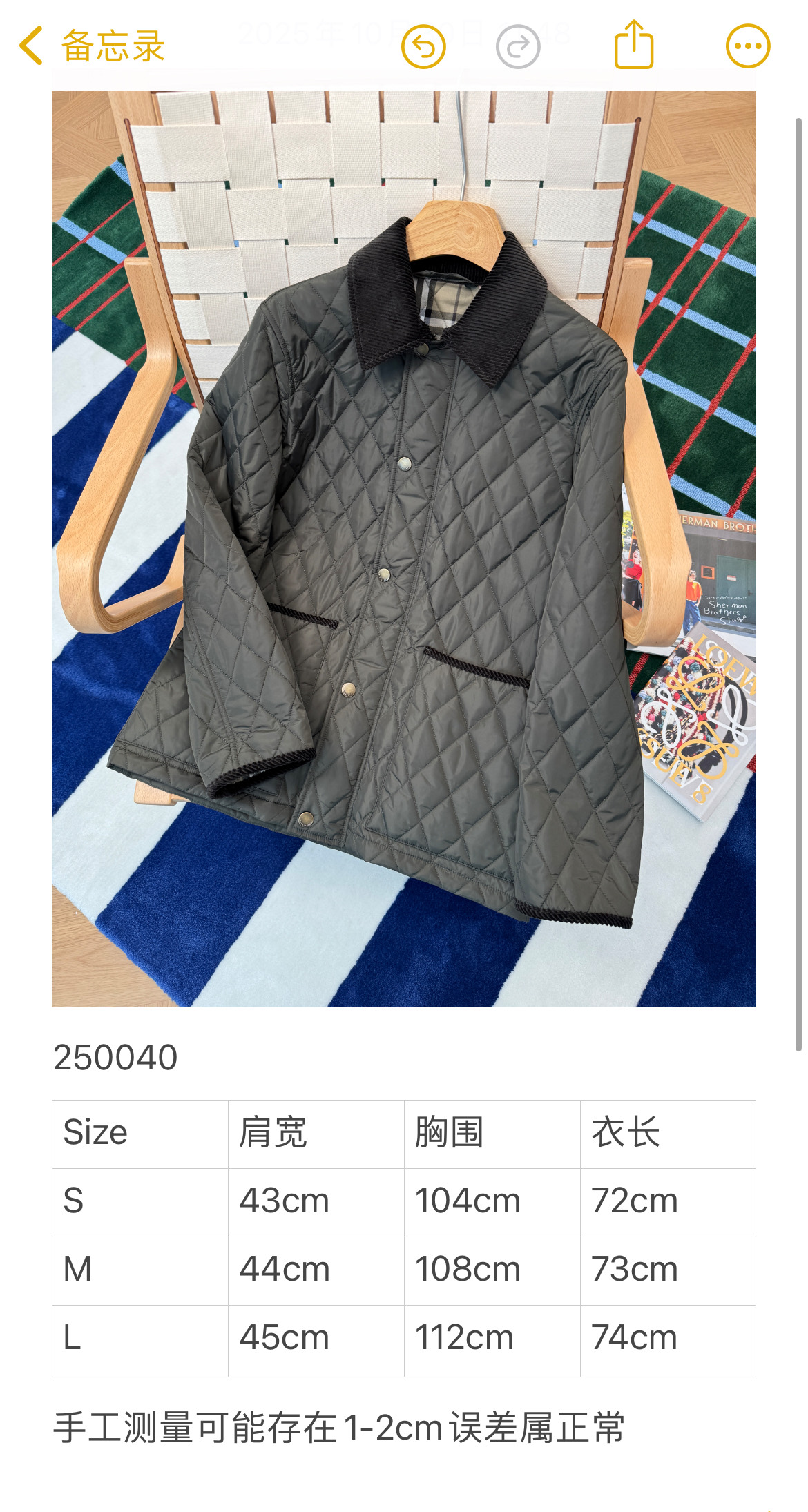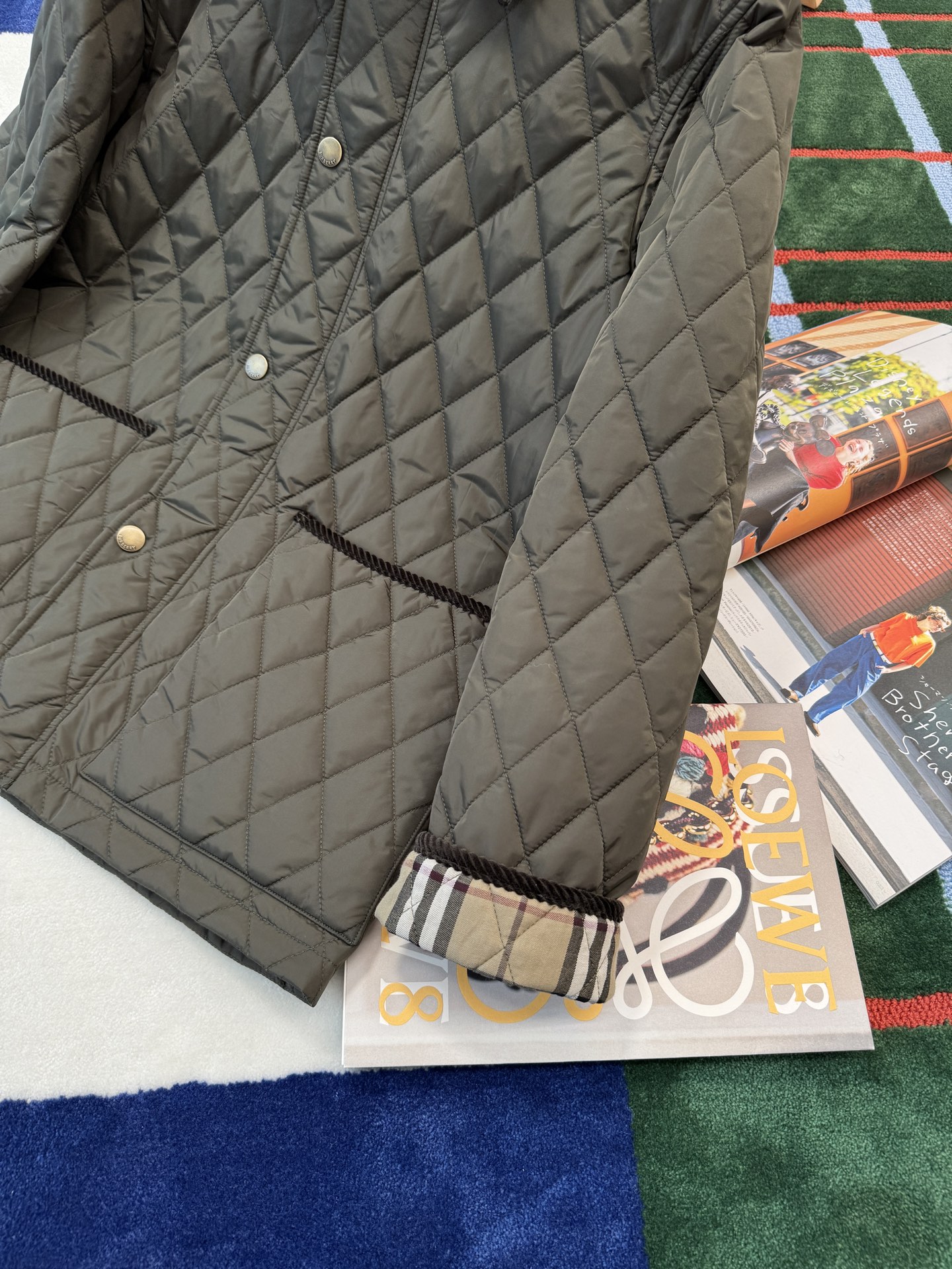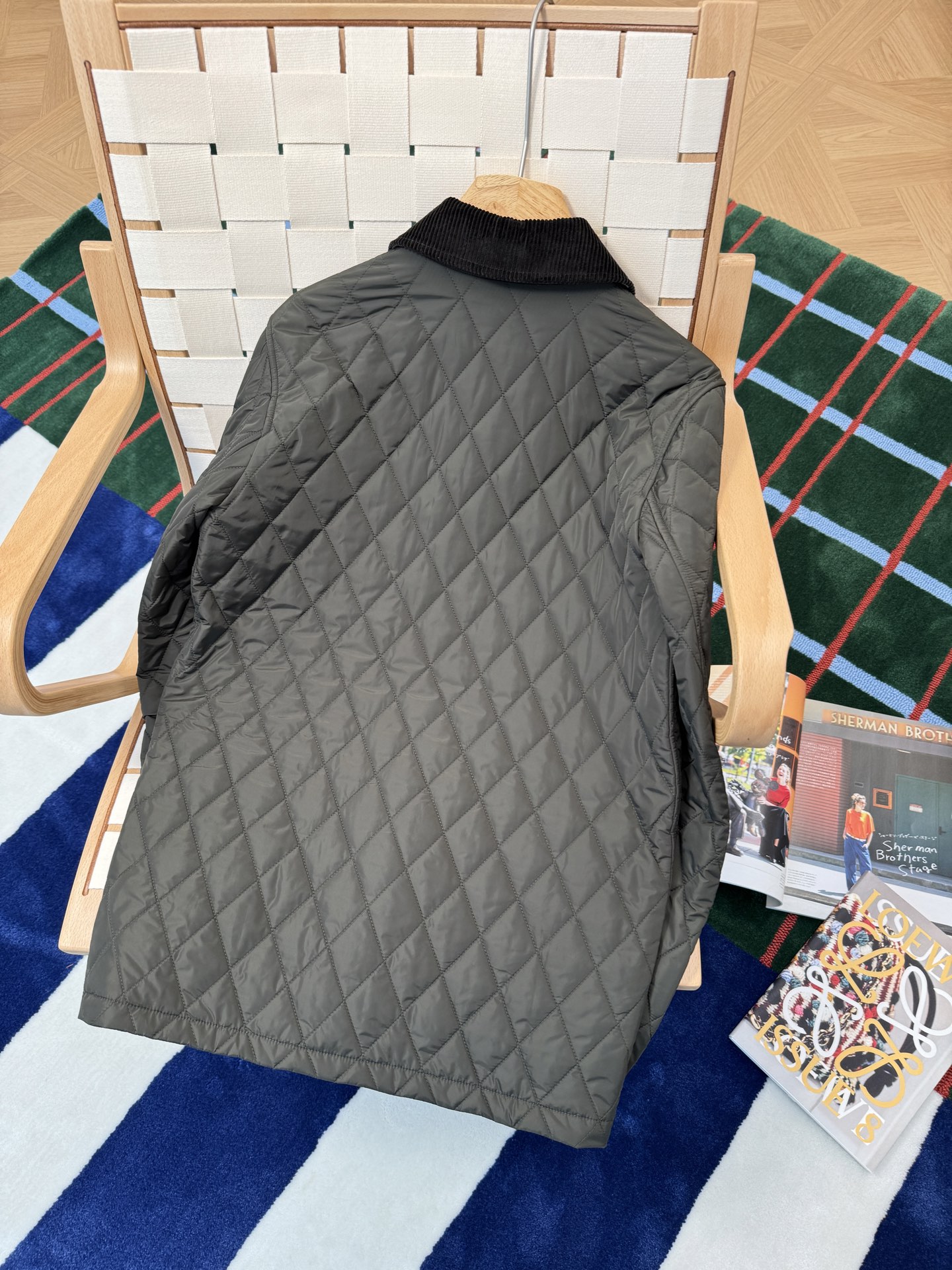 25年新款棉服〰️超级大爆款🔥内里搭配格纹设计,融入灯芯绒衣领和装饰☑️ 侧面点缀马术骑士徽标(EKD)饰牌🔜独具匠心🫶🏻增添了一份精致与细腻😉 尽显大气与优雅👍时髦秋冬利器🤩 时尚与复古完美融合,让你在这个秋冬温暖又迷人 🔝在追求时尚的同时,也从未忘记对品质的执着‼️整体简约舒适,大方得体😜 定制面料,舒适度满分💯每年秋冬衣橱必不可少的单品那一定是绗缝棉服🤩卡其/墨绿两个色,码数SML
