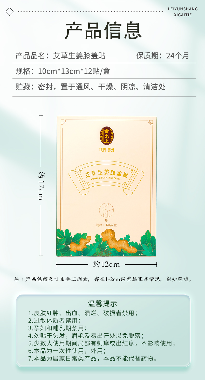 雷允上艾草生姜膝盖贴12贴/盒