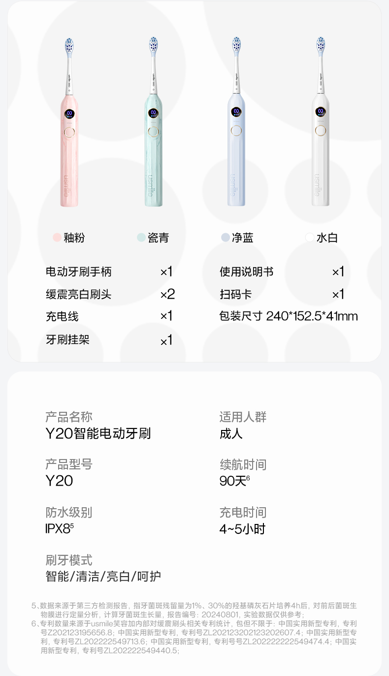 【绮】usmile笑容加声波震动电动牙刷 Y20