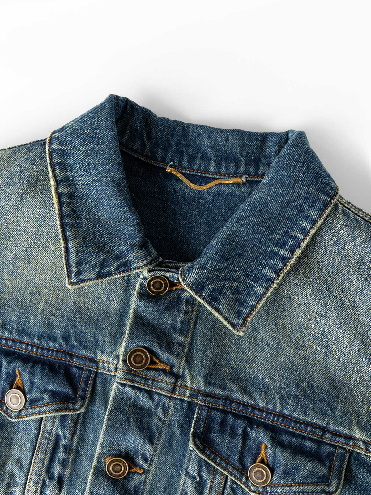 COCO ZONE ”罗兰牛仔“复古翻领单排扣牛仔外套休闲百搭上衣CC1C1555