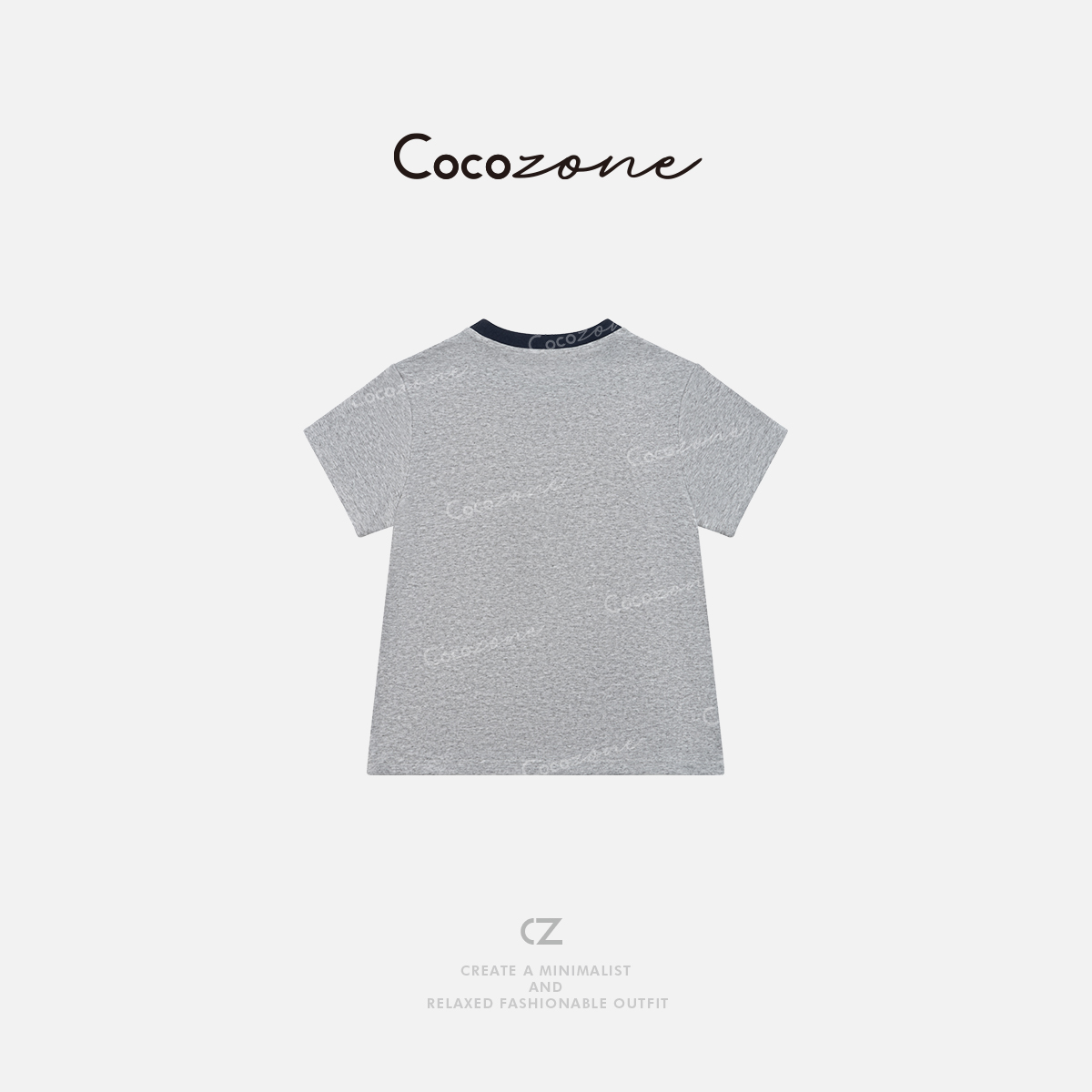 COCO ZONE 刘一一 经典撞色印花圆领修身显瘦女短T恤CD2A0832