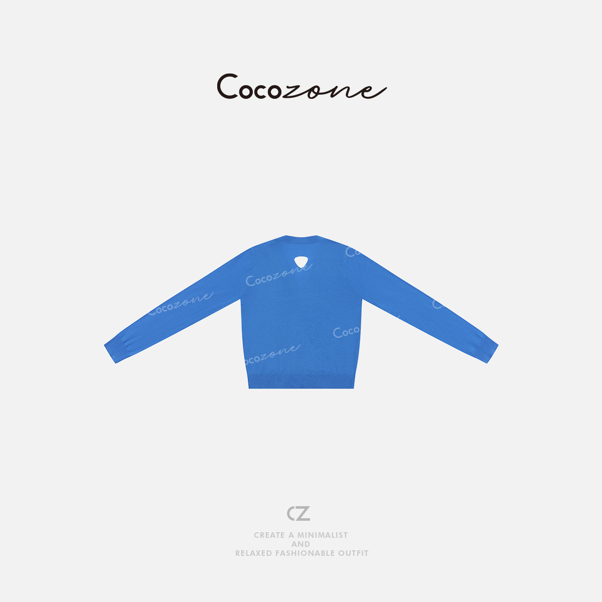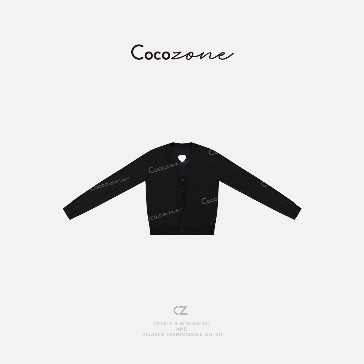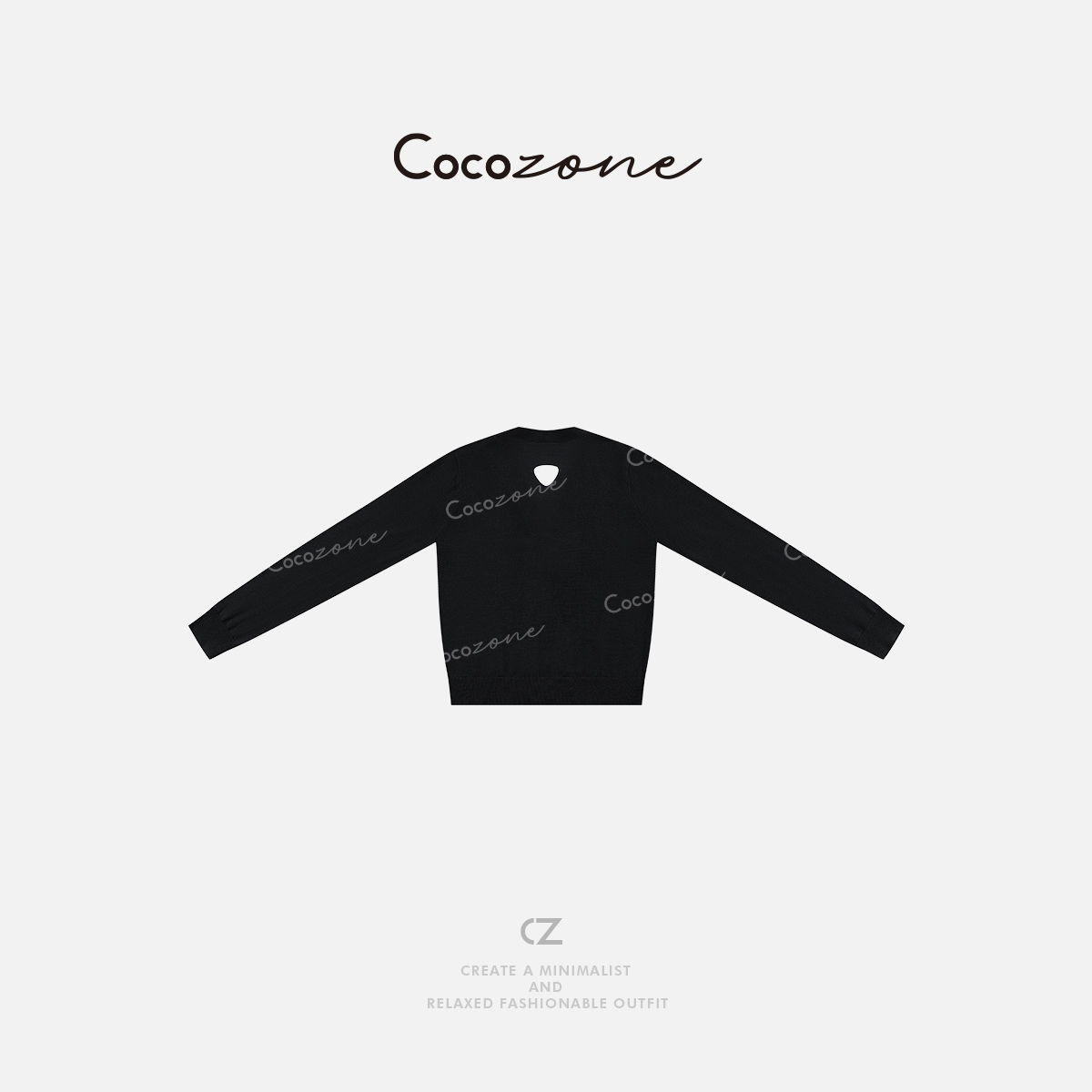 COCO ZONE 100绵羊毛设计感后幅镂空V领针织开衫CD1A0155
