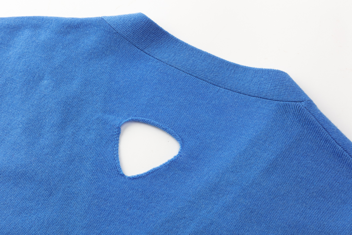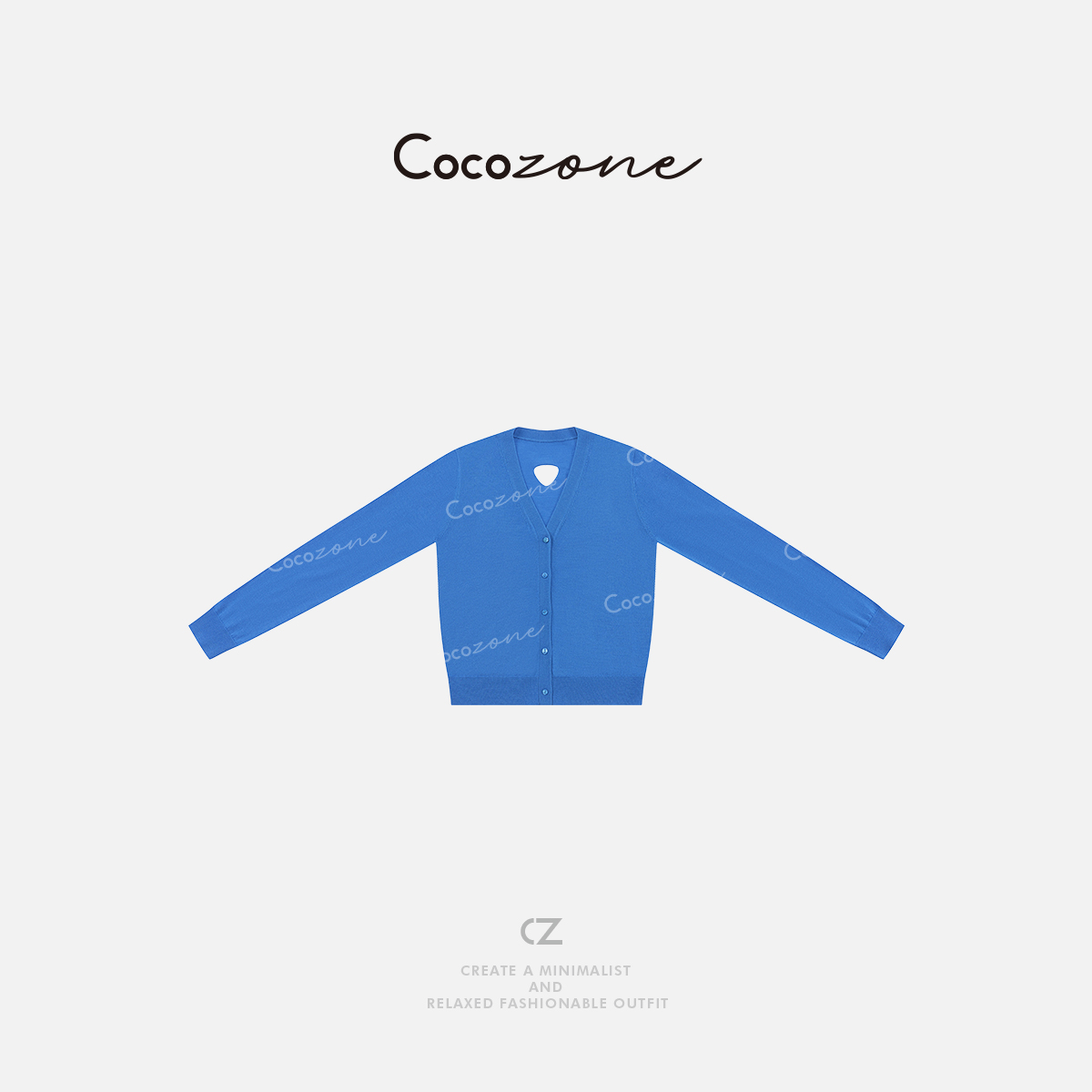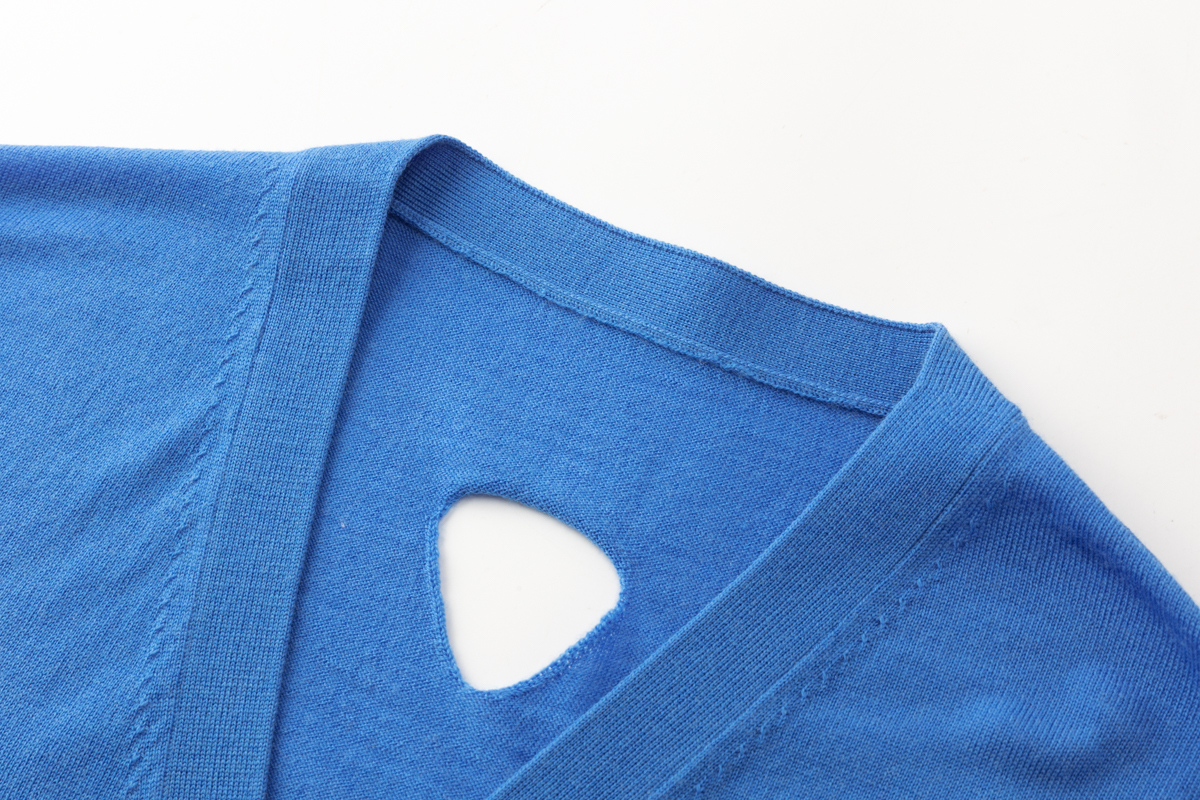 COCO ZONE 100绵羊毛设计感后幅镂空V领针织开衫CD1A0155