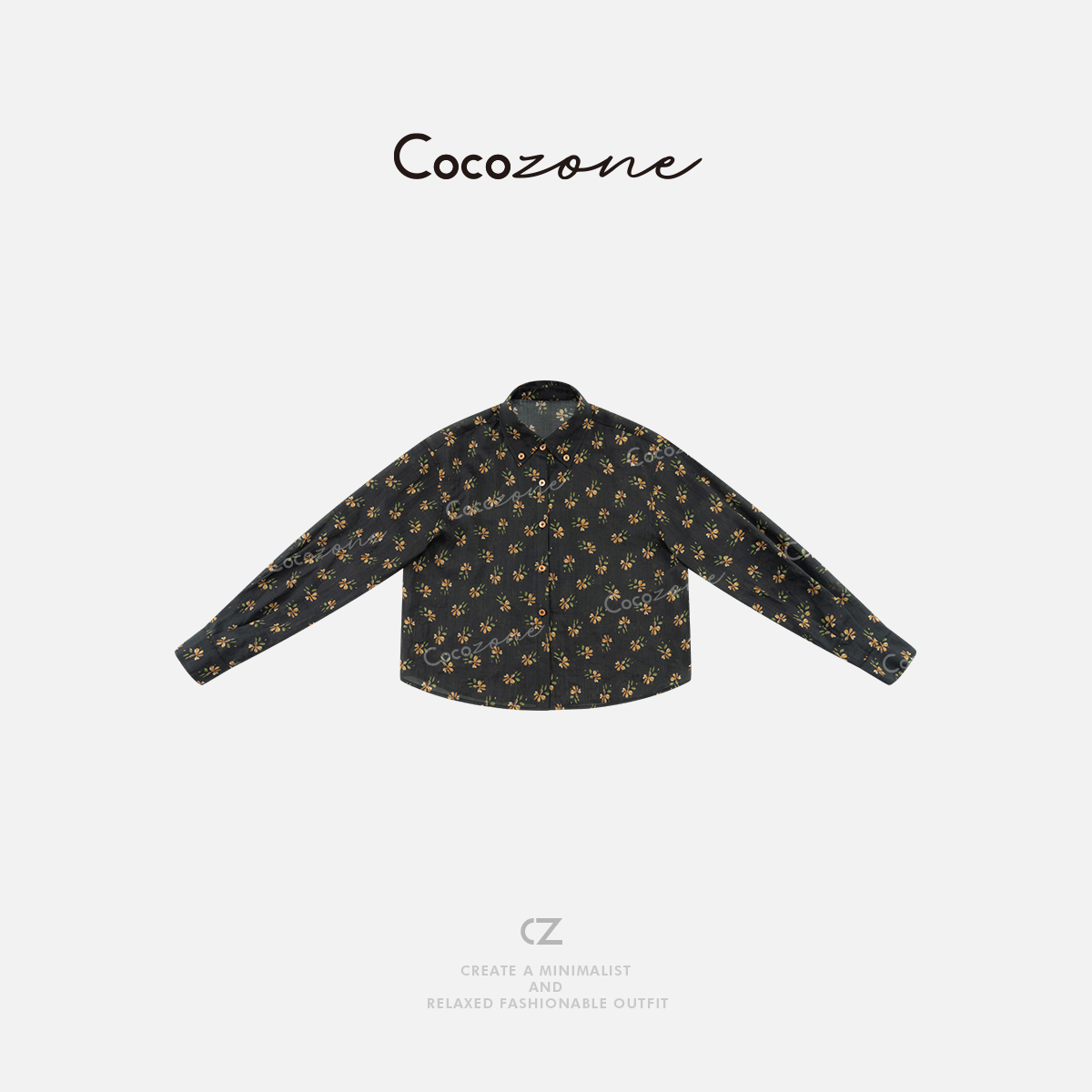 COCO ZONE 刘一一2025新款复古时尚碎花撞色长袖衬衫CD2A0754
