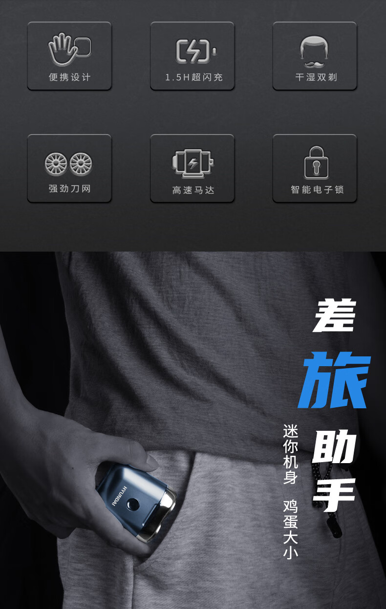 HYUNDAI 迷你双头电动剃须刀 YS665