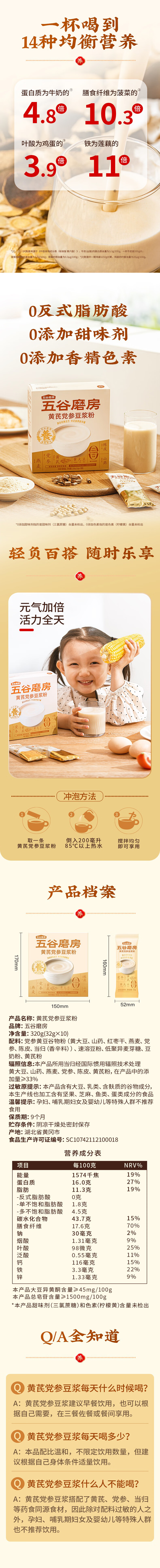 五谷磨房黄芪党参豆浆粉320g(32g*10)