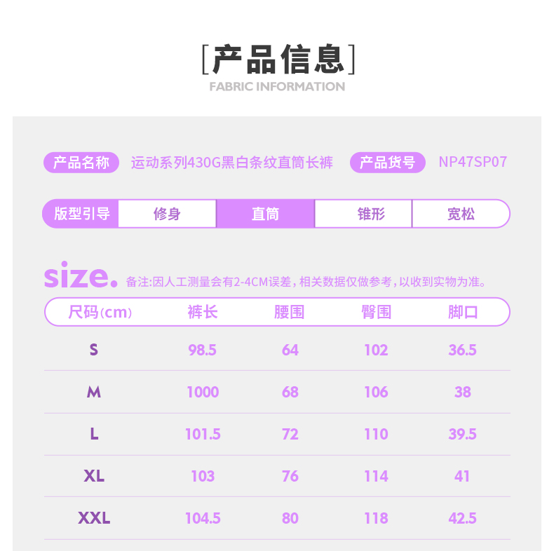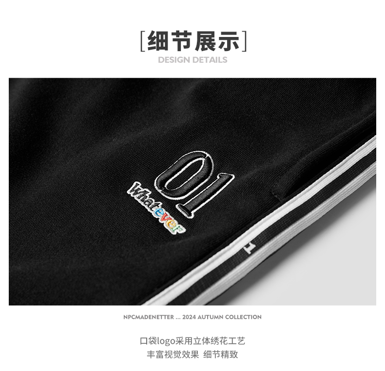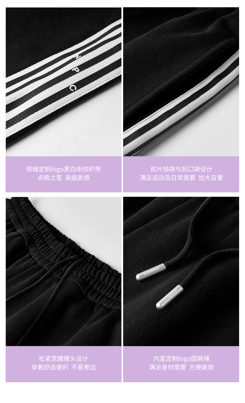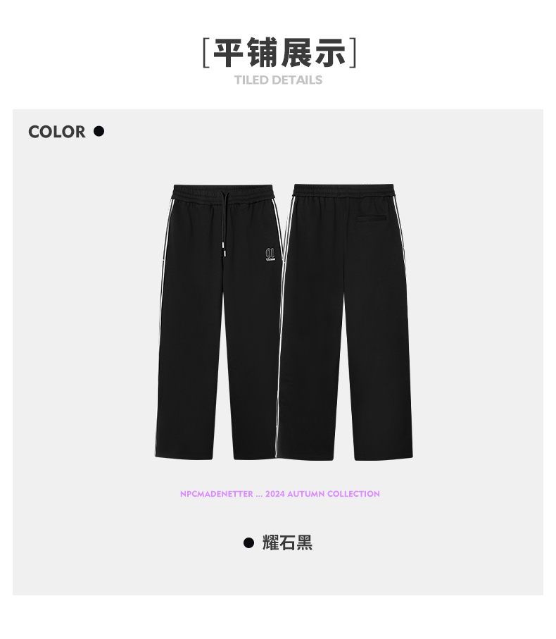 NPC潮牌运动系列重磅430G黑白条纹直筒裤卫裤男休闲舒适NP47SP07