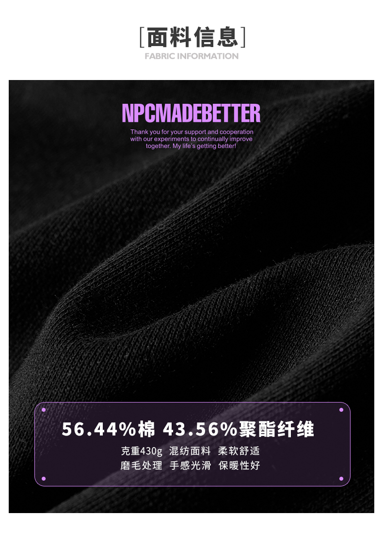 NPC潮牌口袋字母刺绣双面摇粒绒拉链衫男夹克双头拉链NP4BTJ07