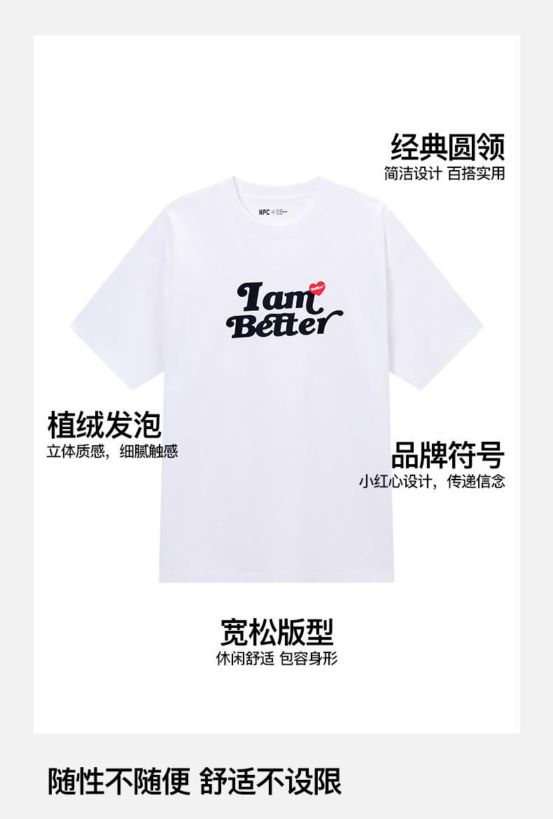 NPC潮牌纯棉字母爱心植绒印花圆领长袖T恤男舒适透气NP52TE08