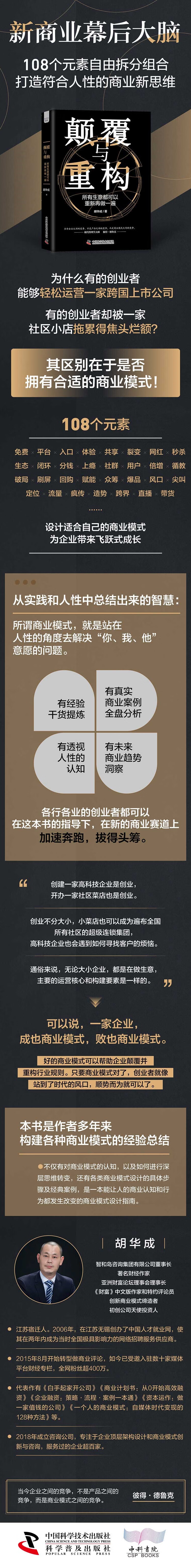 1.为什么有的创业者能够轻松运营一家跨国上市公司,有的创业者却被一家社区小店拖累得焦头烂额?其区别在于是否拥有合适的商业模式!彼得·德鲁克说:“当今企业之间的竞争,不是产品之间的竞争,而是商业模式之间的竞争。” 2.本书作者从商业模式构建角度,把商业模式拆分为108个元素。只要掌握模块背后的逻辑和设计路径,就能轻松上手构建适合自己的商业模式。 3.没有教科书上的商业模式理论,只有从实践和人性中总结出来的智慧。作者直白地告诉我们:所谓商业模式,就是站在人性的角度去解决“你、我、他”意愿的问题。 新商业幕后大脑,手把手教你做生意。有经验干货提炼,有真实商业案例全盘分析,有未来商业趋势洞察,各行各业的创业者都可以在这本书的指导下,在新的商业赛道上加速奔跑,拔得头筹。