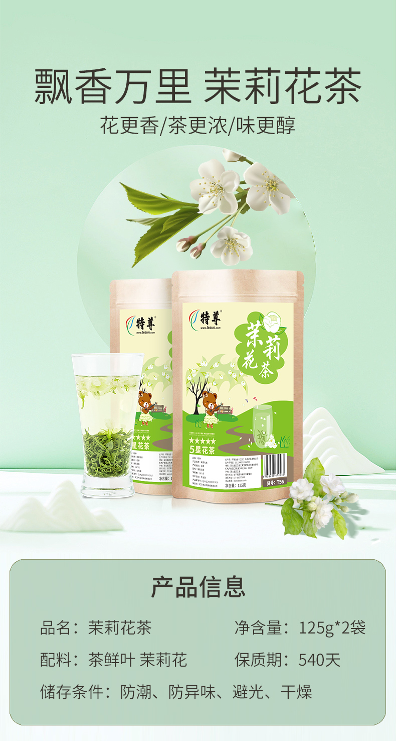特尊茶2025新茶5星茉莉花茶7月伏花浓香型茉莉花250g