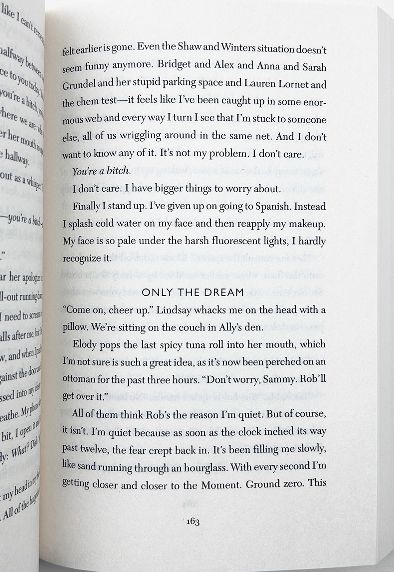 “Before I Fall is smart, complex, and heartbreakingly beautiful. Lauren Oliver has written an extraordinary debut novel about what it means to live—and die.” ——Carolyn Mackler, author ofTangled and The Earth,My Butt, andOther Big Round Things, a Printz Honor book