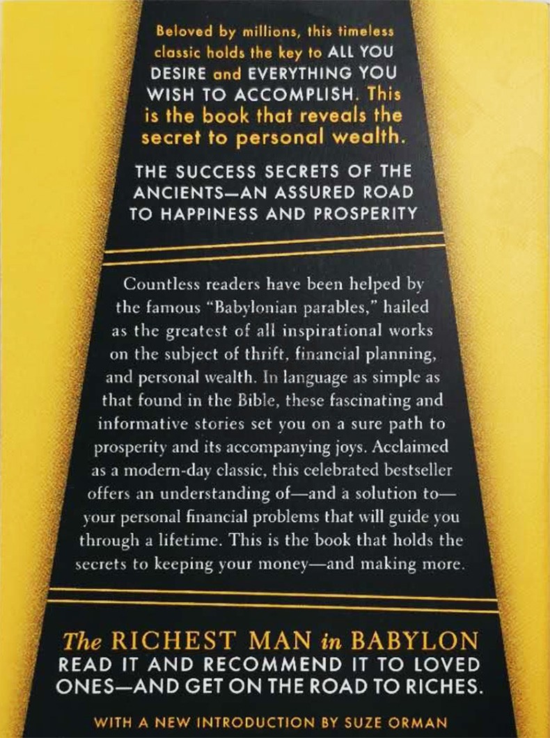 “I first read The Richest Man in Babylon many years ago. Its philosophy worked for me then, and it will work now for anyone with the good sense to stick to it. I think it ought to be read by every young man or woman with ambition to make something of life.”—Chicago Daily News