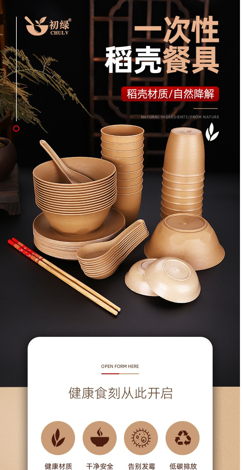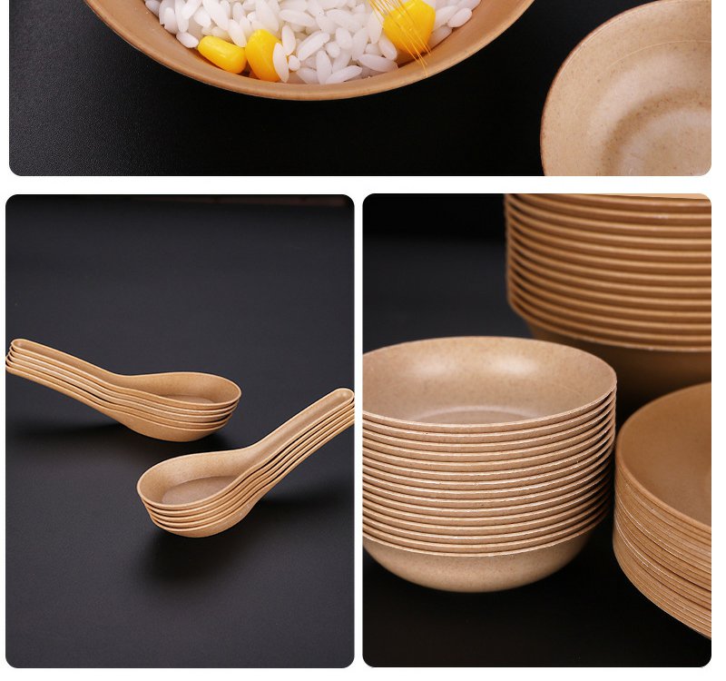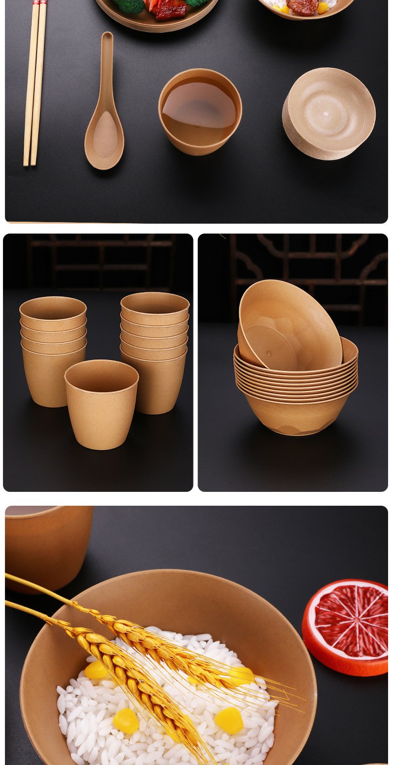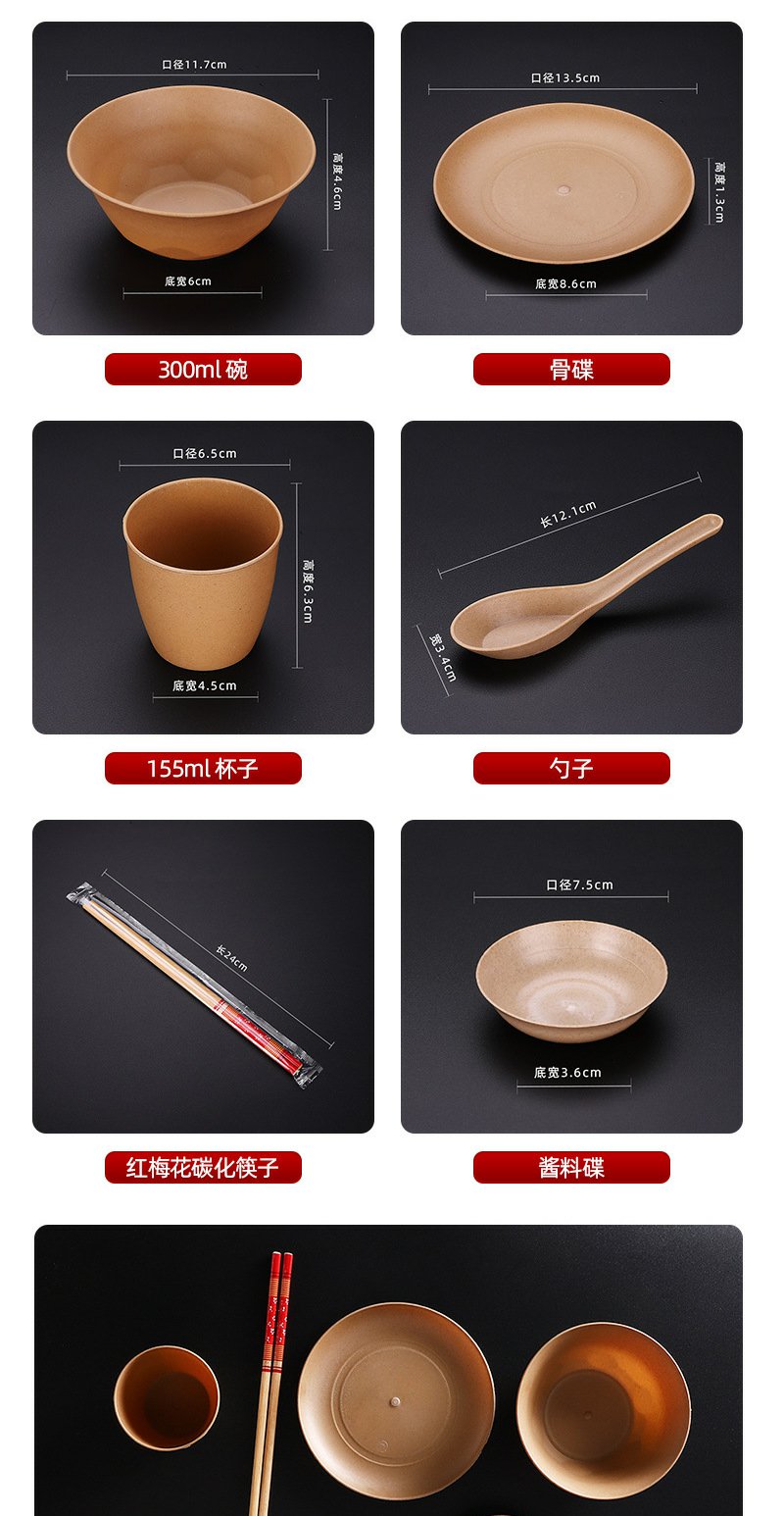 稻壳一次性餐具套装加厚碗家用餐具【黄皮纸包】四件套