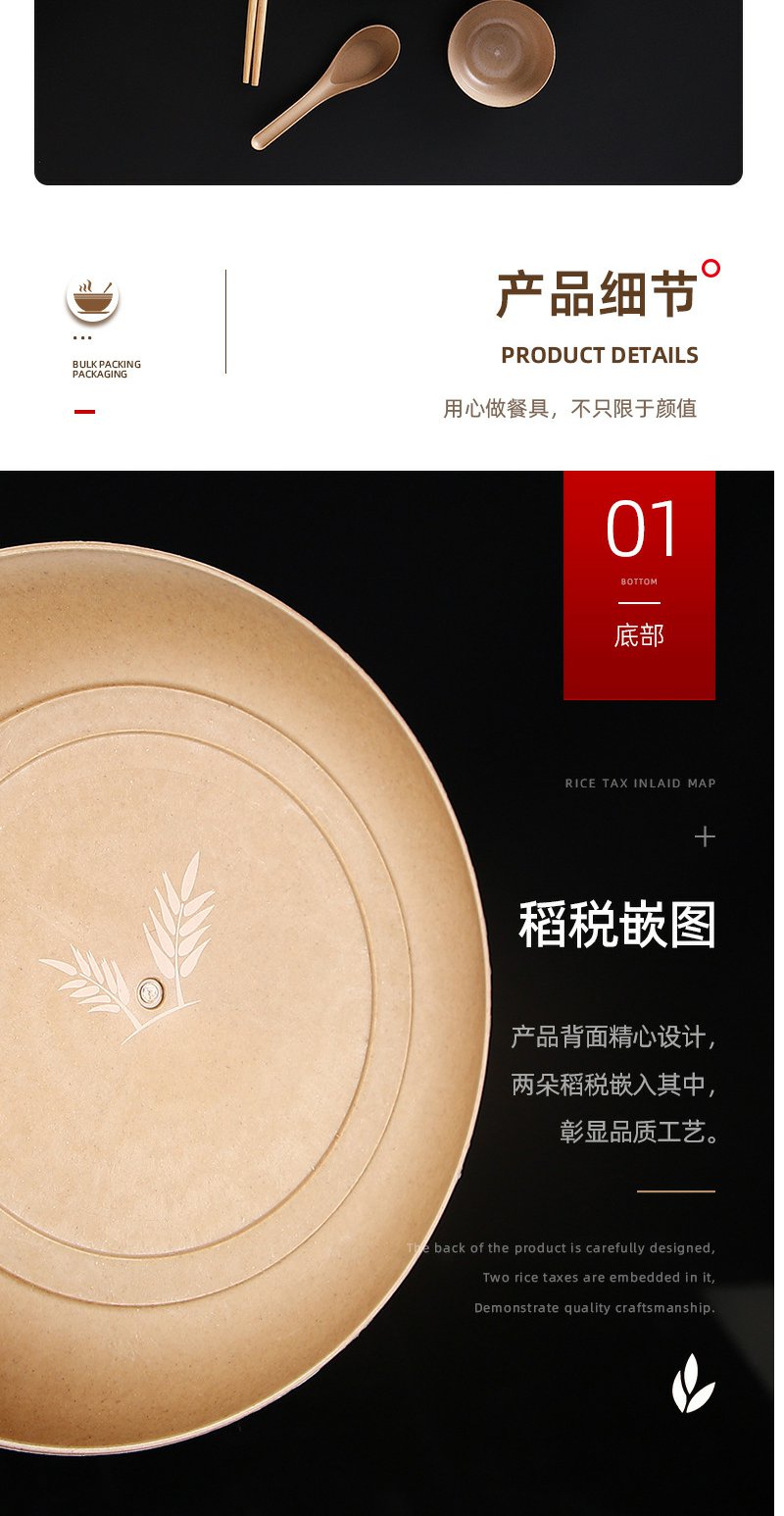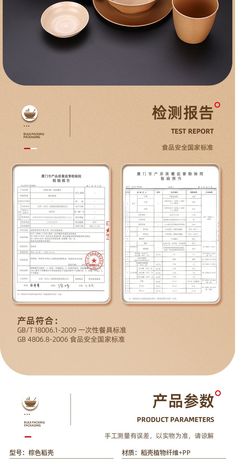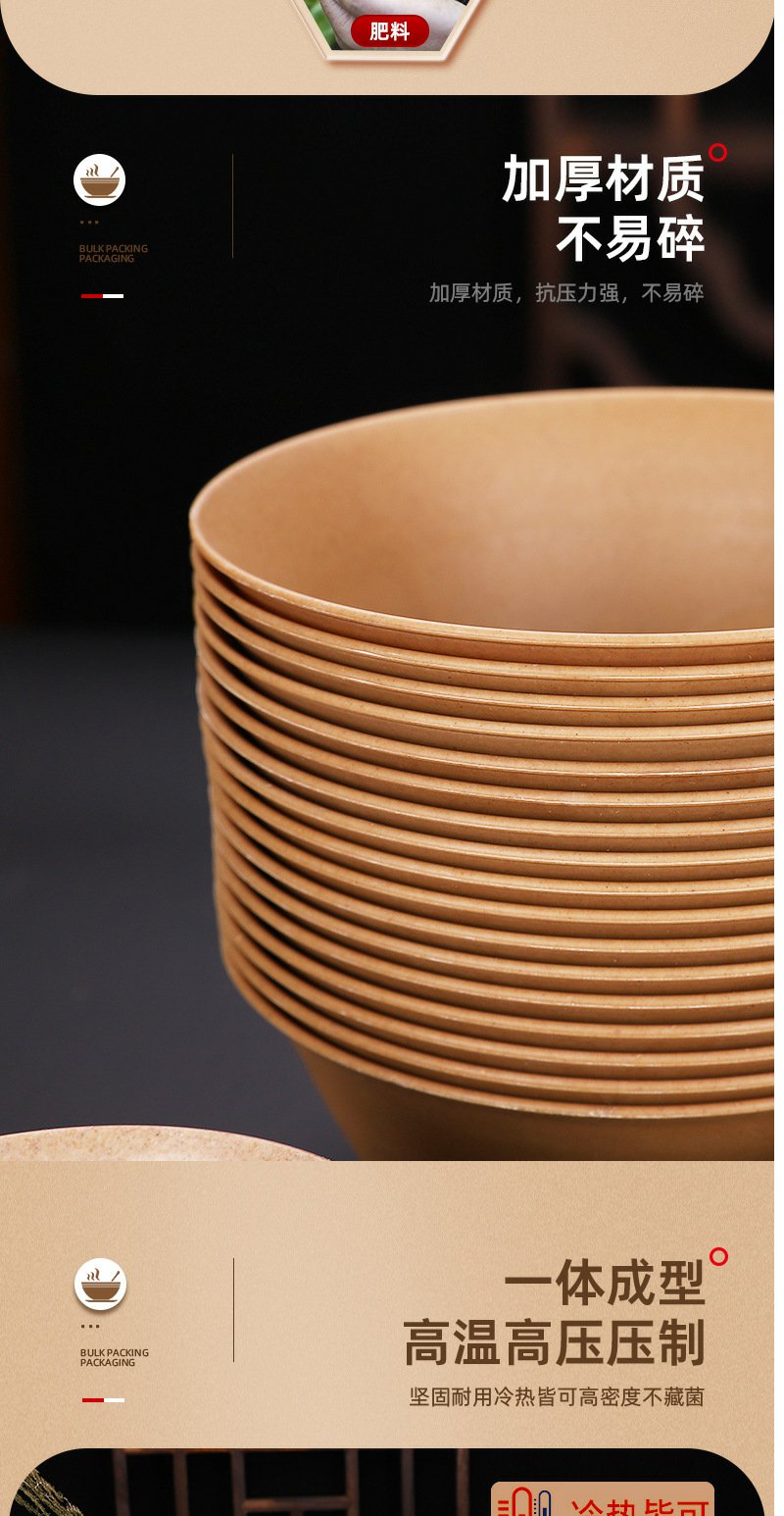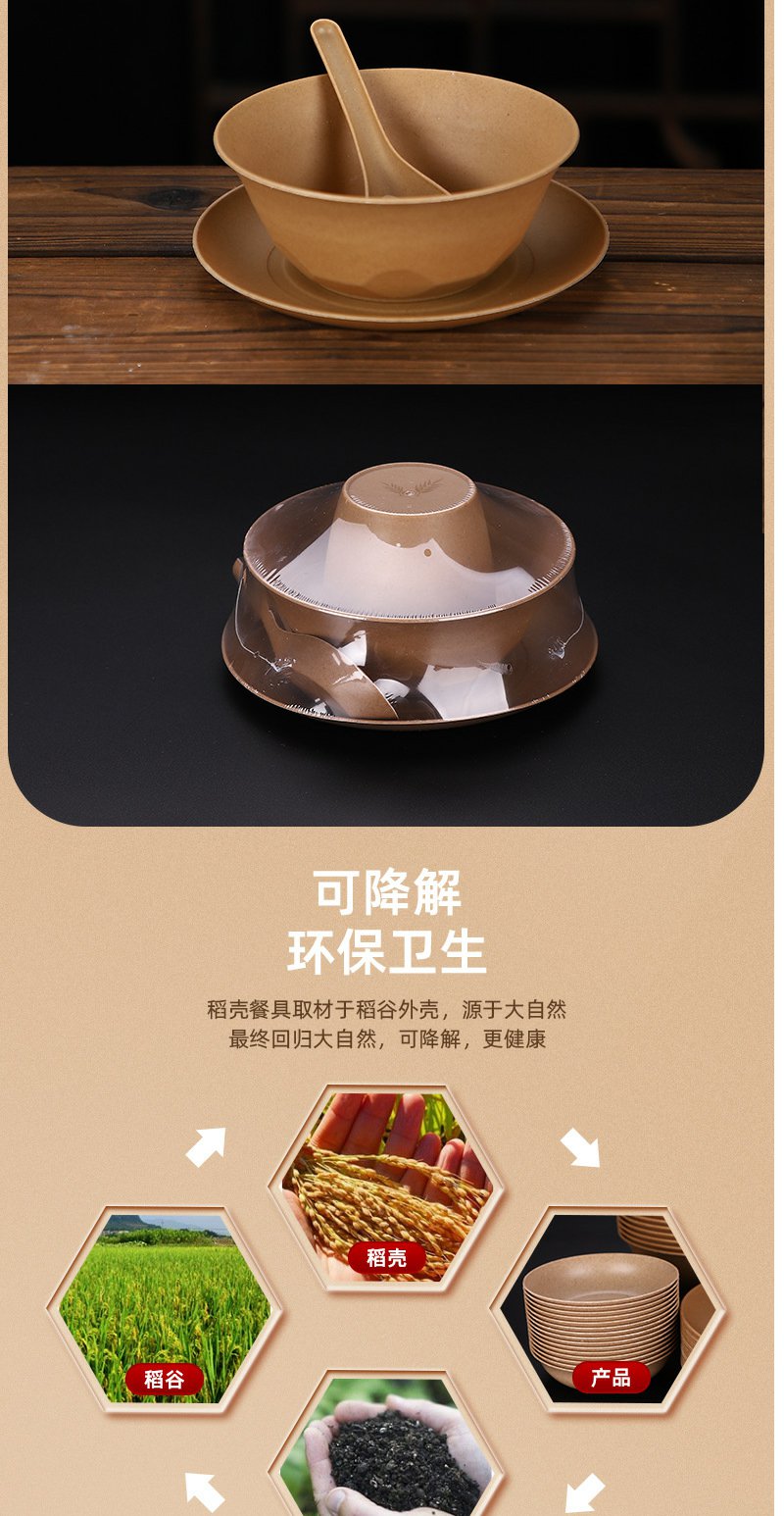 稻壳一次性餐具套装加厚碗家用餐具【黄皮纸包】四件套